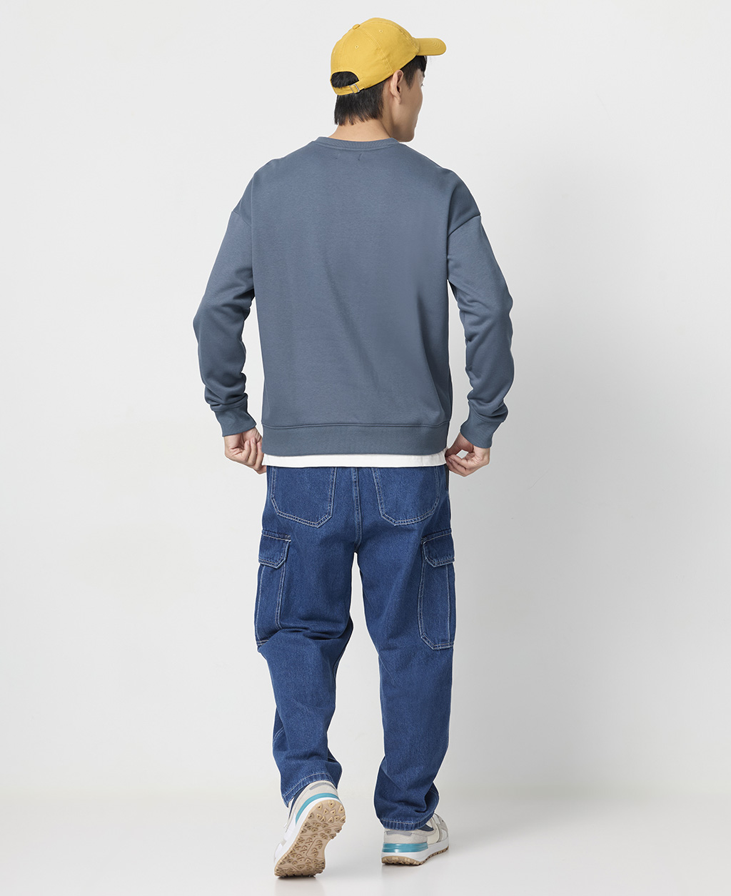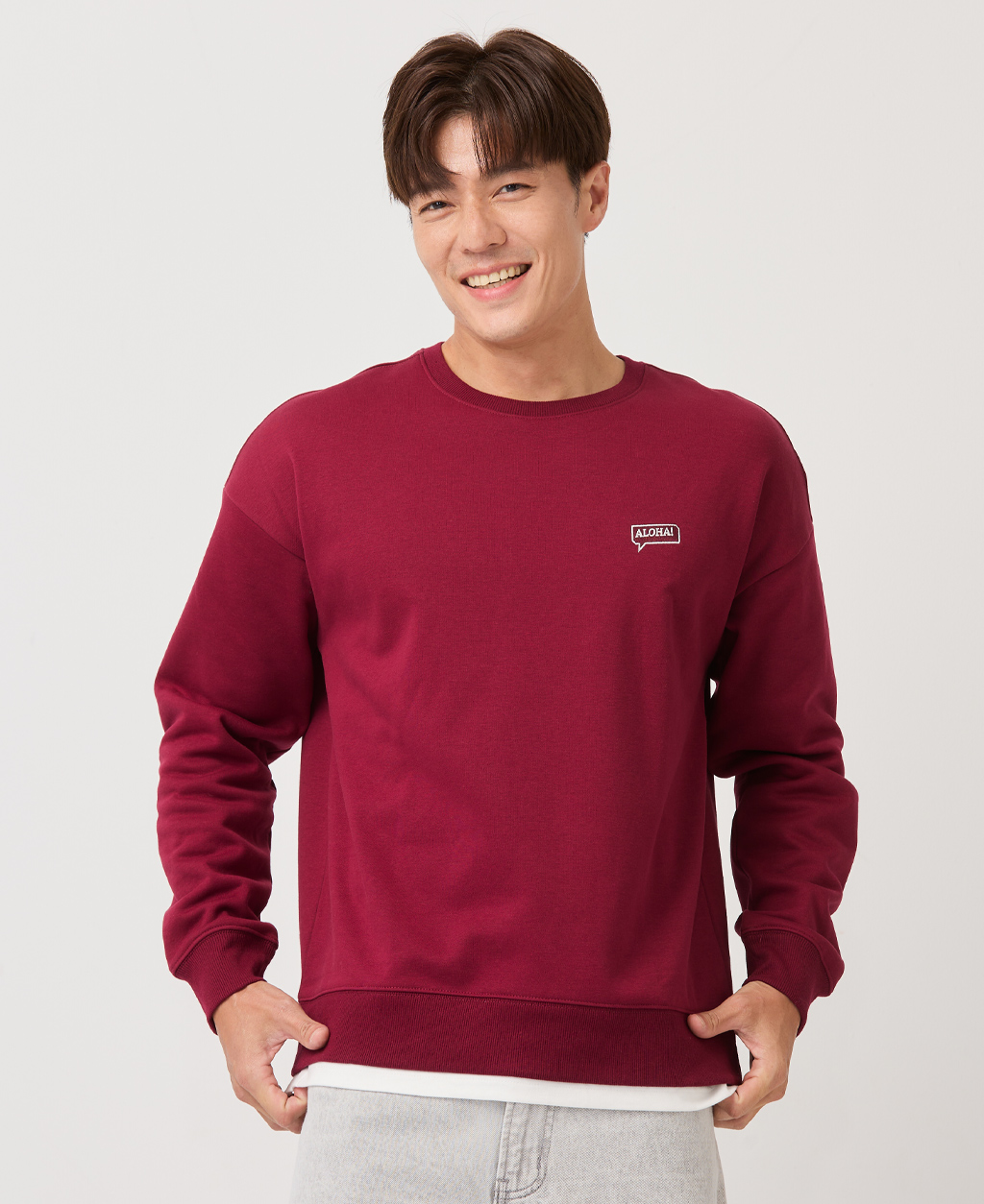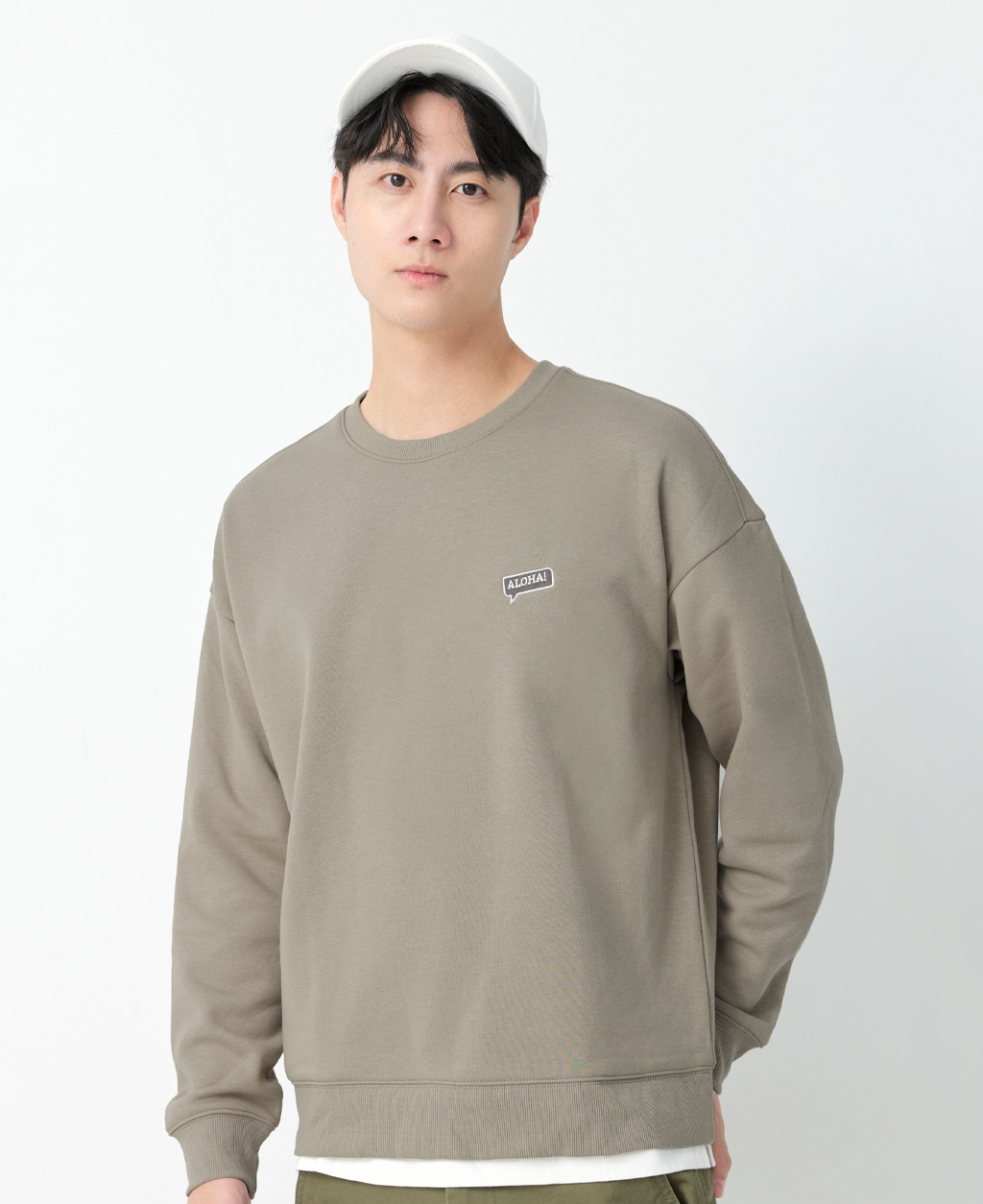 落肩下擺剪接刷毛大學T