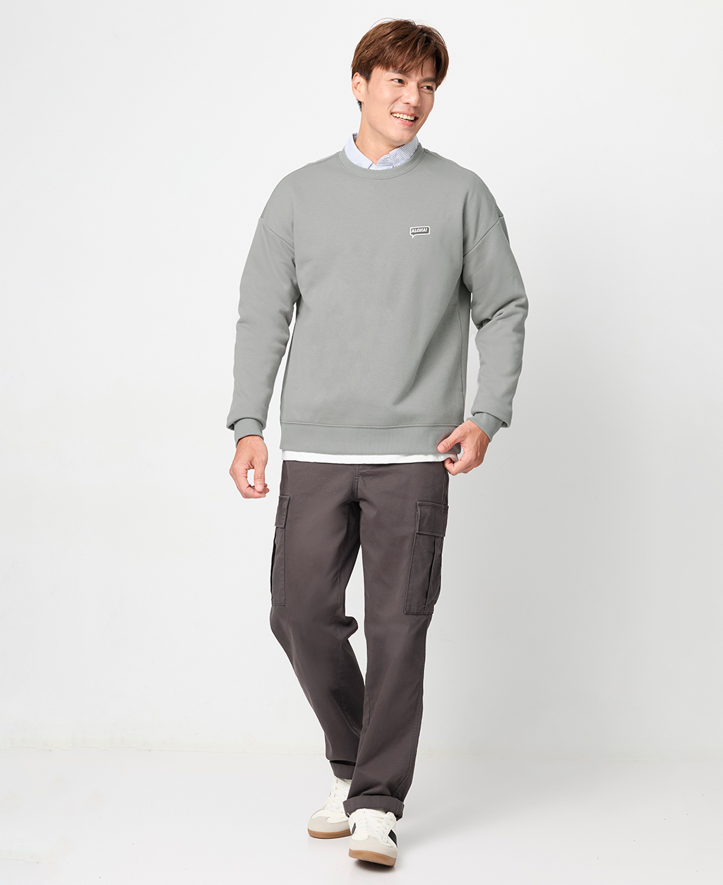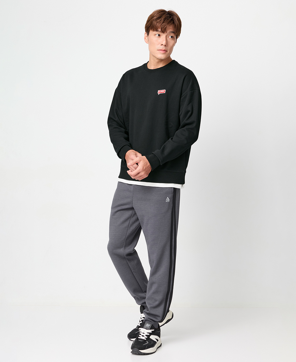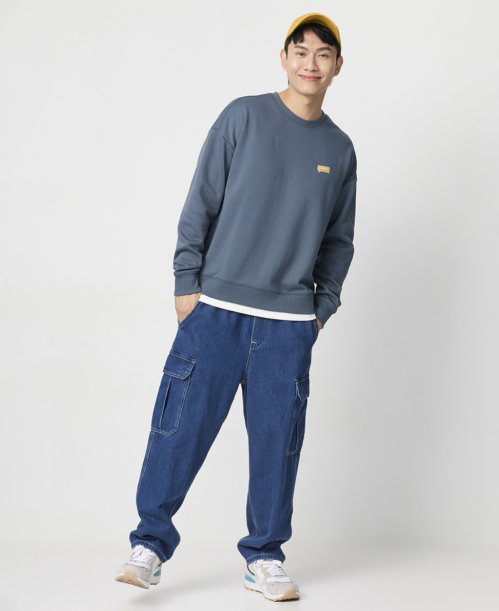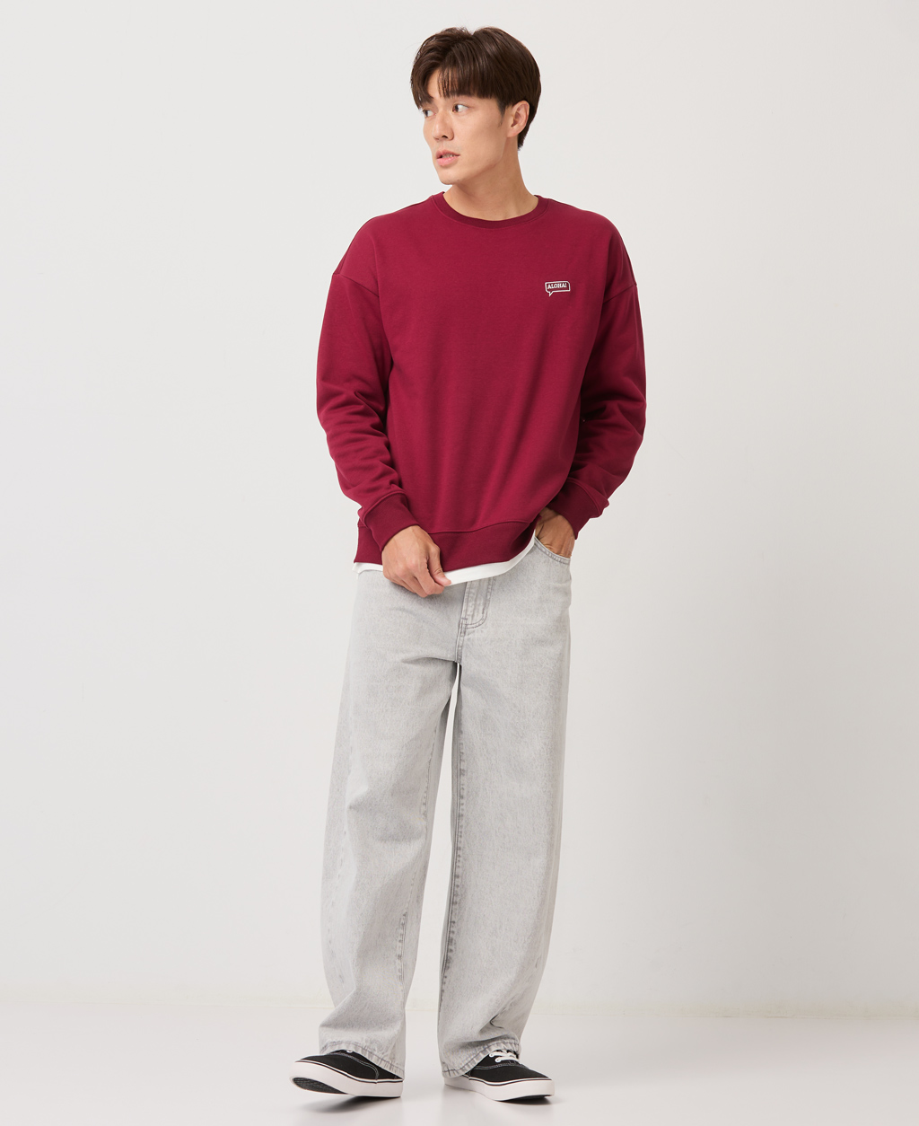 落肩下擺剪接刷毛大學T