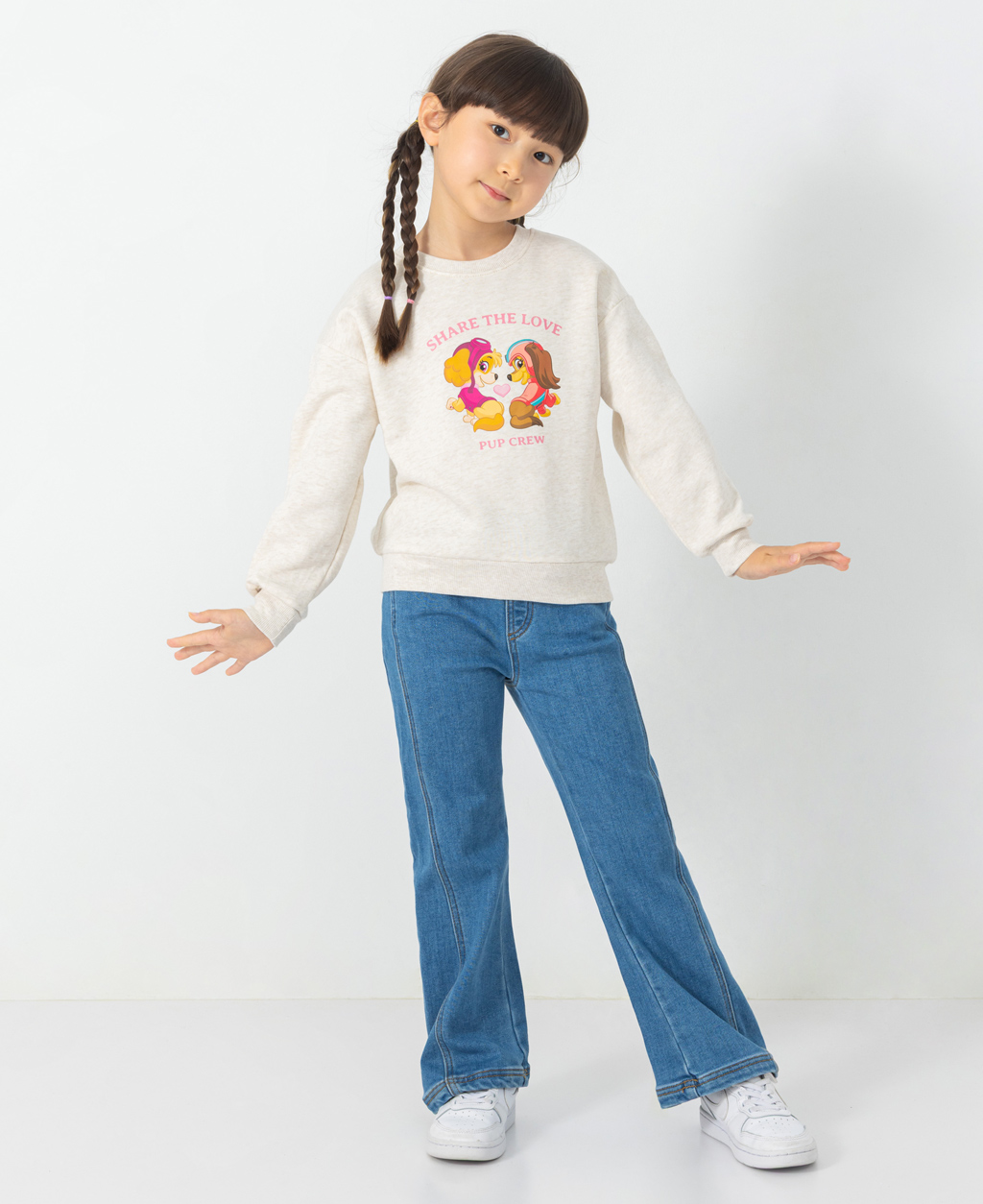 童汪汪隊落肩刷毛大學T