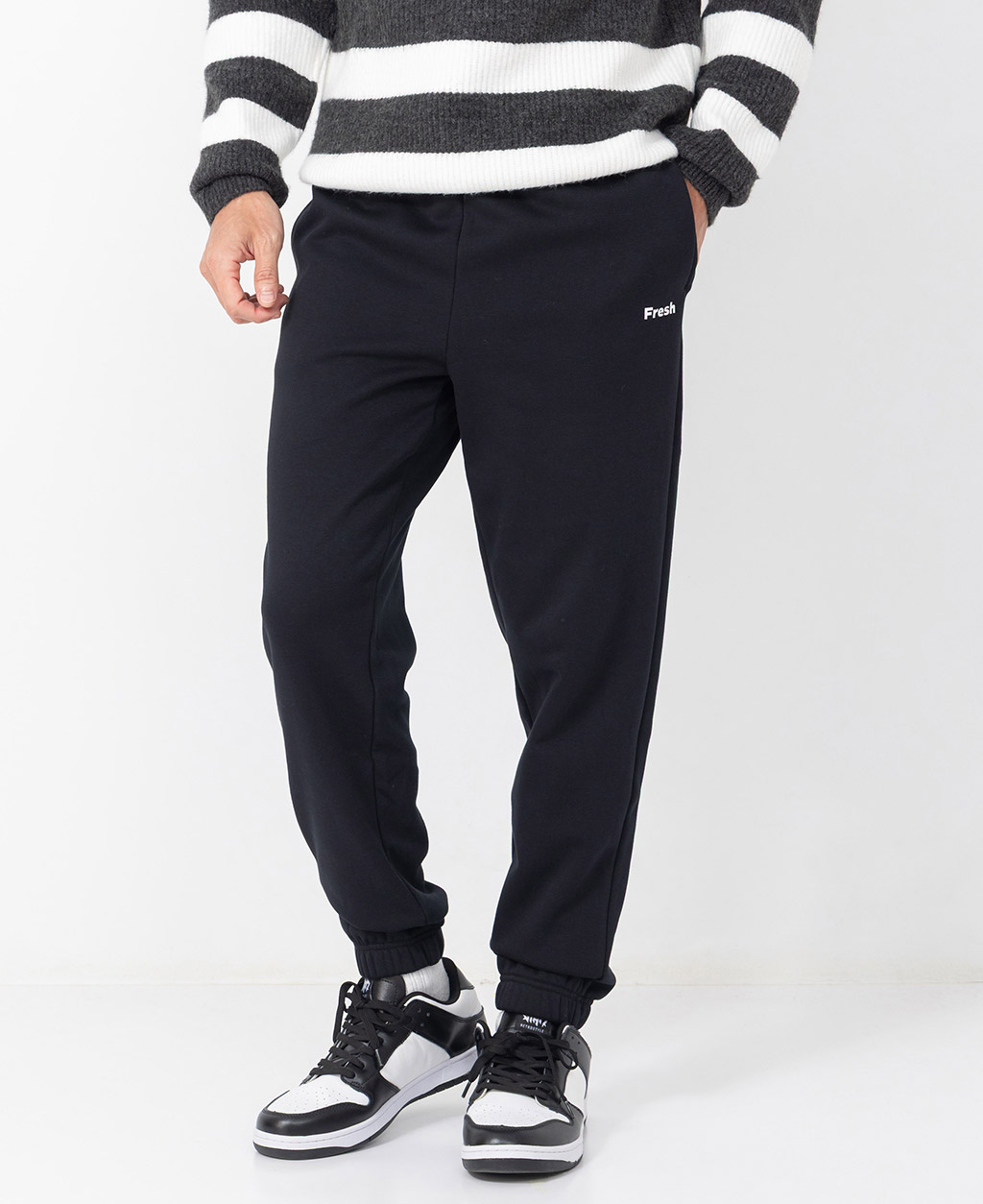 英文字縮口長褲