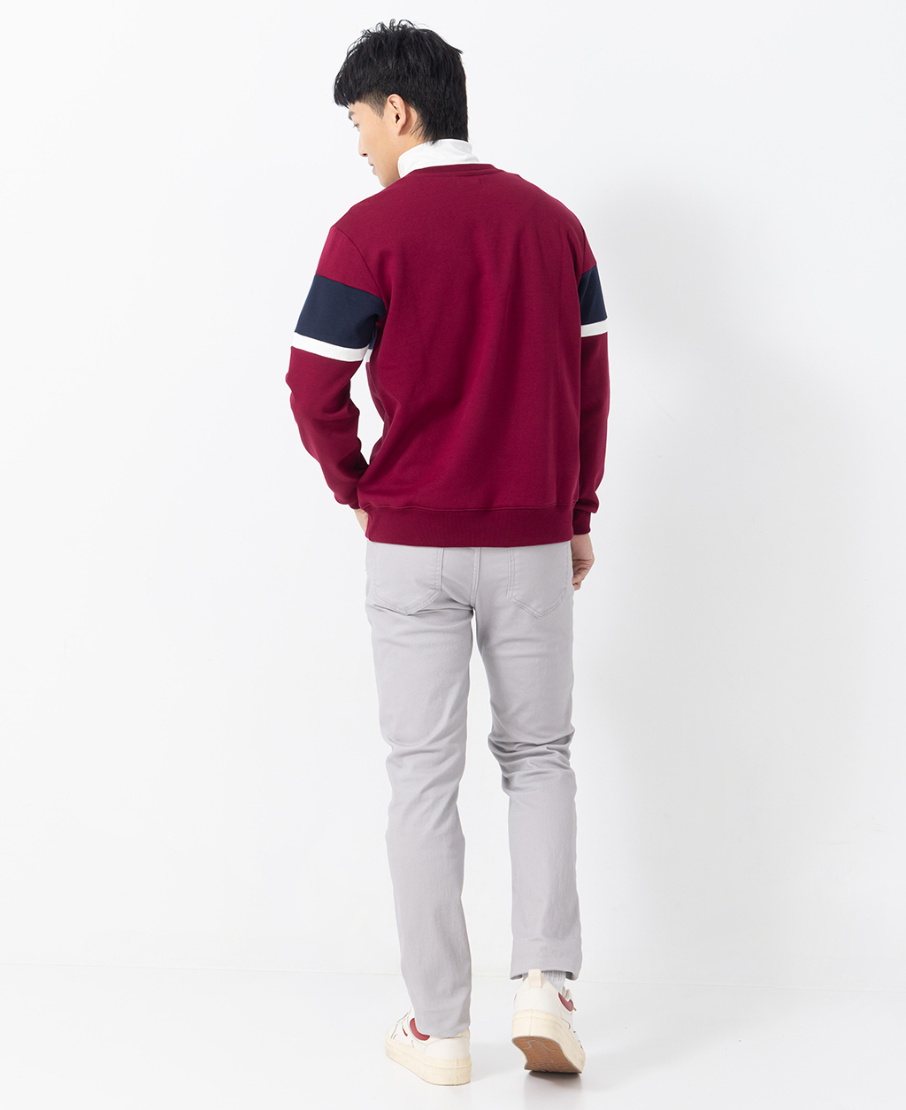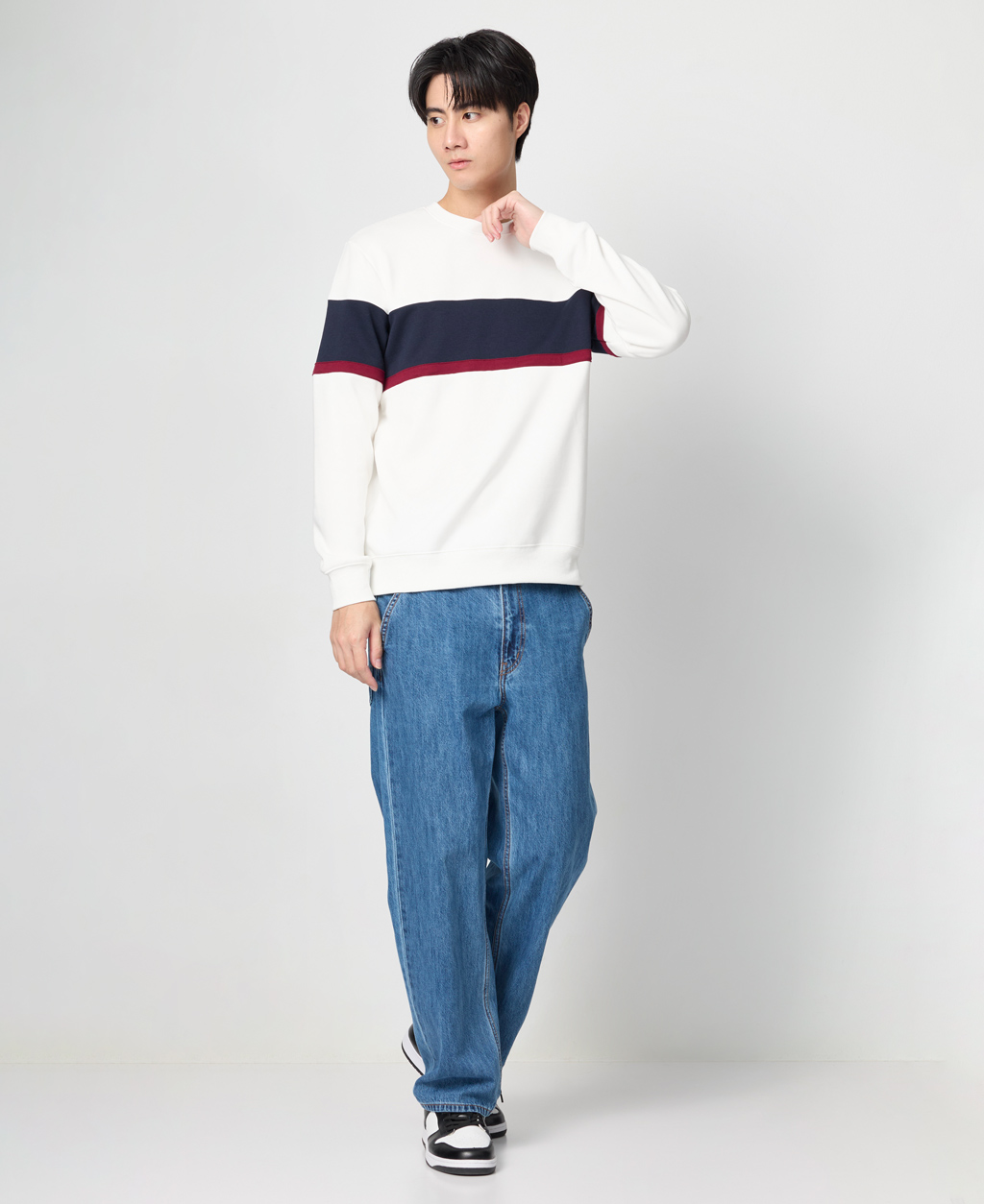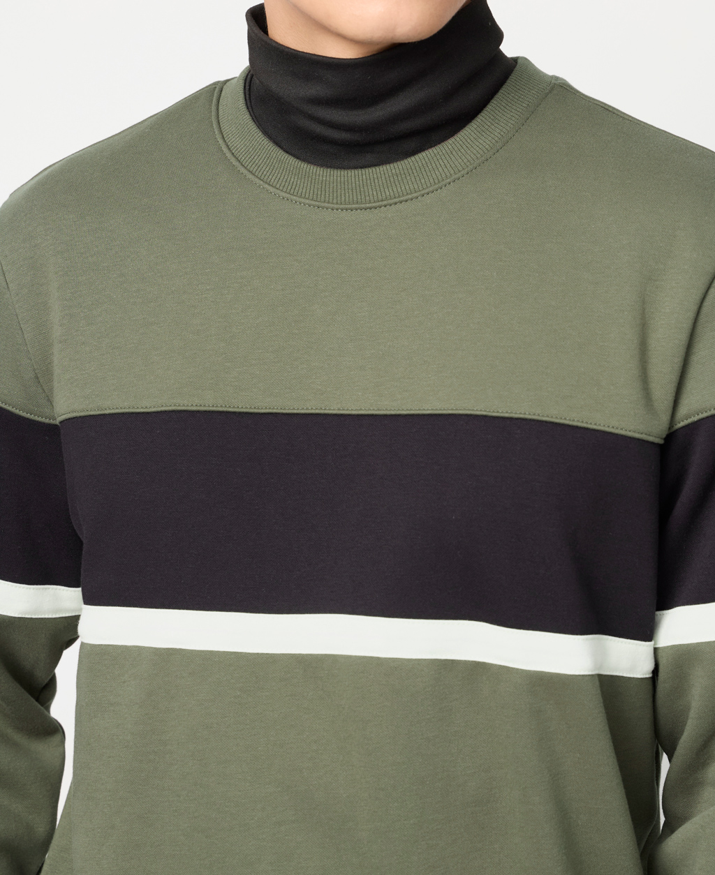 拼接條紋刷毛圓領大學T