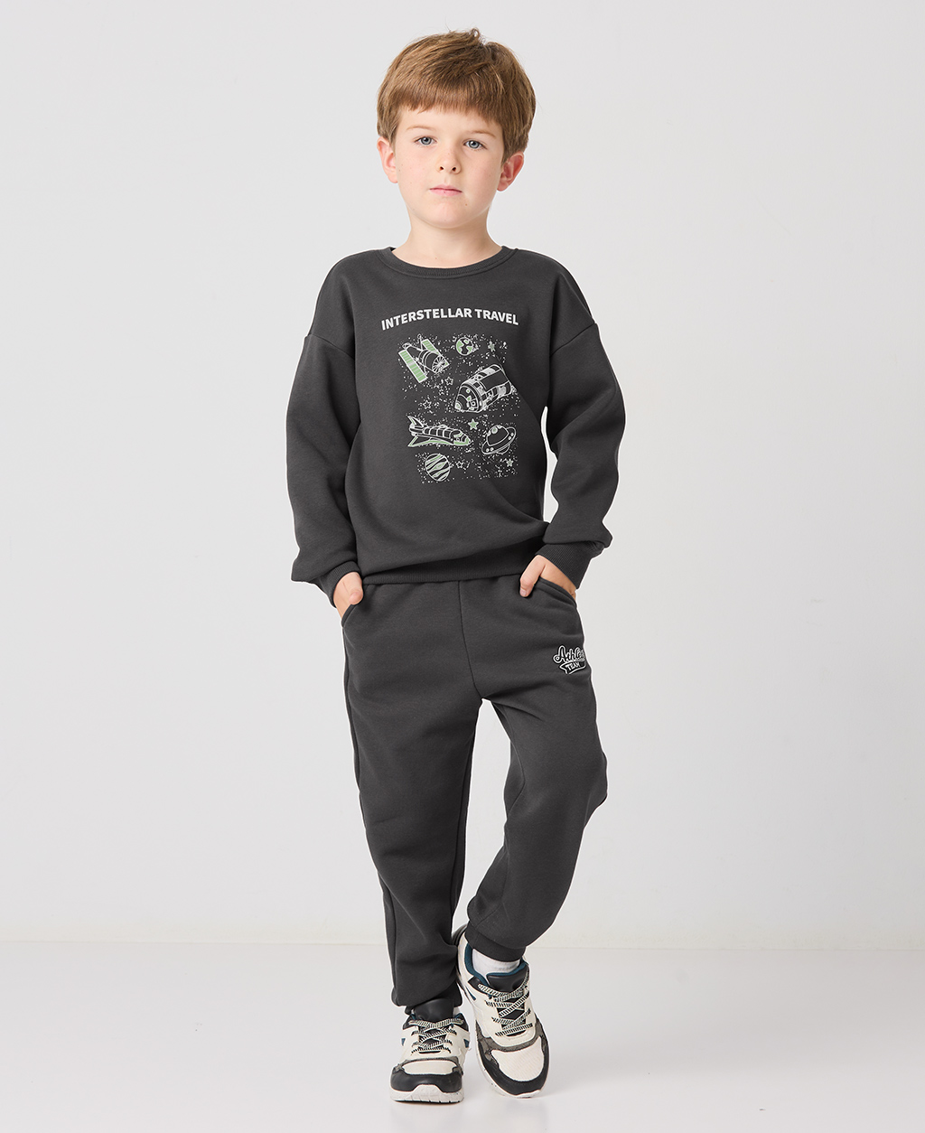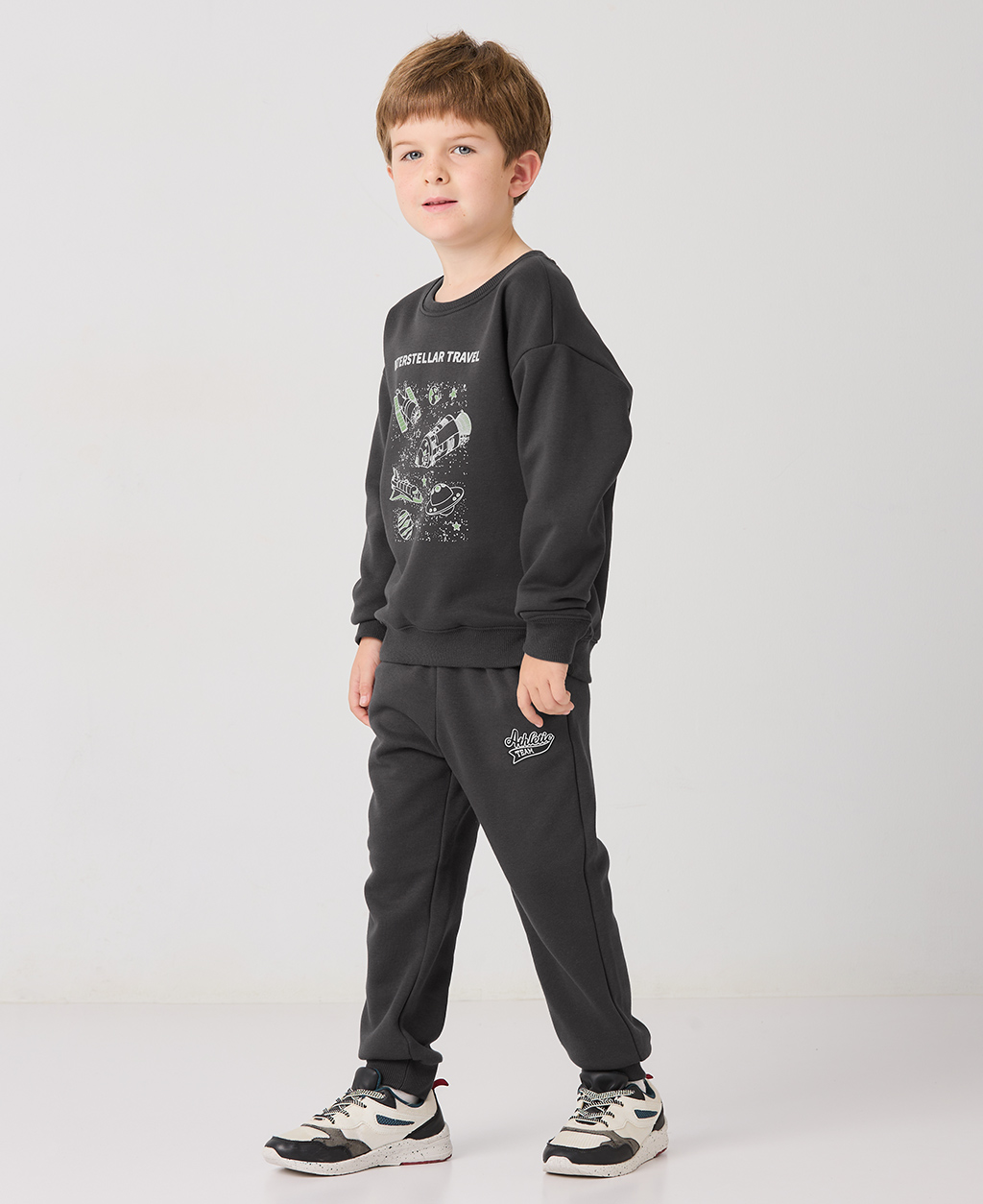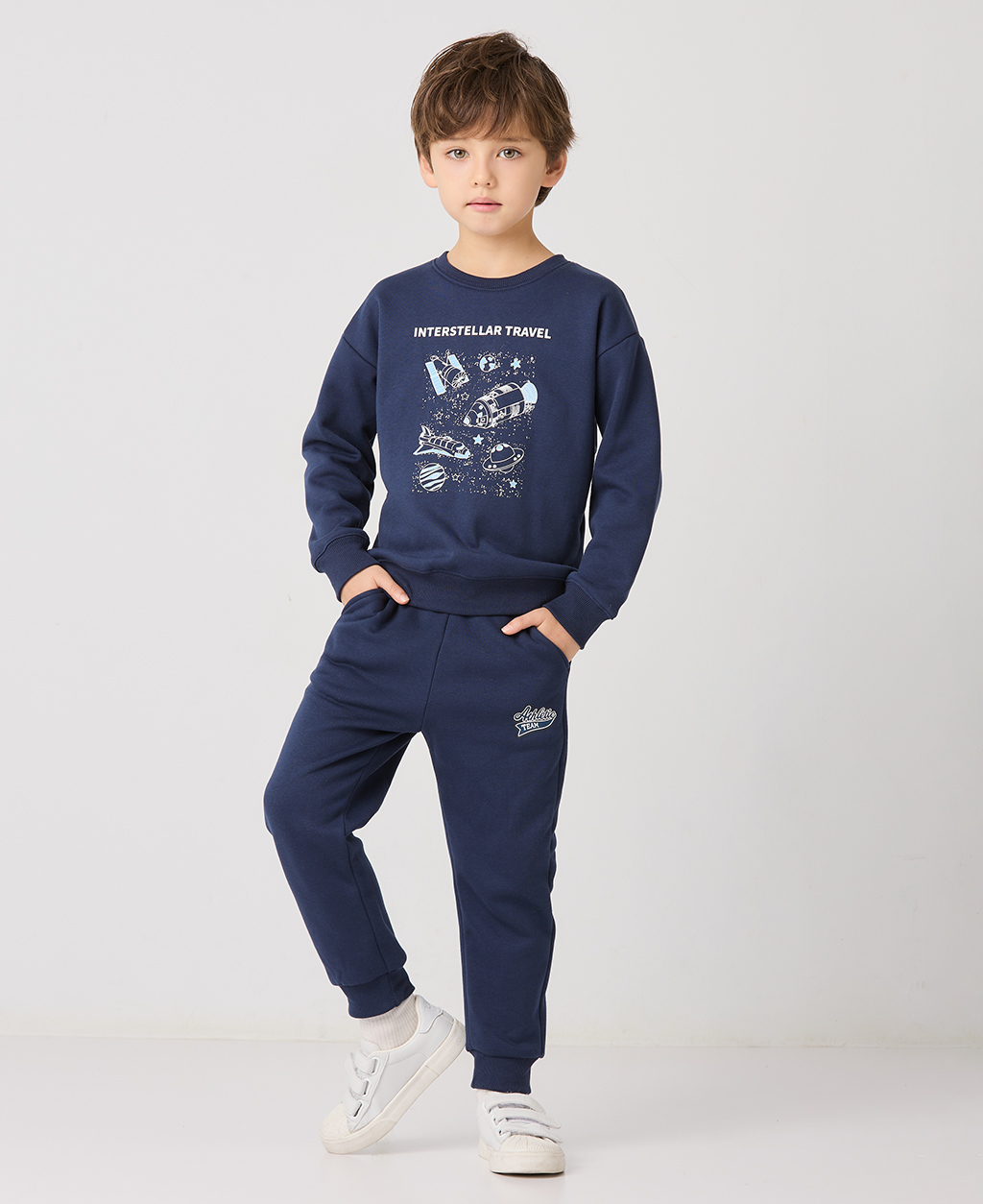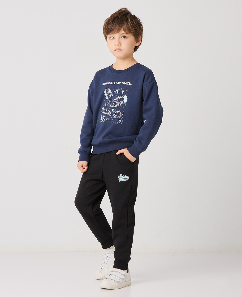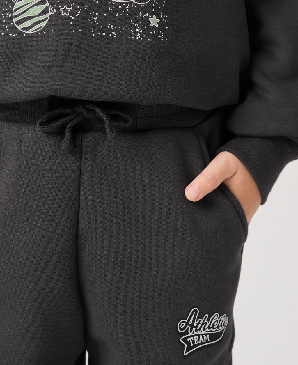 童刷毛基本印花長褲