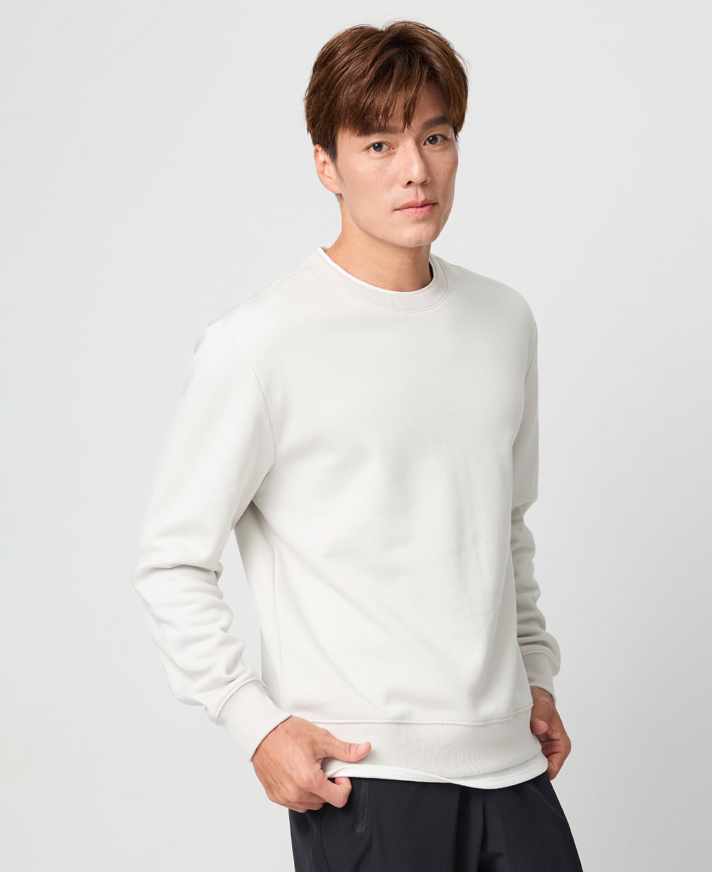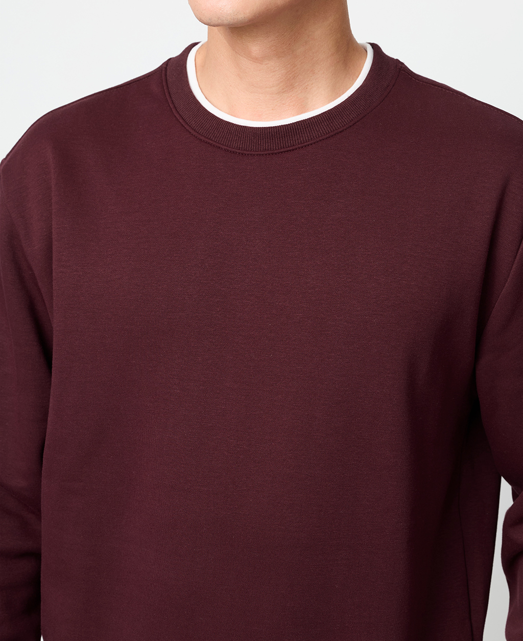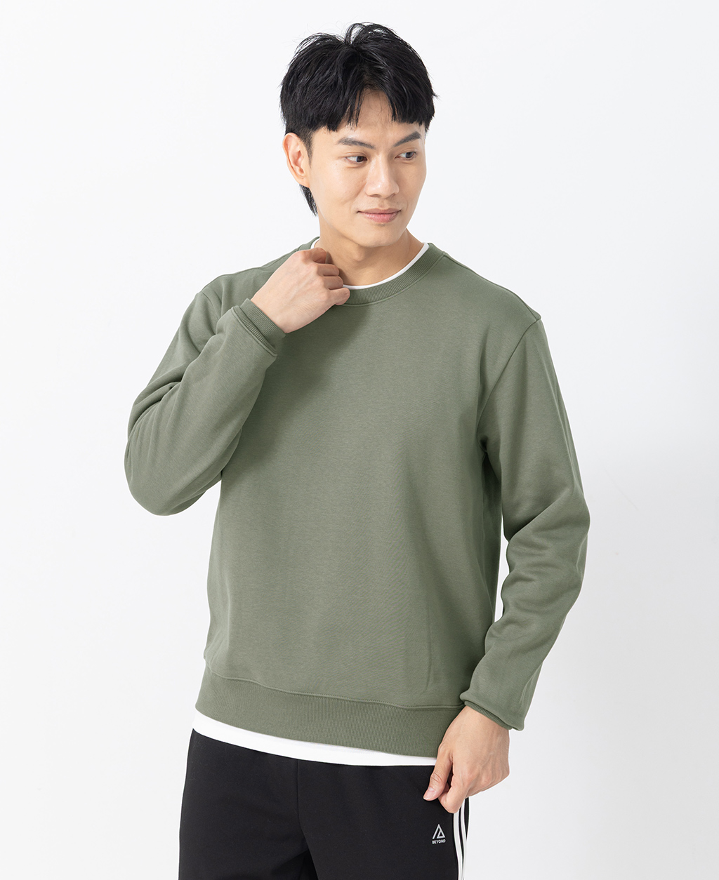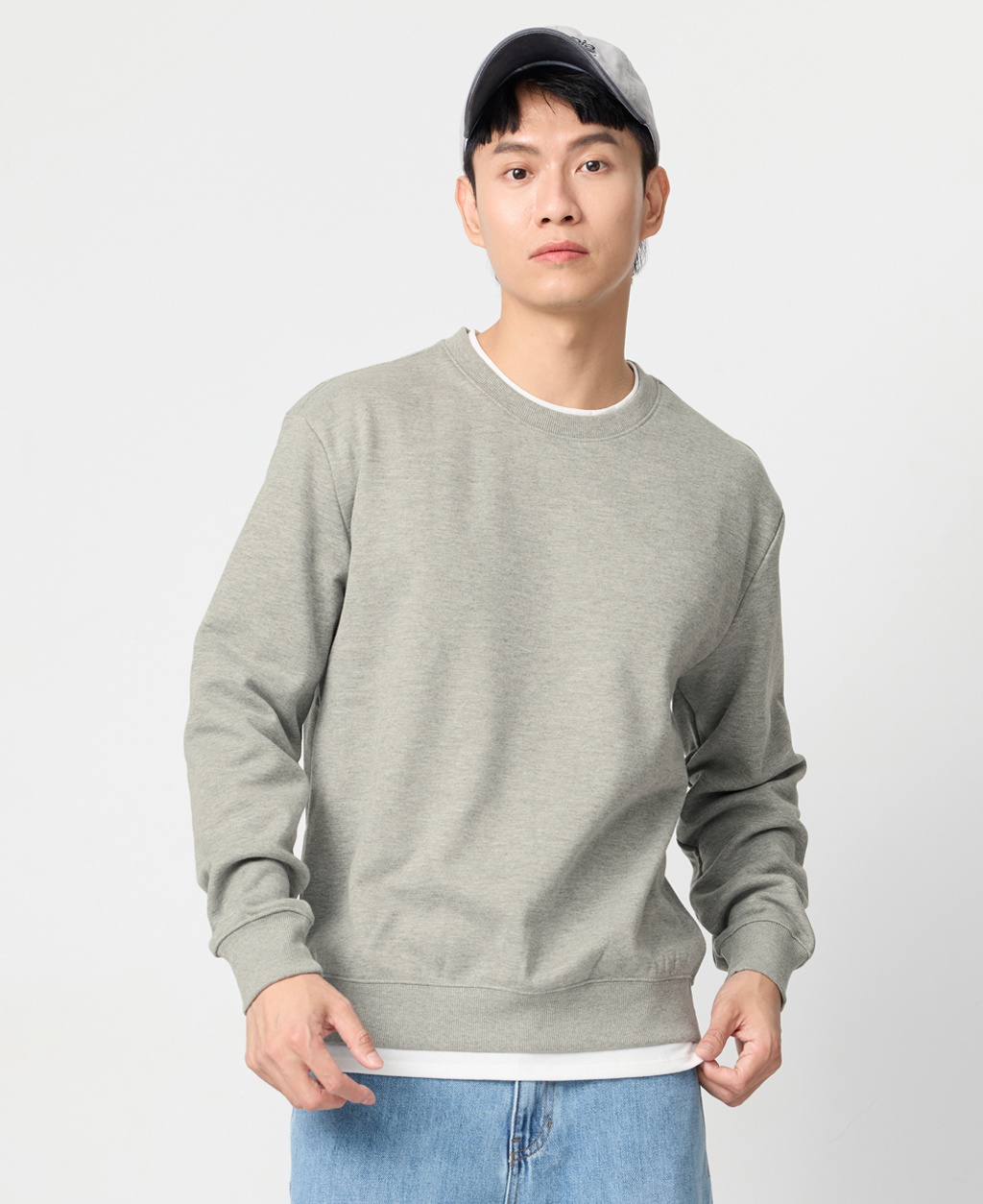 假兩件刷毛落肩大學T