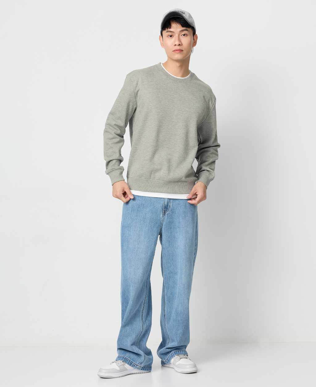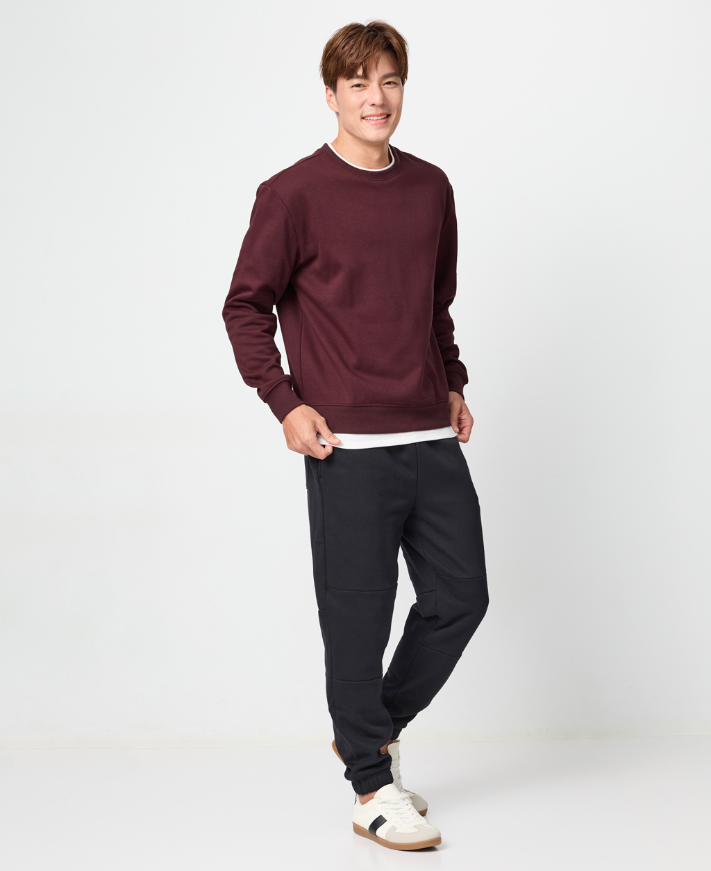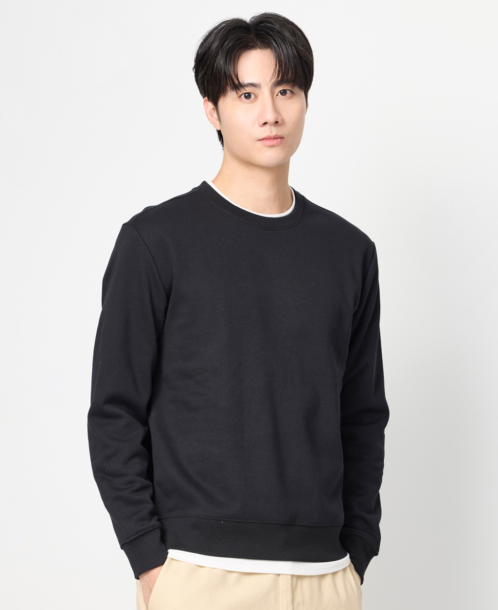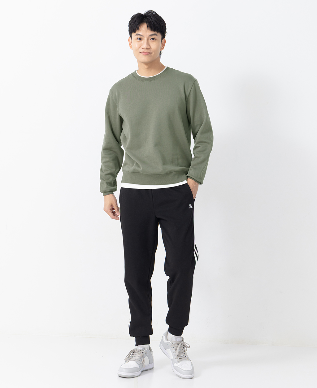 假兩件刷毛落肩大學T