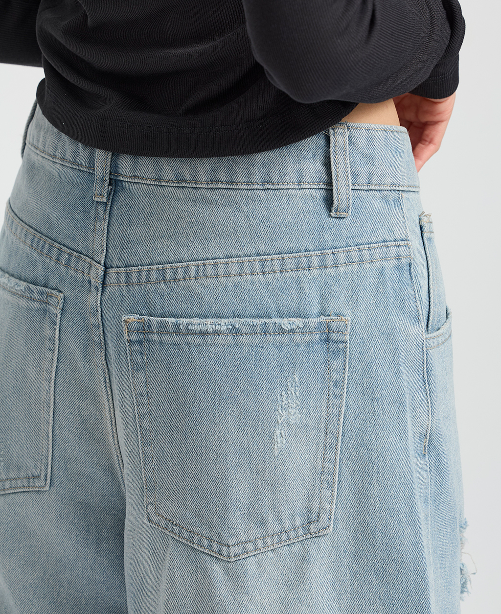 2.避免坐靠在淺色特別是潮濕的物體上,會有掉色可能。並小心與淺色衣物搭配,汗漬有可能導致未經洗水的牛仔商品褪色。