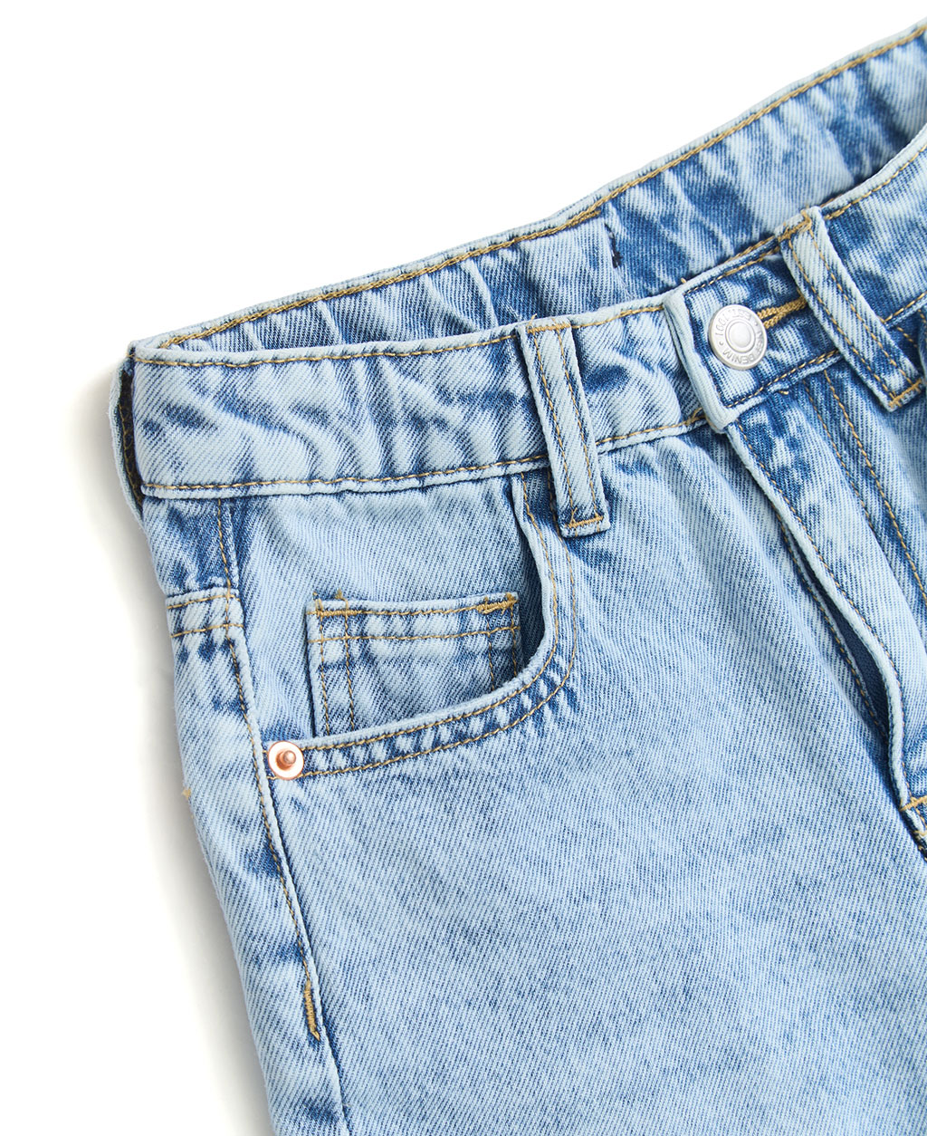 2.避免坐靠在淺色特別是潮濕的物體上,會有掉色可能。並小心與淺色衣物搭配,汗漬有可能導致未經洗水的牛仔商品褪色。