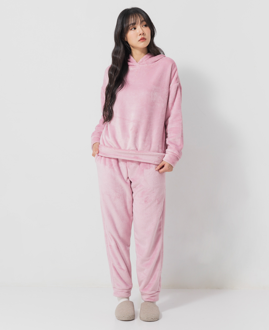 ●注意事項 1.本商品因布料的特性,可能會發生脫毛的現象。 2.如絨毛黏附其它衣物,請用衣物專用的軟毛刷去除。 3.建議放入洗衣袋中洗滌。