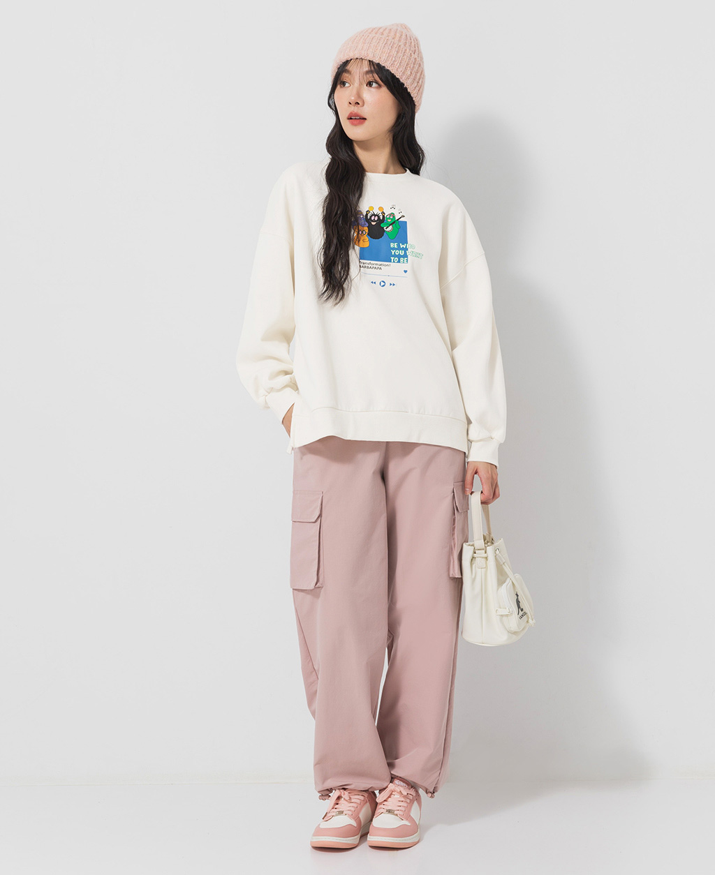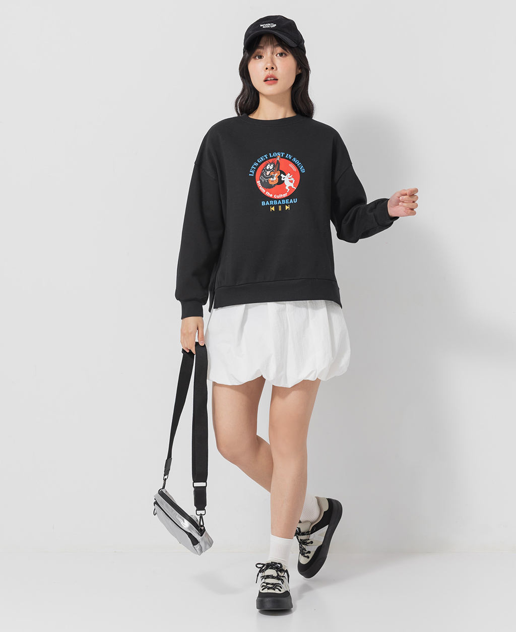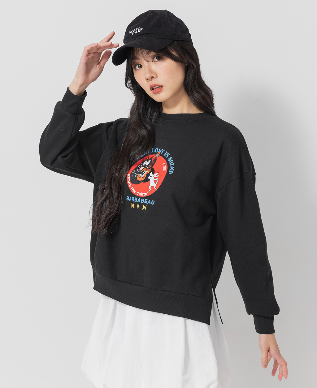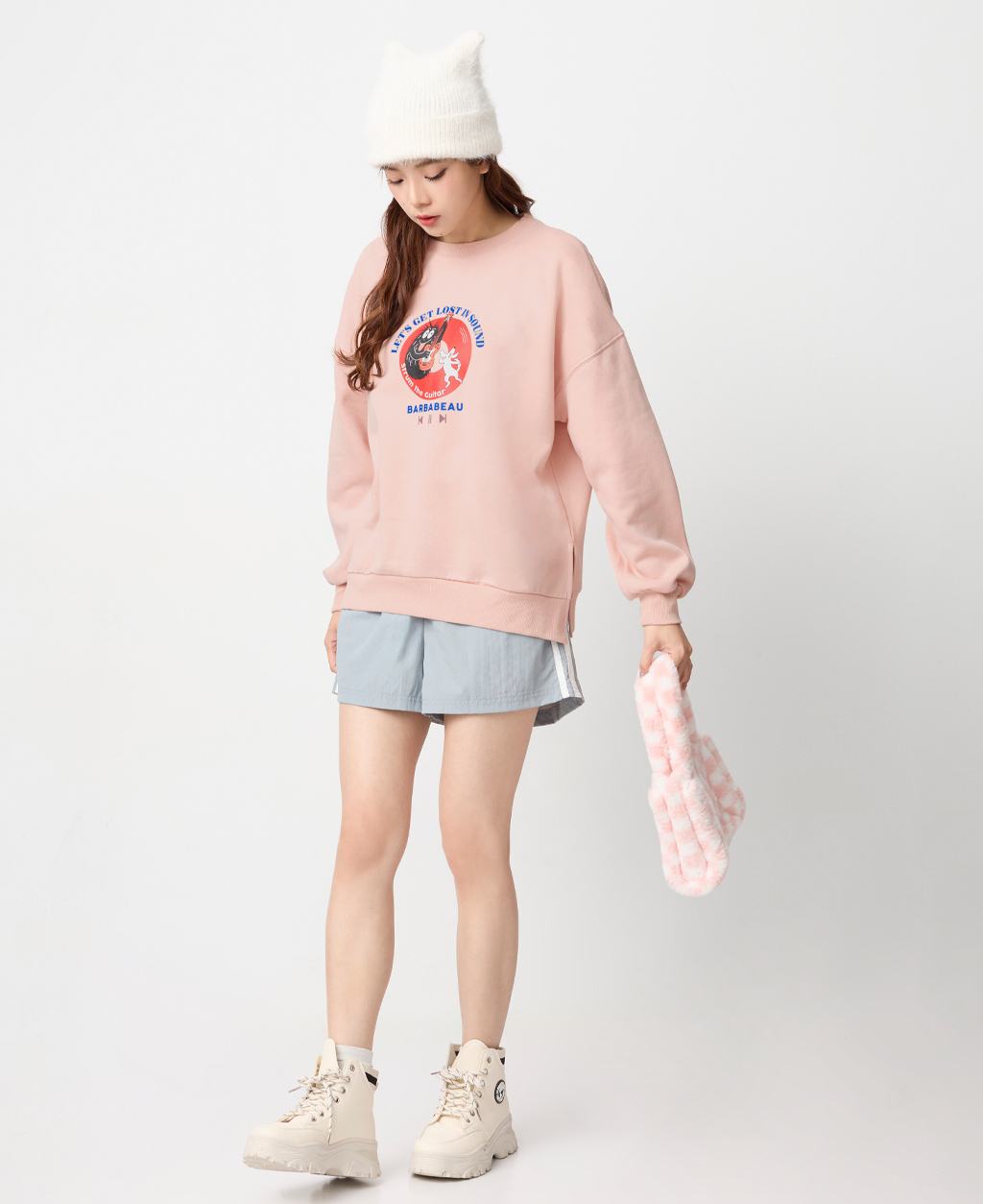 泡泡先生寬鬆落肩刷毛大學T