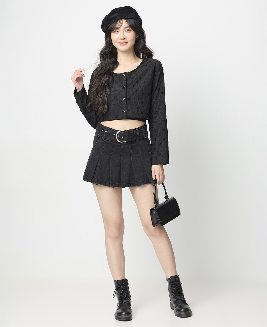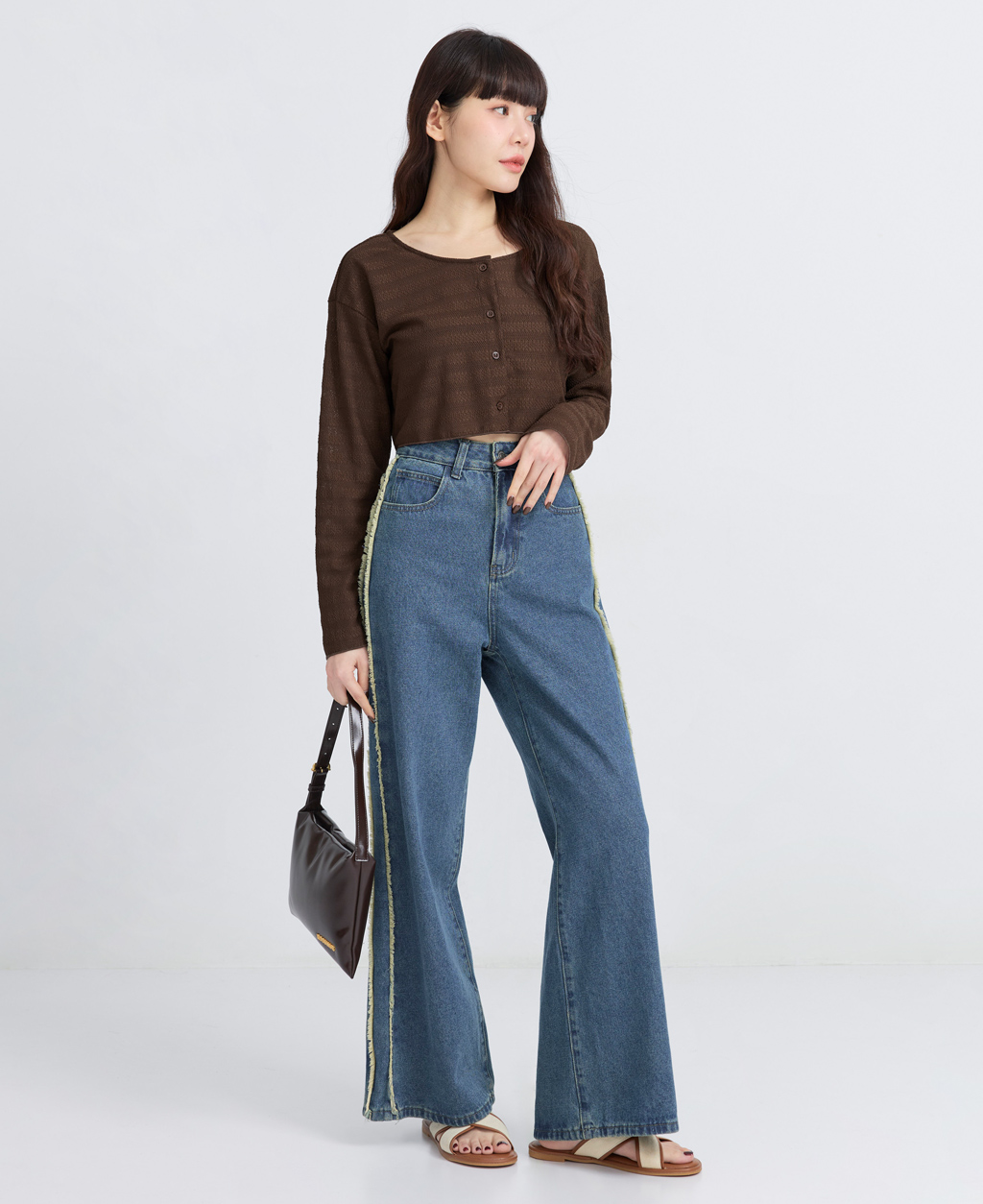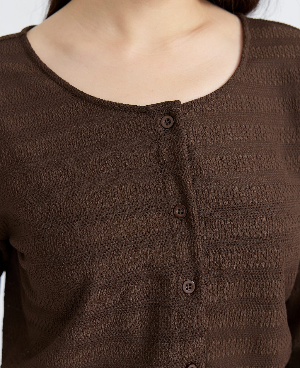 ●注意事項 1.此布料因編織特性,如被指甲或突起物、飾物及包包上的金屬裝飾等勾拉,可能會產生抽紗破洞的現象,穿著和保管時請注意。 2.建議放入洗衣袋中洗滌。