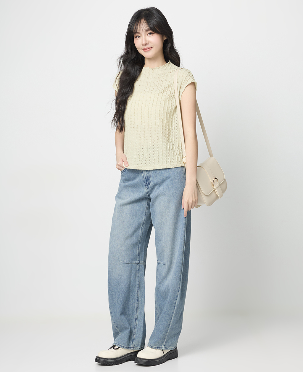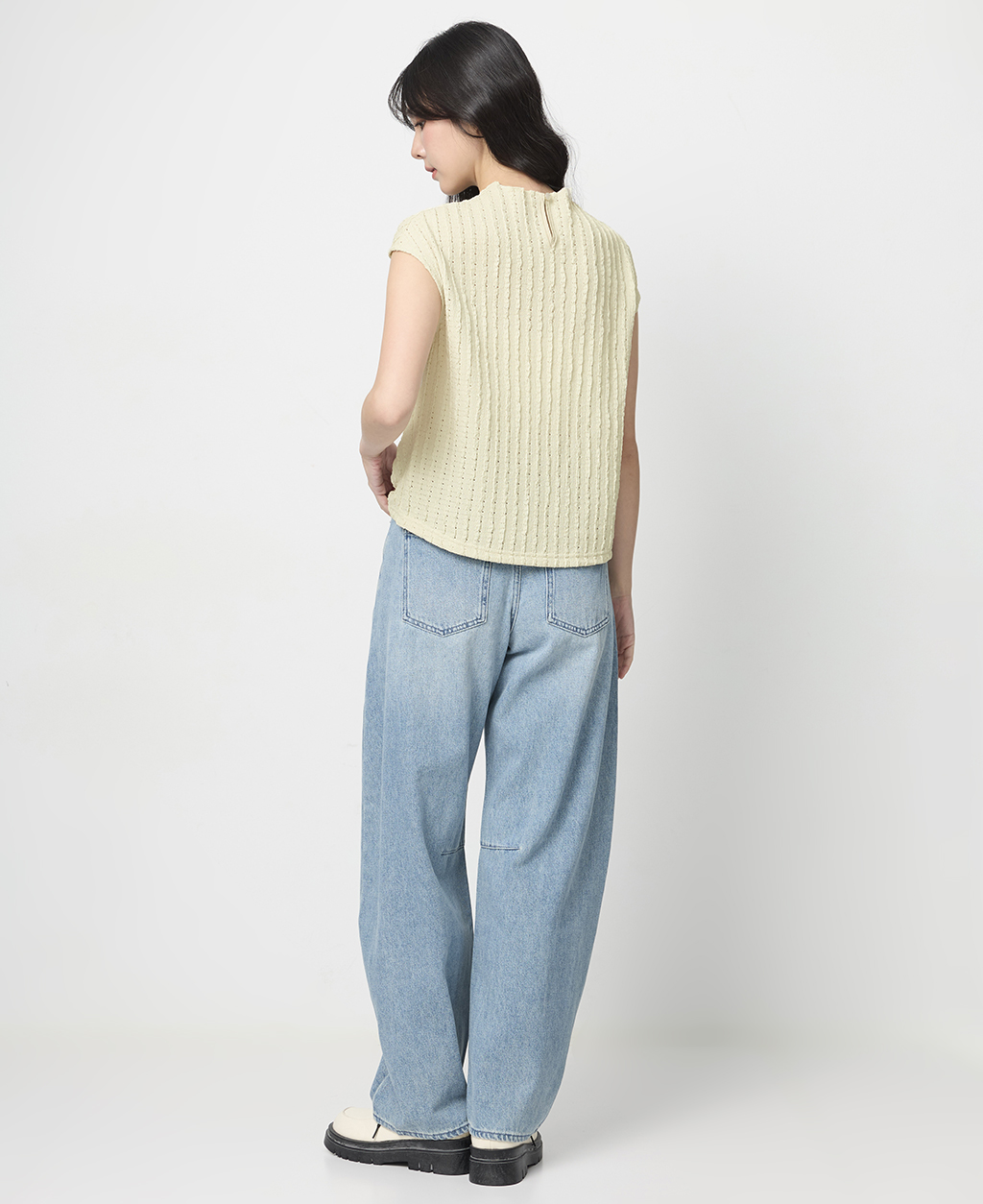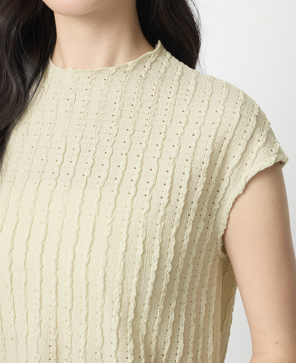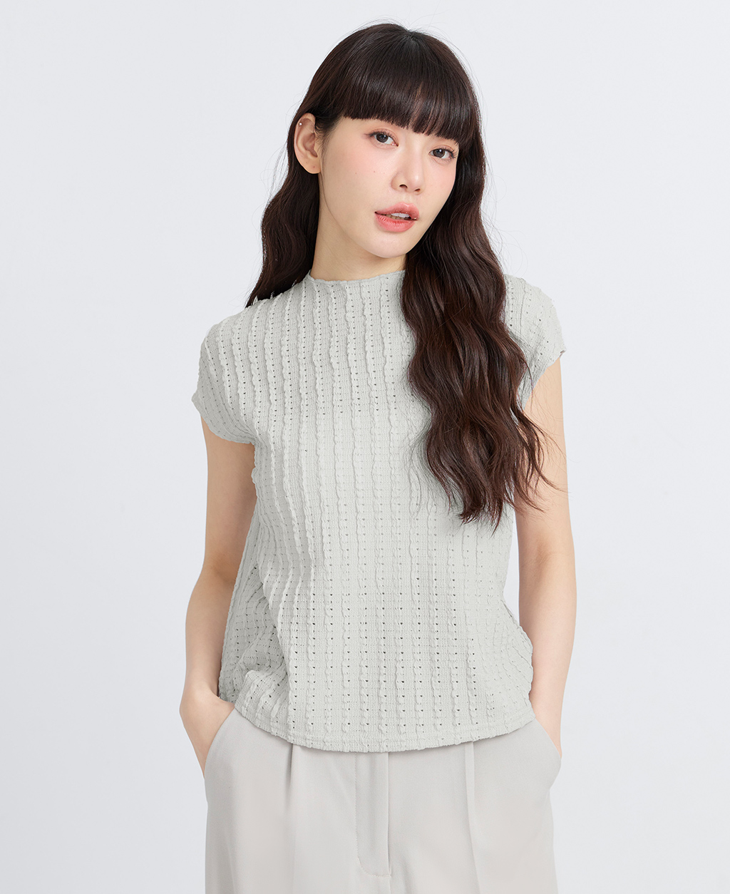 1.此布料因編織特性,如被指甲或突起物、飾物及包包上的金屬裝飾等勾拉,可能會產生抽紗破洞的現象,穿著和保管時請注意。
