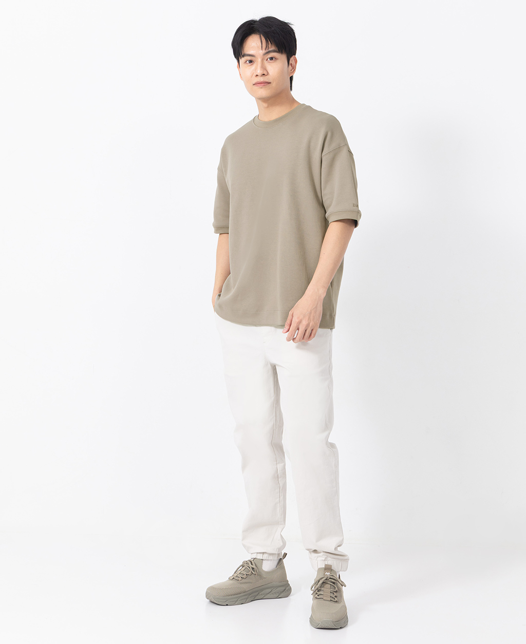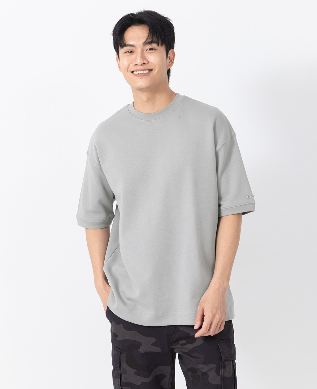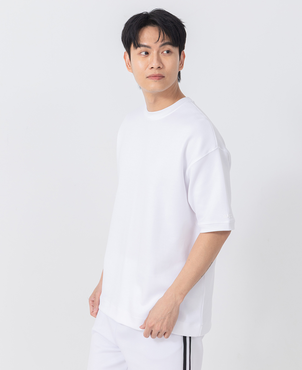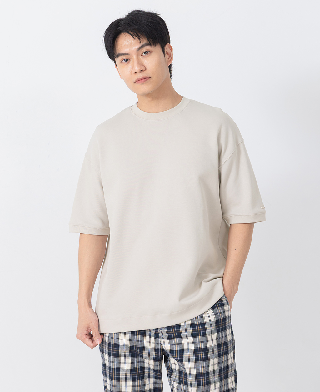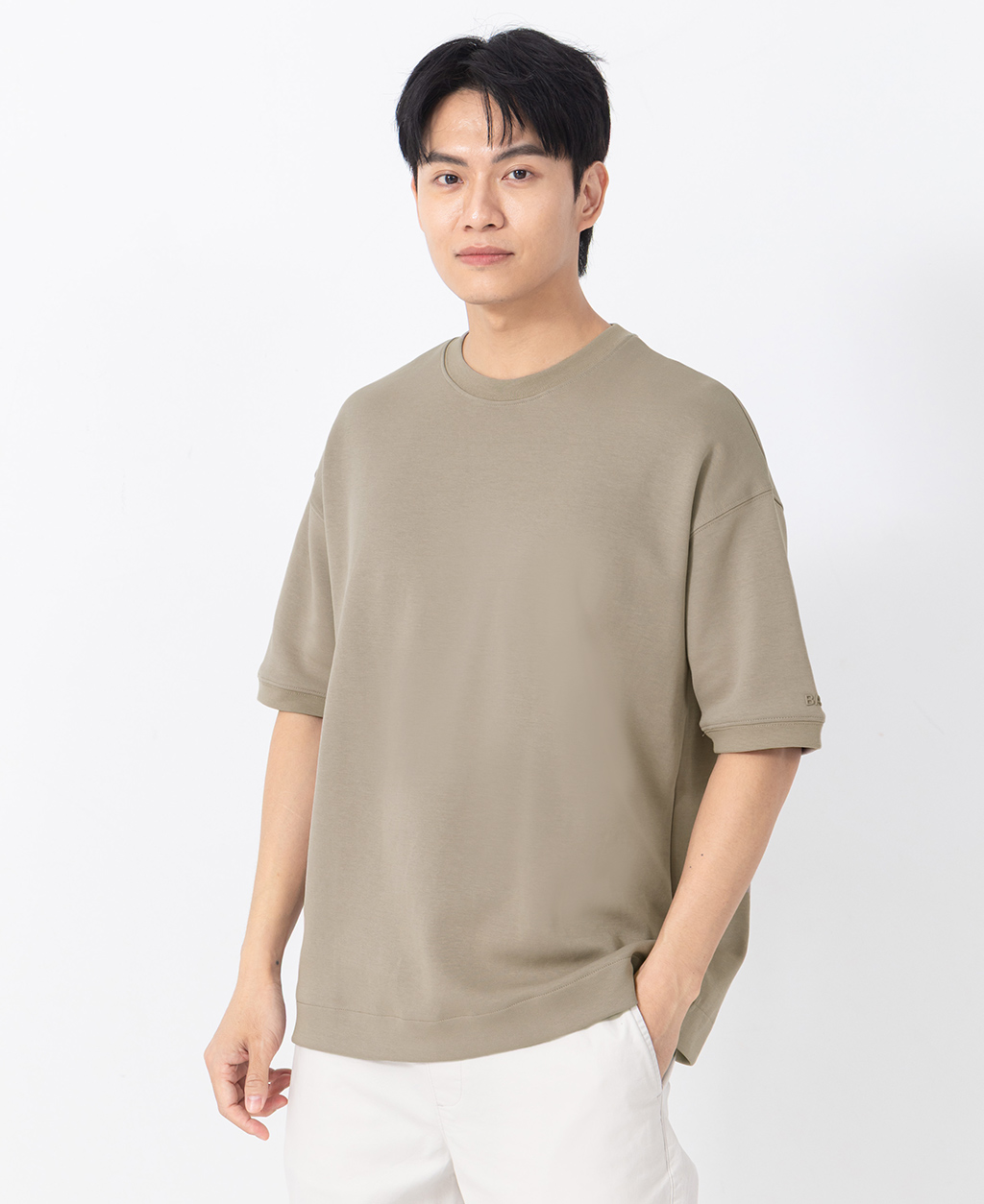 落肩左袖小圖T恤