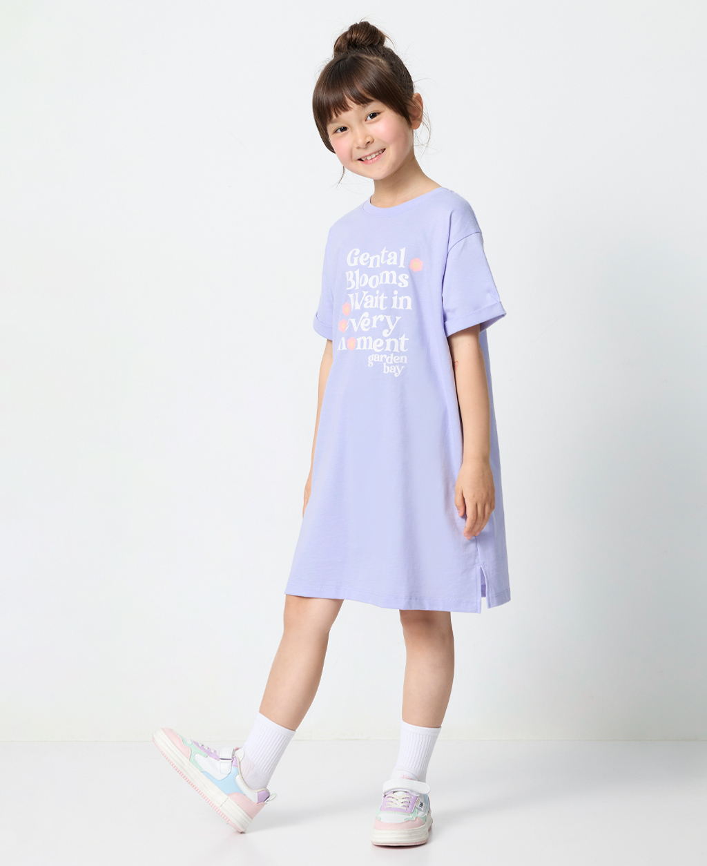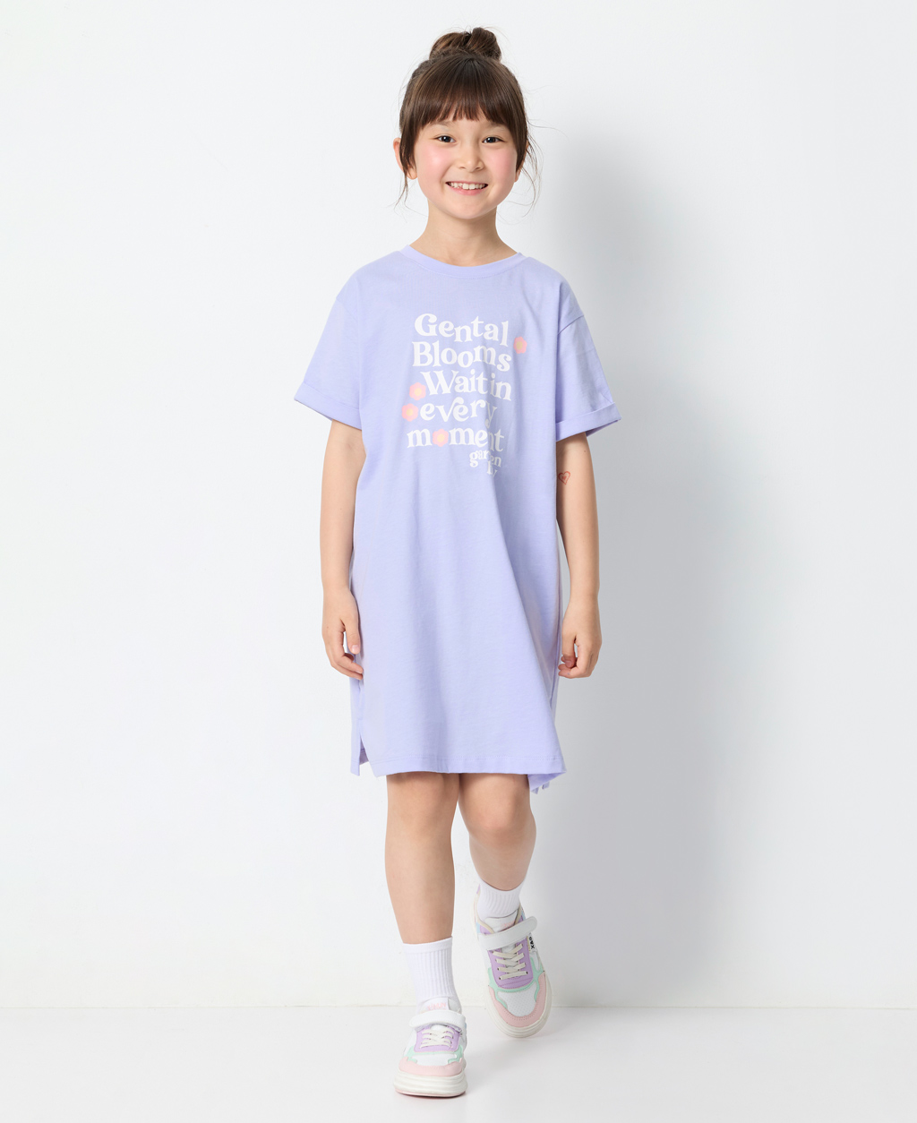 童印花直筒短袖洋裝