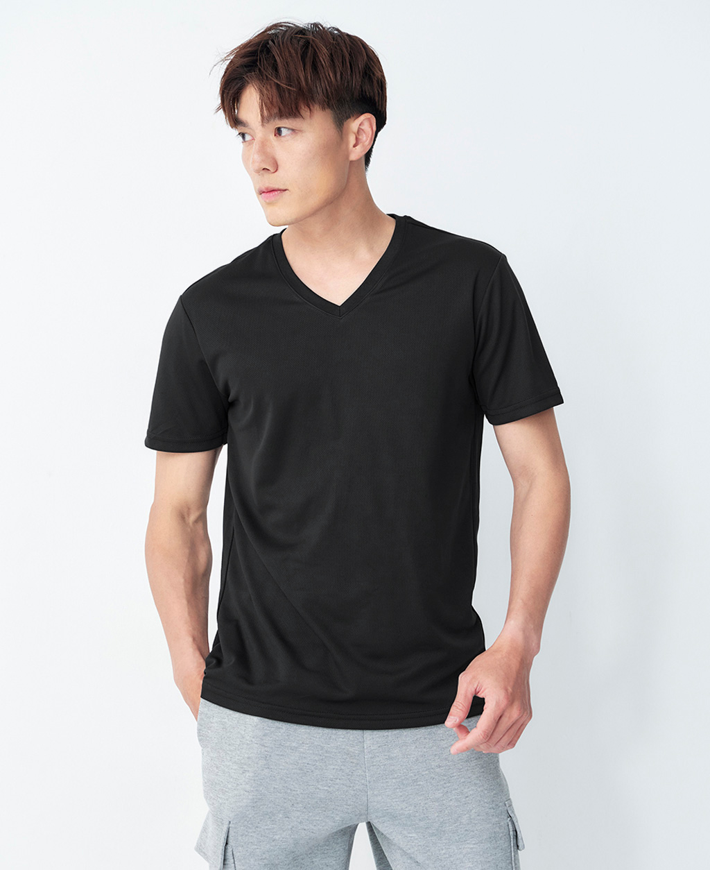 快適排汗V領T恤