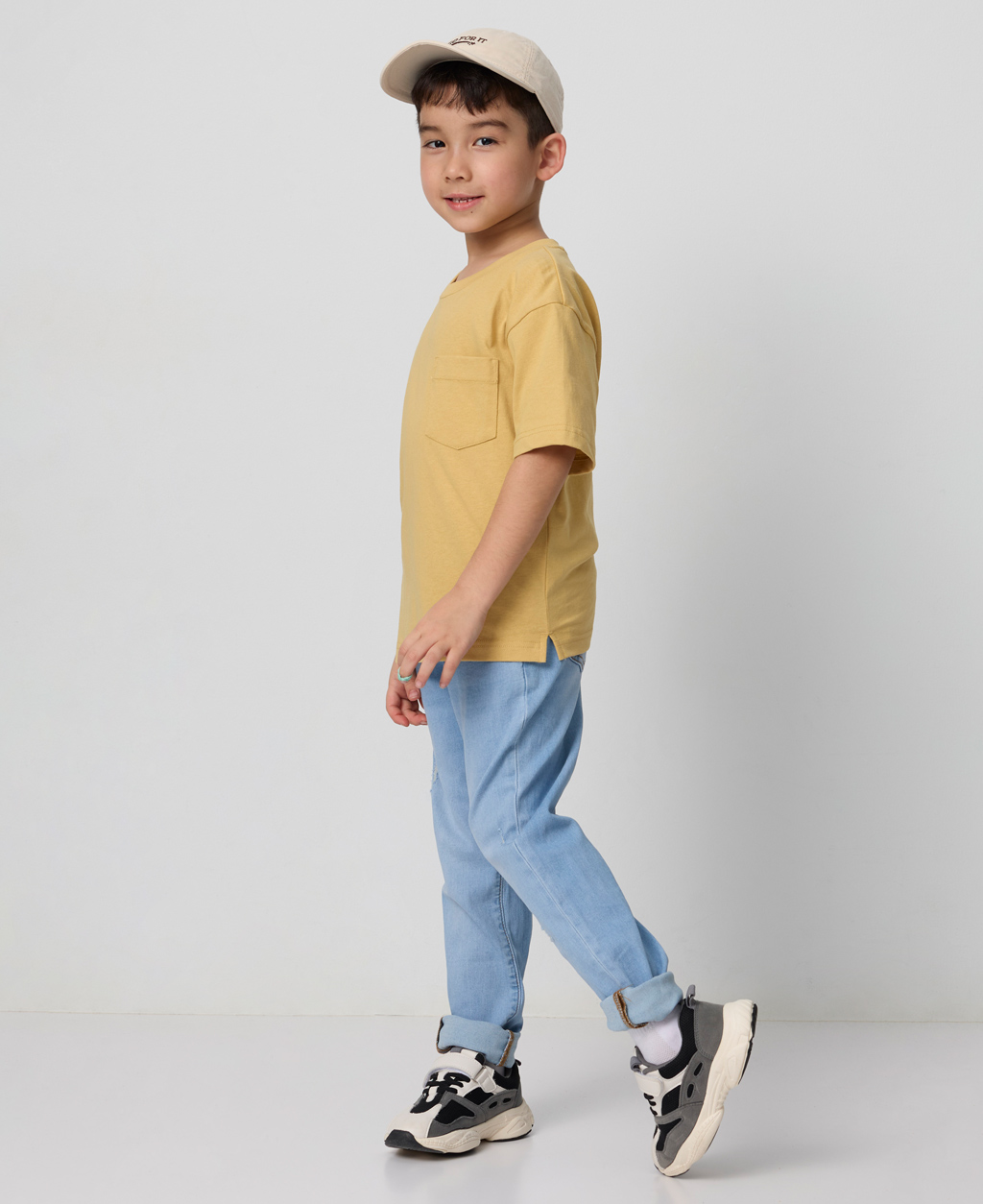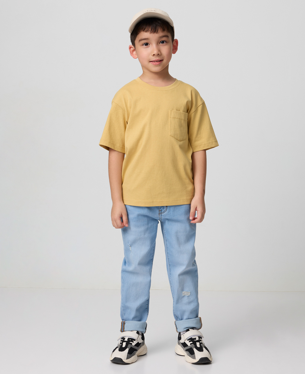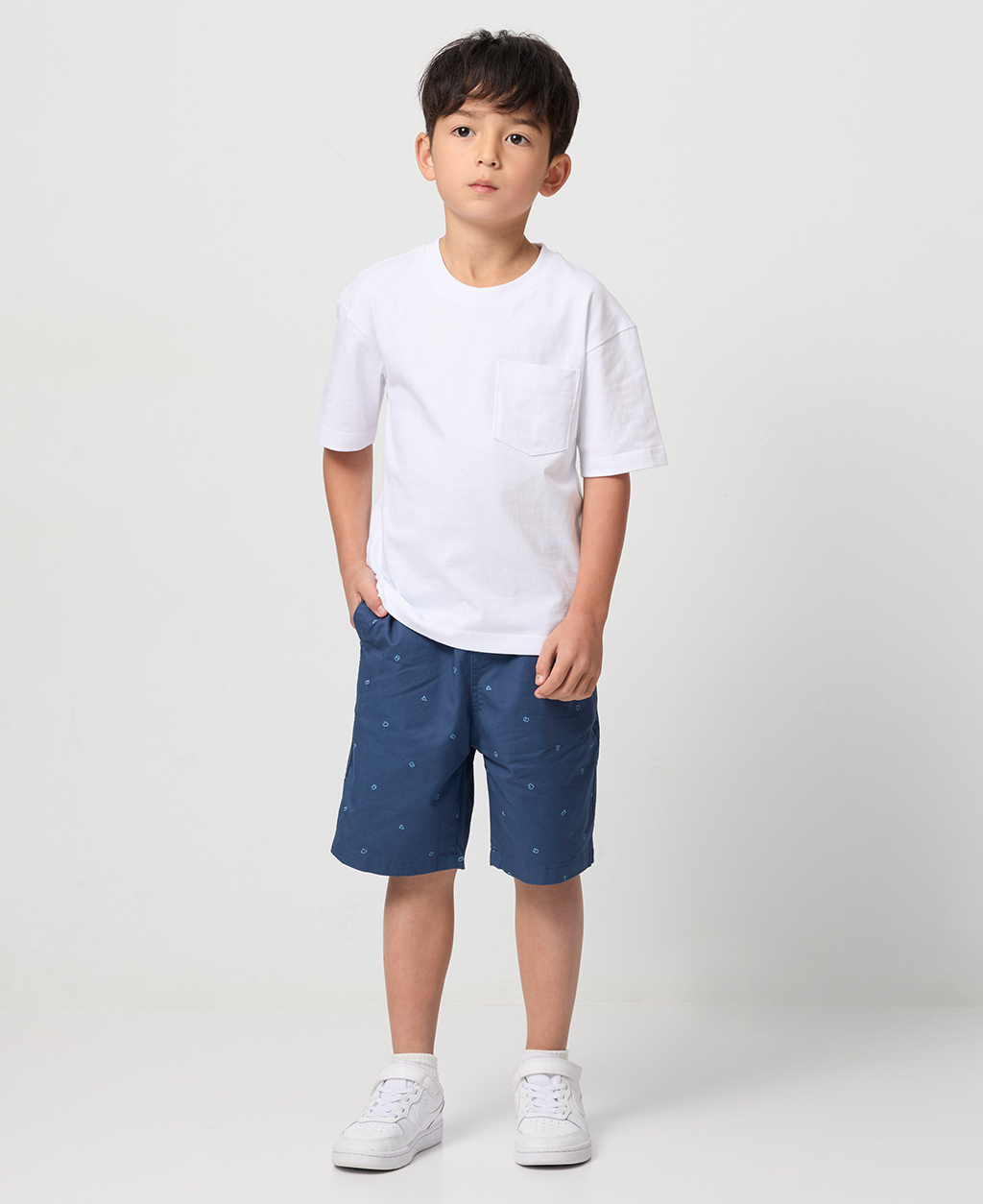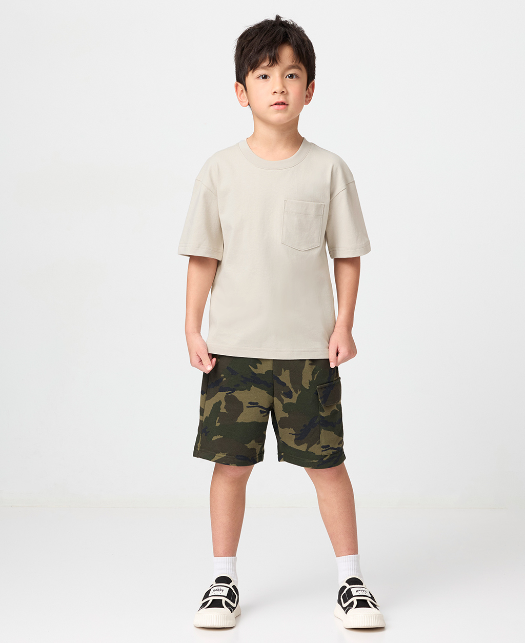 童素色落肩貼袋T恤