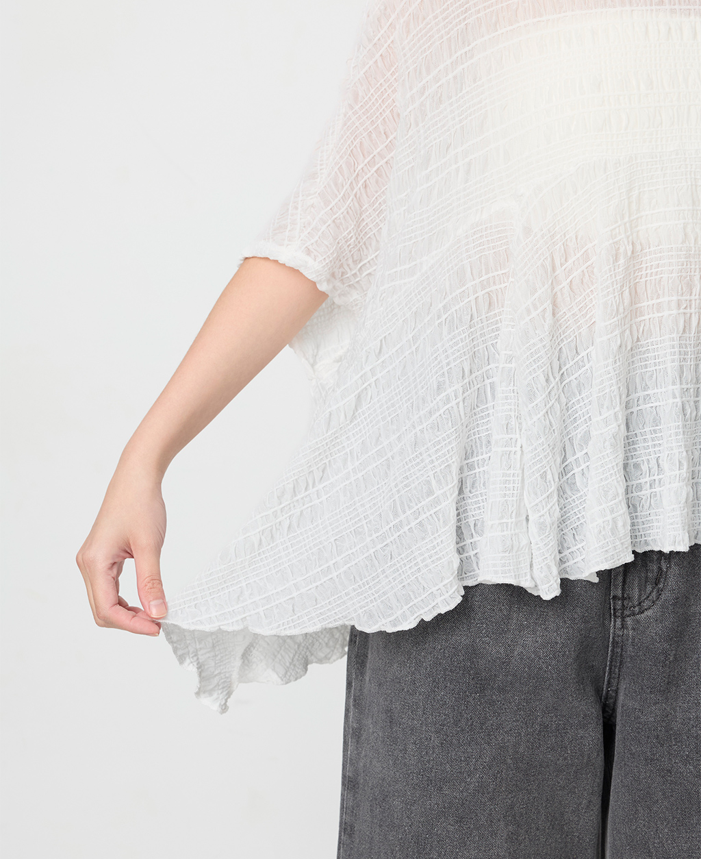 1.此商品因面料編織特性上的原因,紗支精密細緻,纖維如被指甲或突起物、飾物及包類上的金屬部分等勾拉,可能會產生抽紗破洞的現象,穿著保管時請注意。