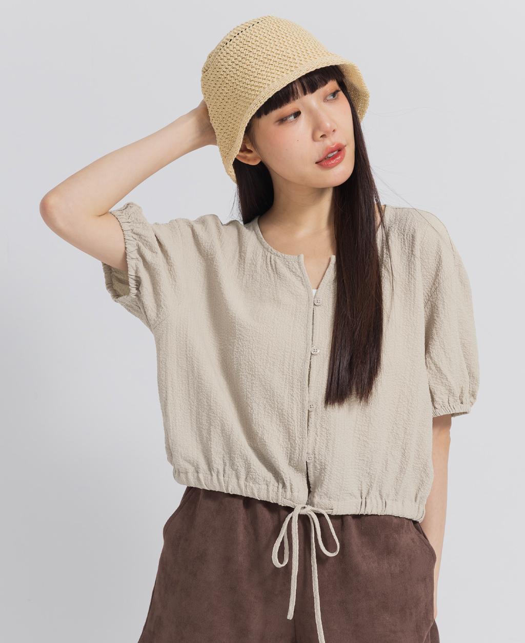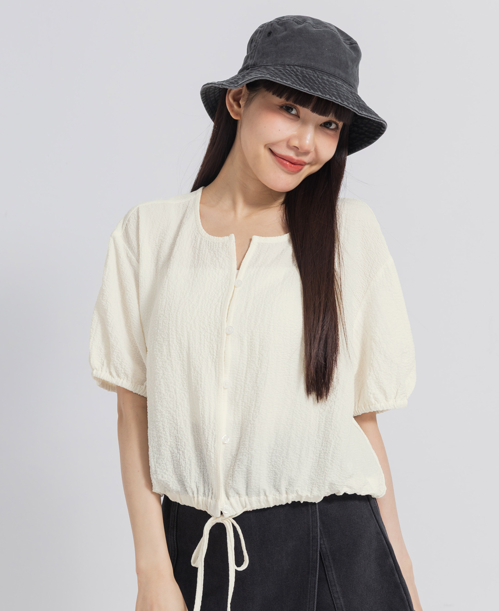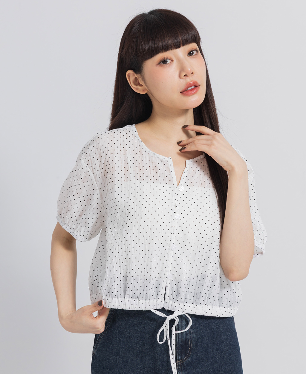 ●注意事項 1.此布料因編織特性,如被指甲或突起物、飾物及包包上的金屬裝飾等勾拉,可能會產生抽紗破洞的現象,穿著和保管時請注意。 2.建議放入洗衣袋中洗滌。