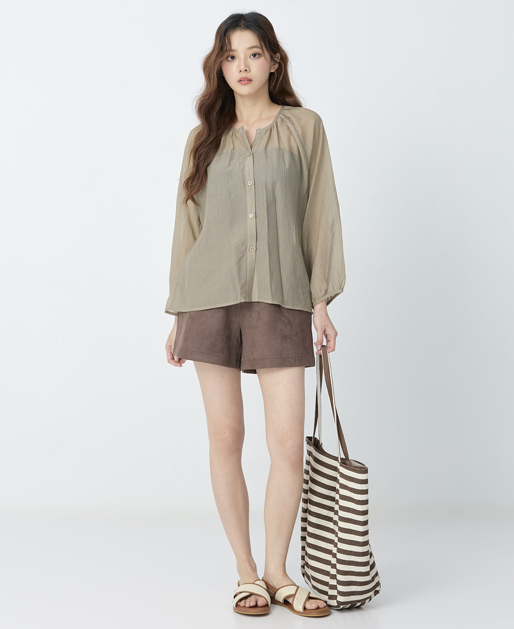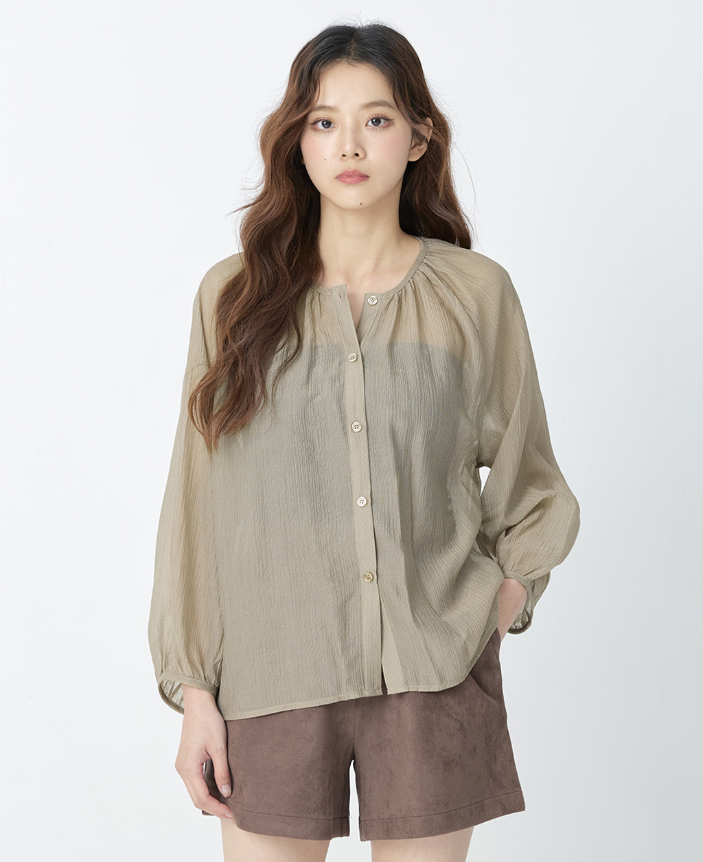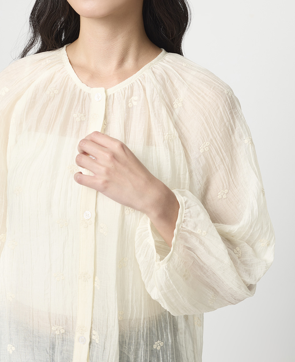 ●注意事項 1.此布料因編織特性,如被指甲或突起物、飾物及包包上的金屬裝飾等勾拉,可能會產生抽紗破洞的現象,穿著和保管時請注意。 2.建議放入洗衣袋中洗滌。