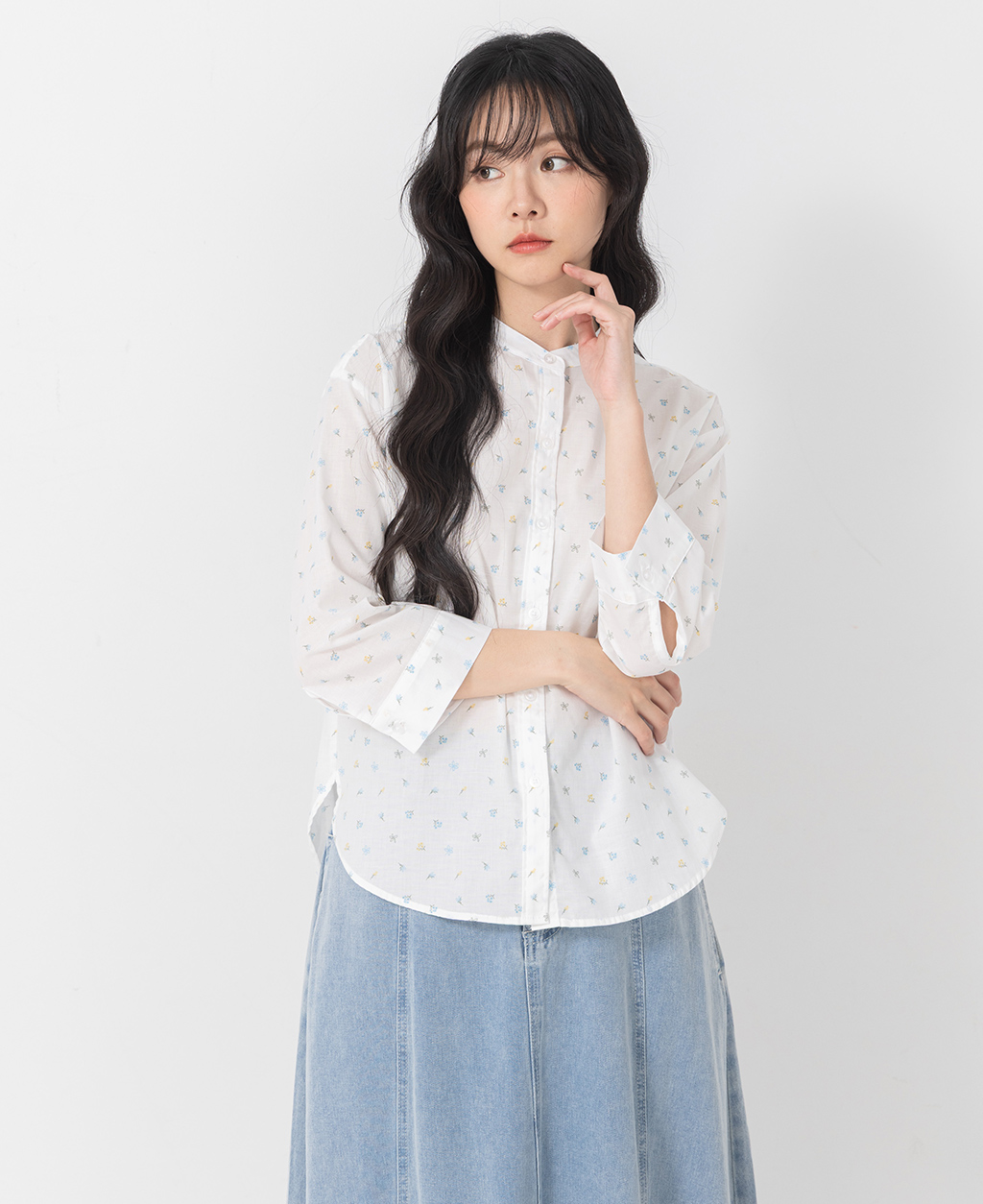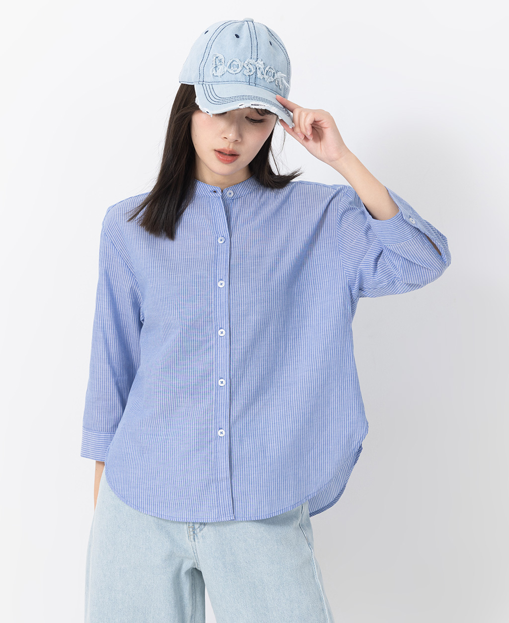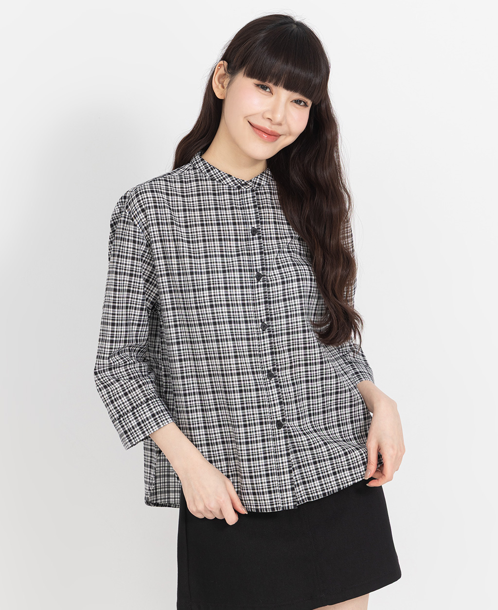 休閒立領七分袖襯衫