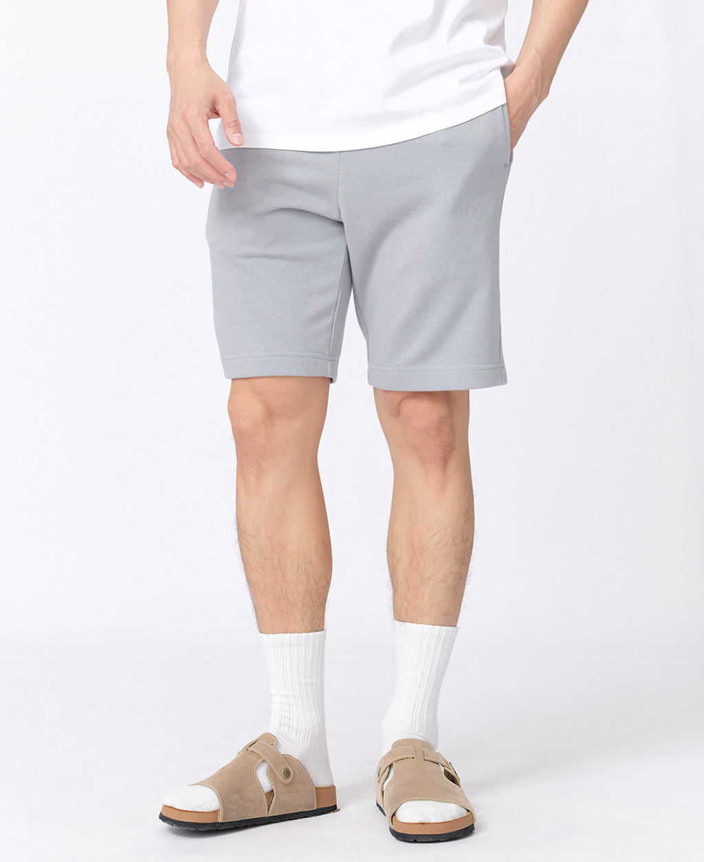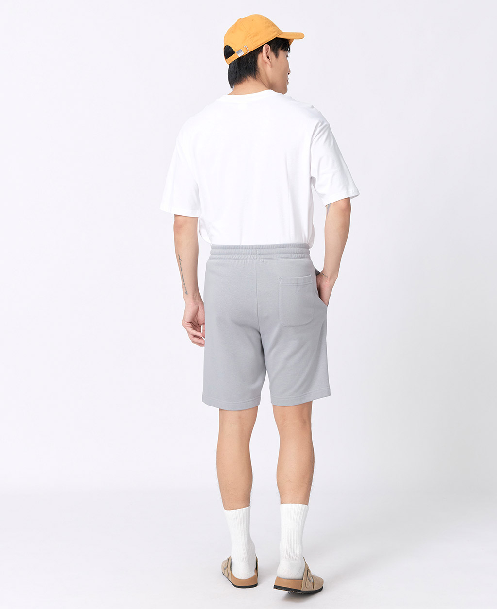 素色毛圈鬆緊綁帶短褲
