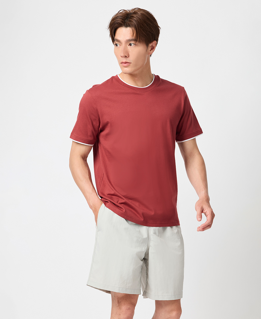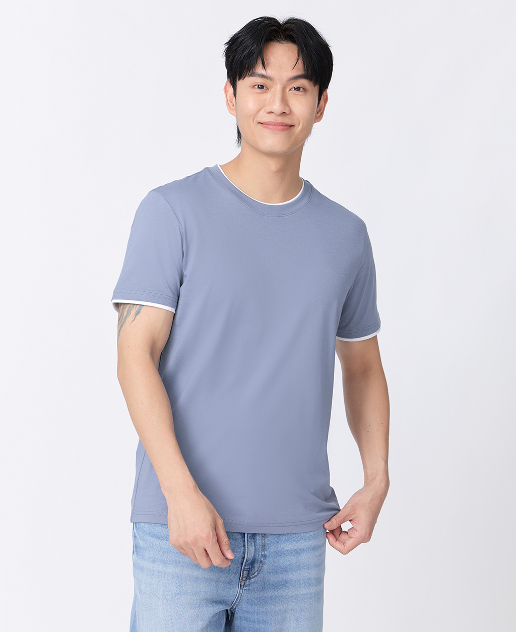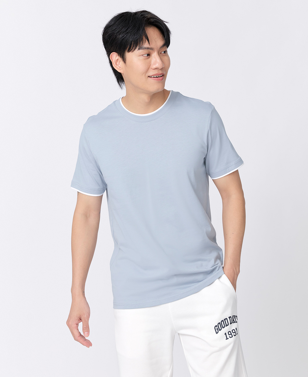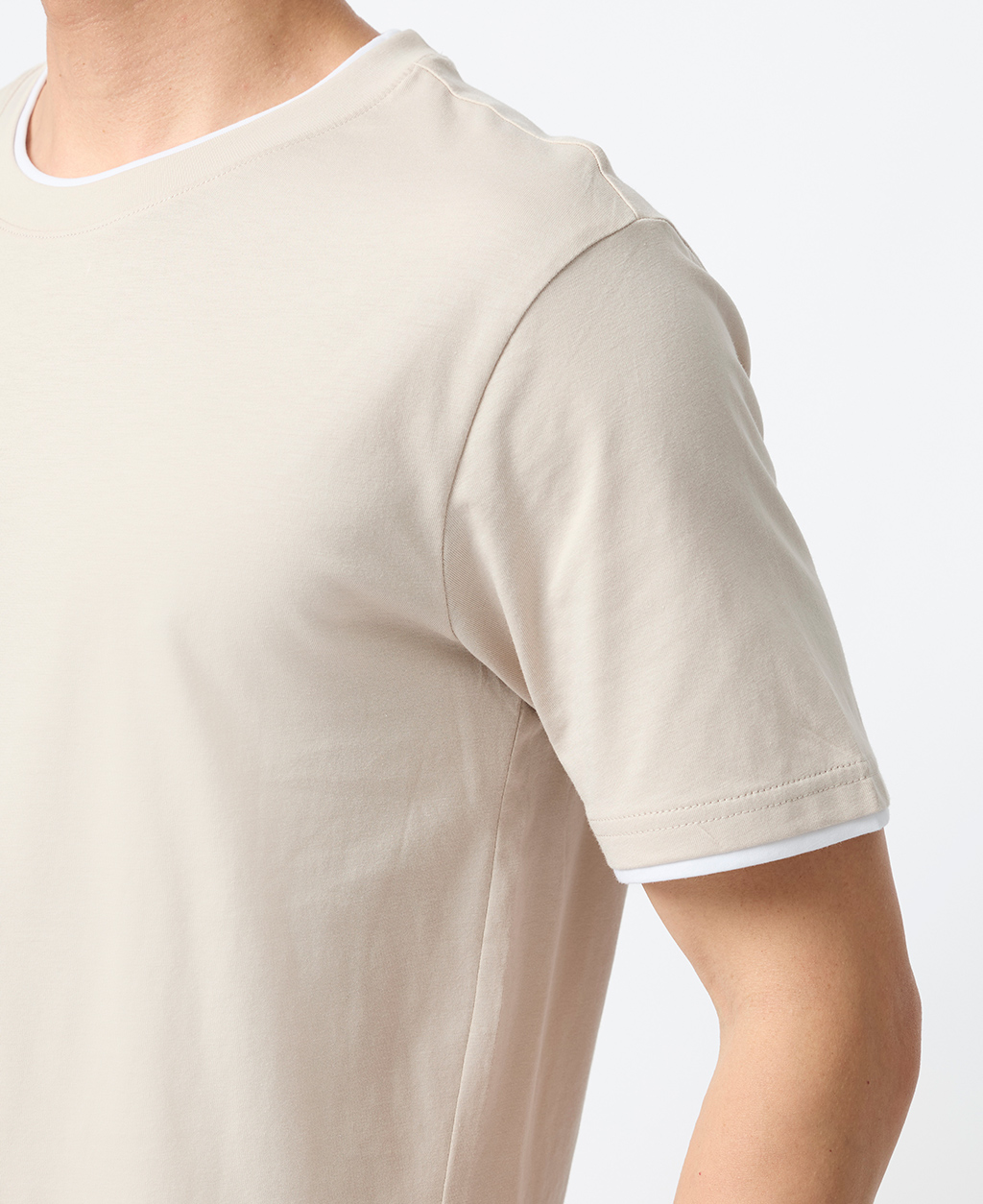 雙層領素面圓領T恤