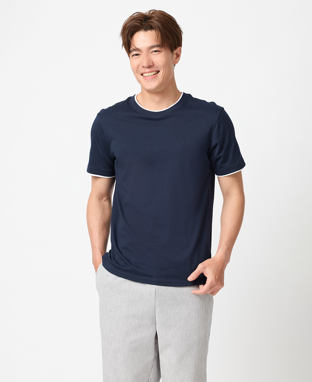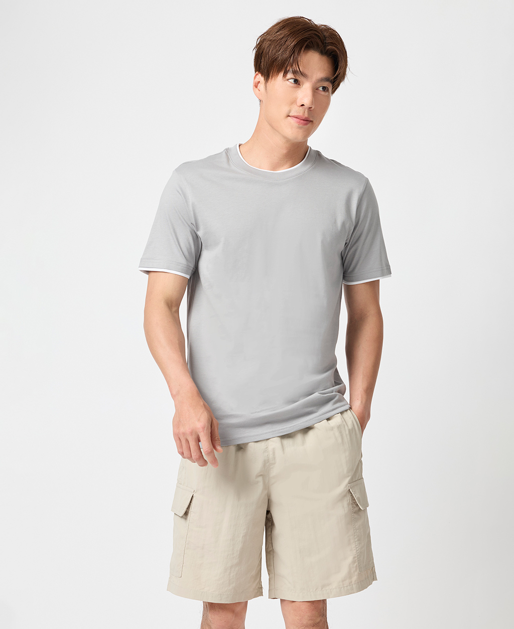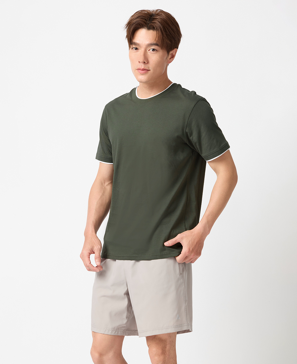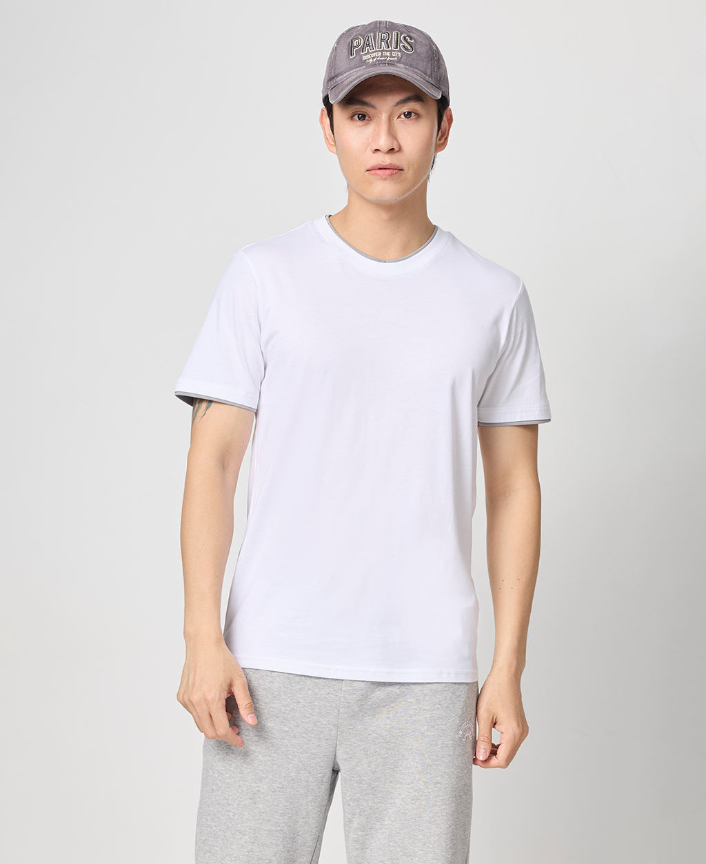 雙層領素面圓領T恤