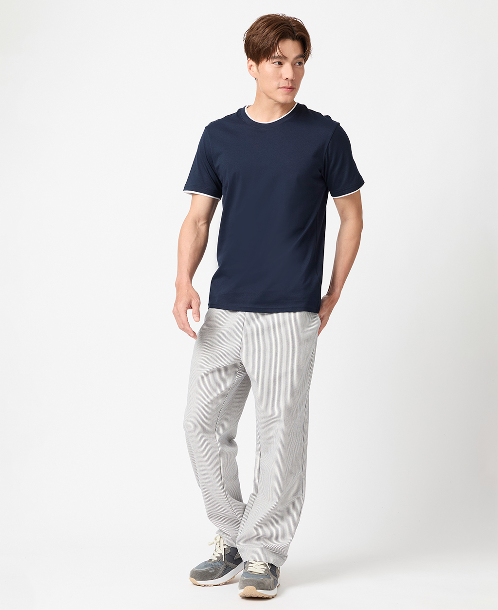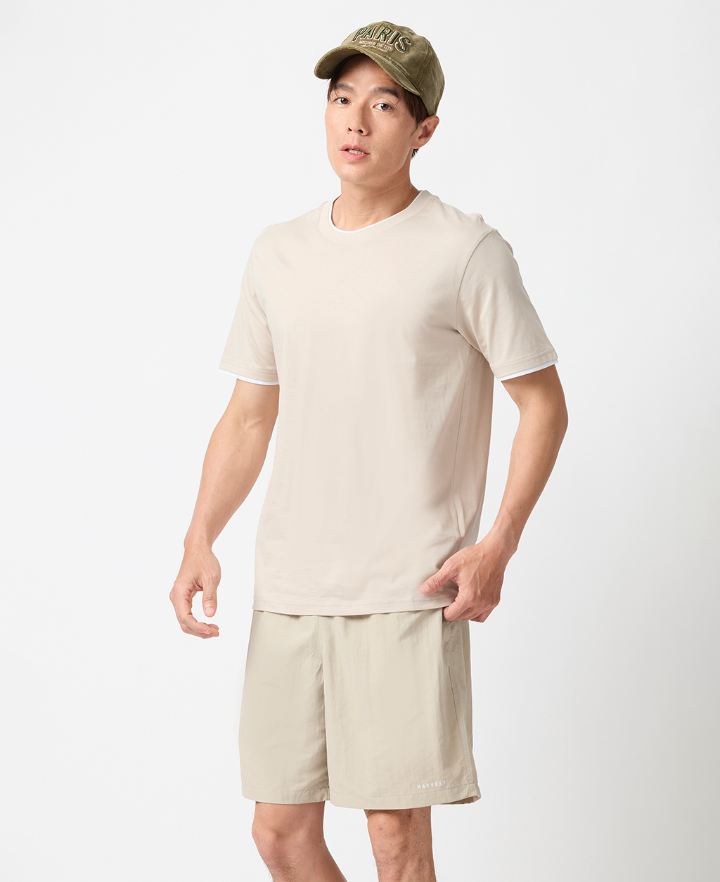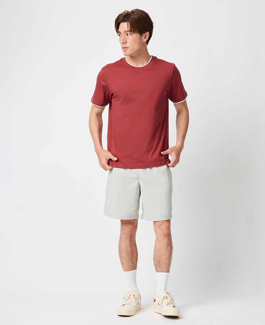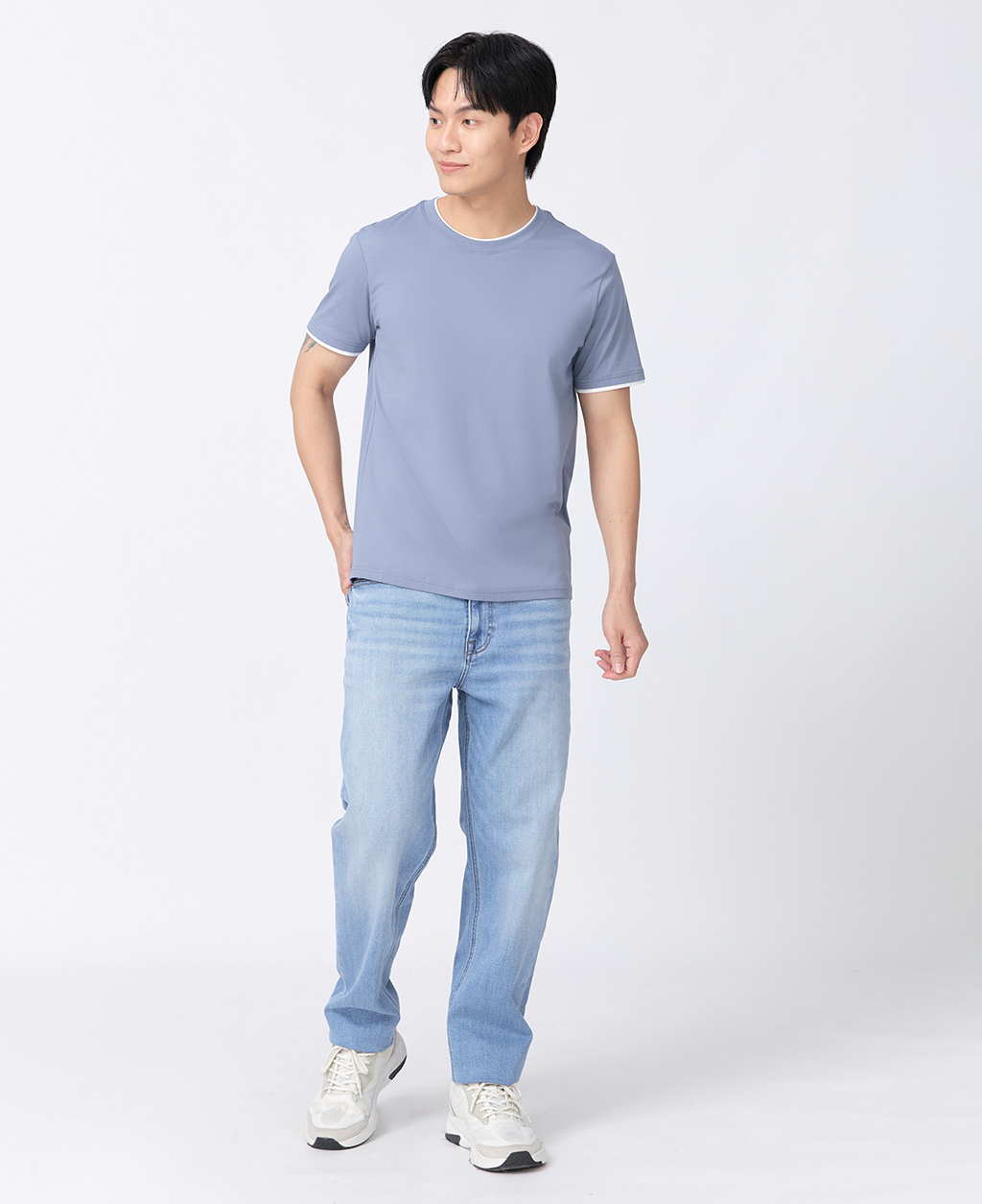 雙層領素面圓領T恤