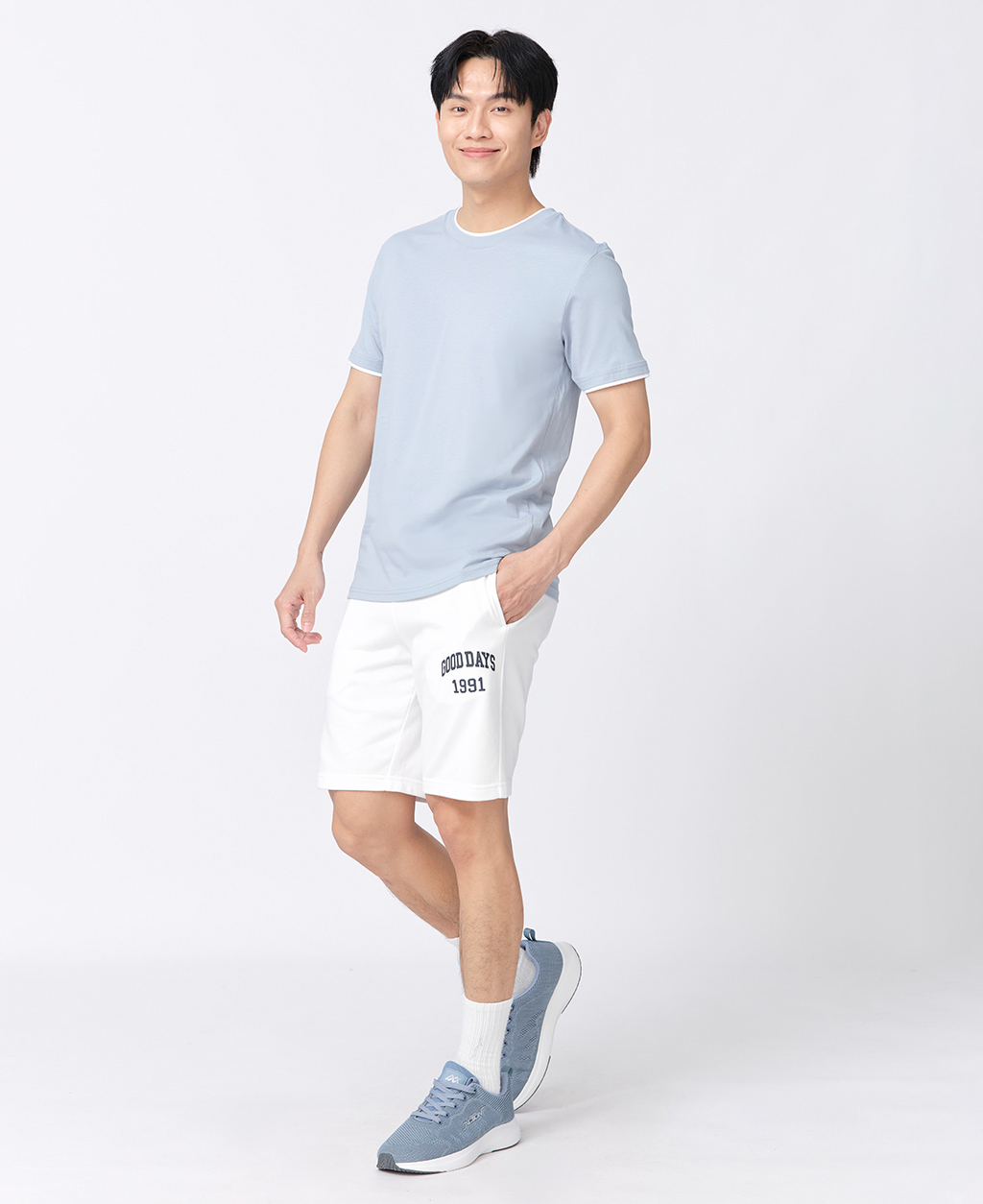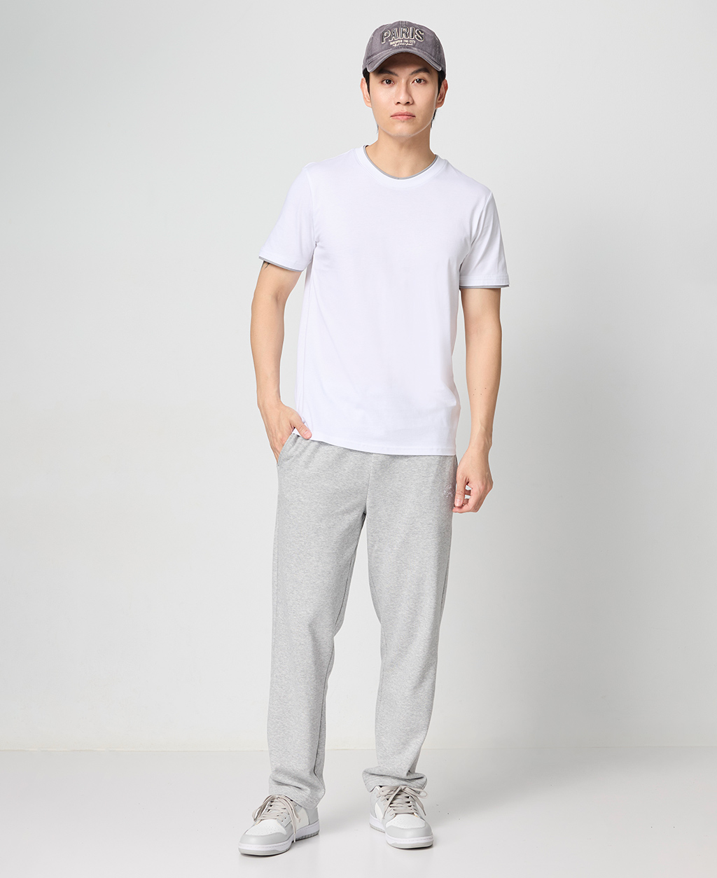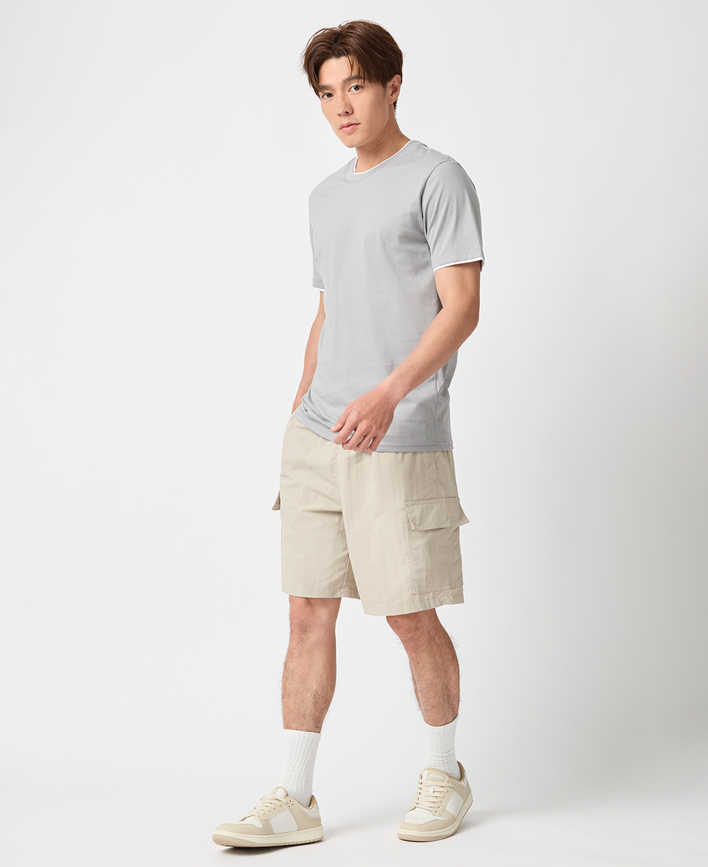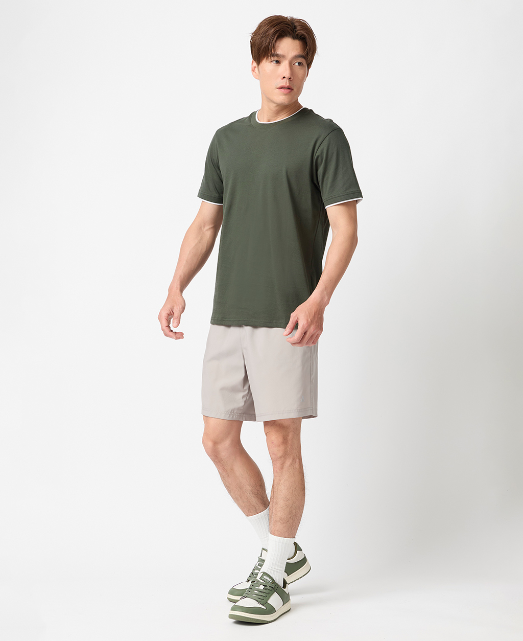 雙層領素面圓領T恤