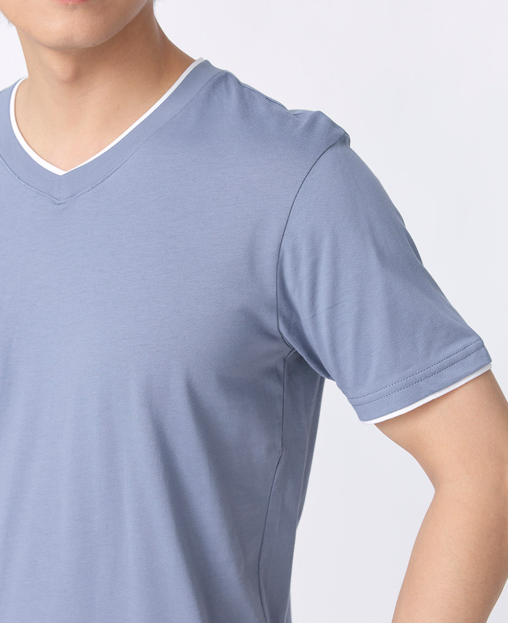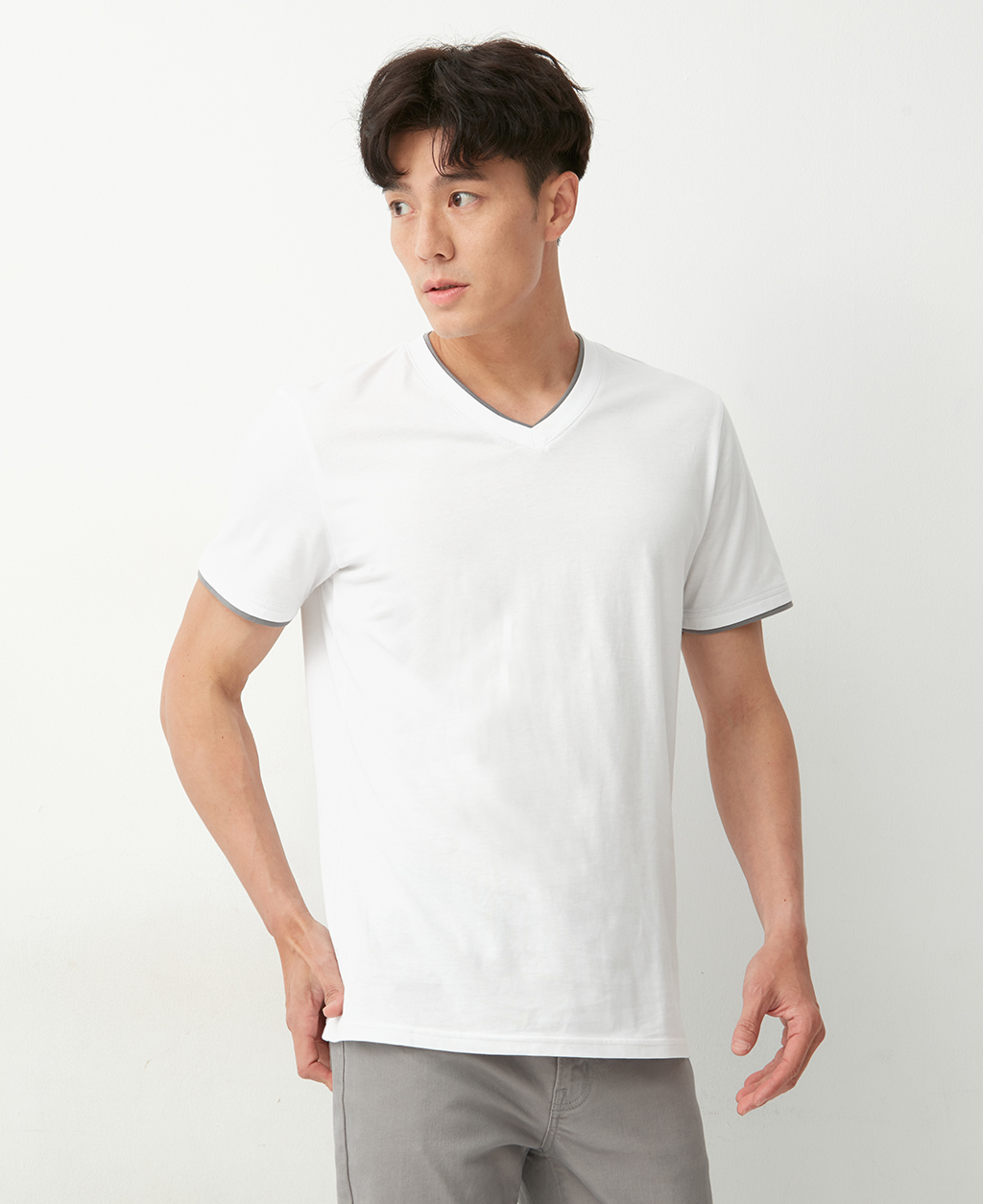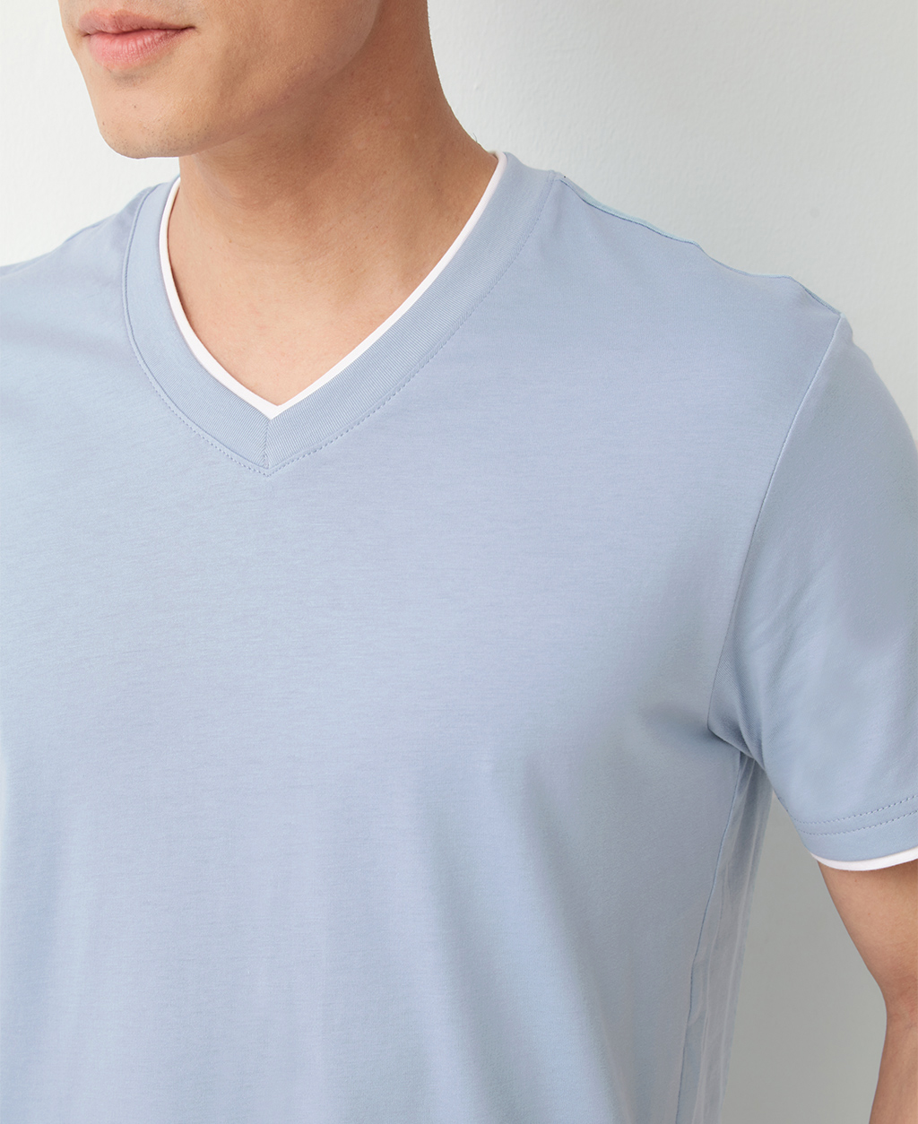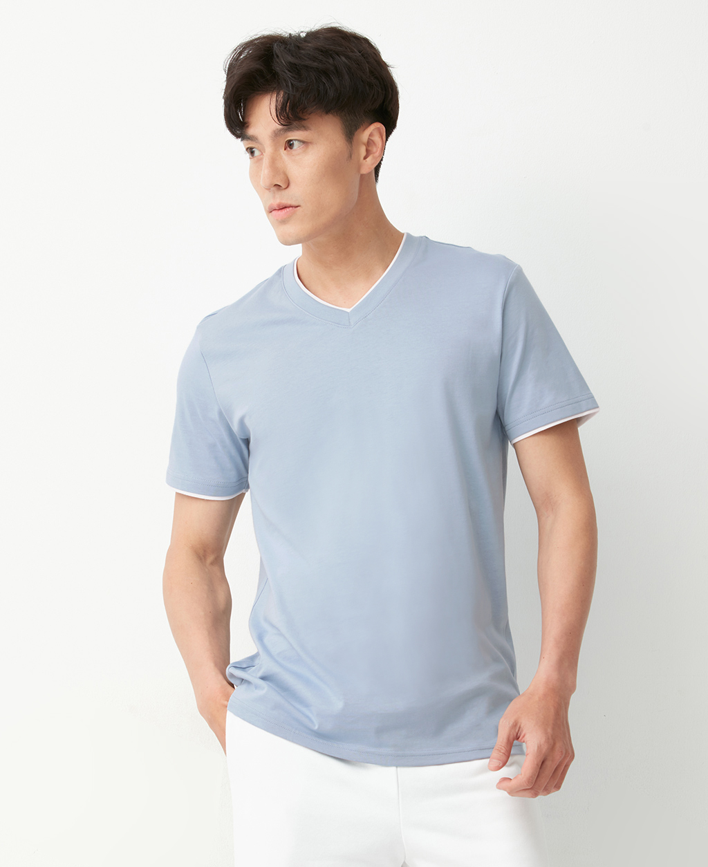 雙層V領素色T恤