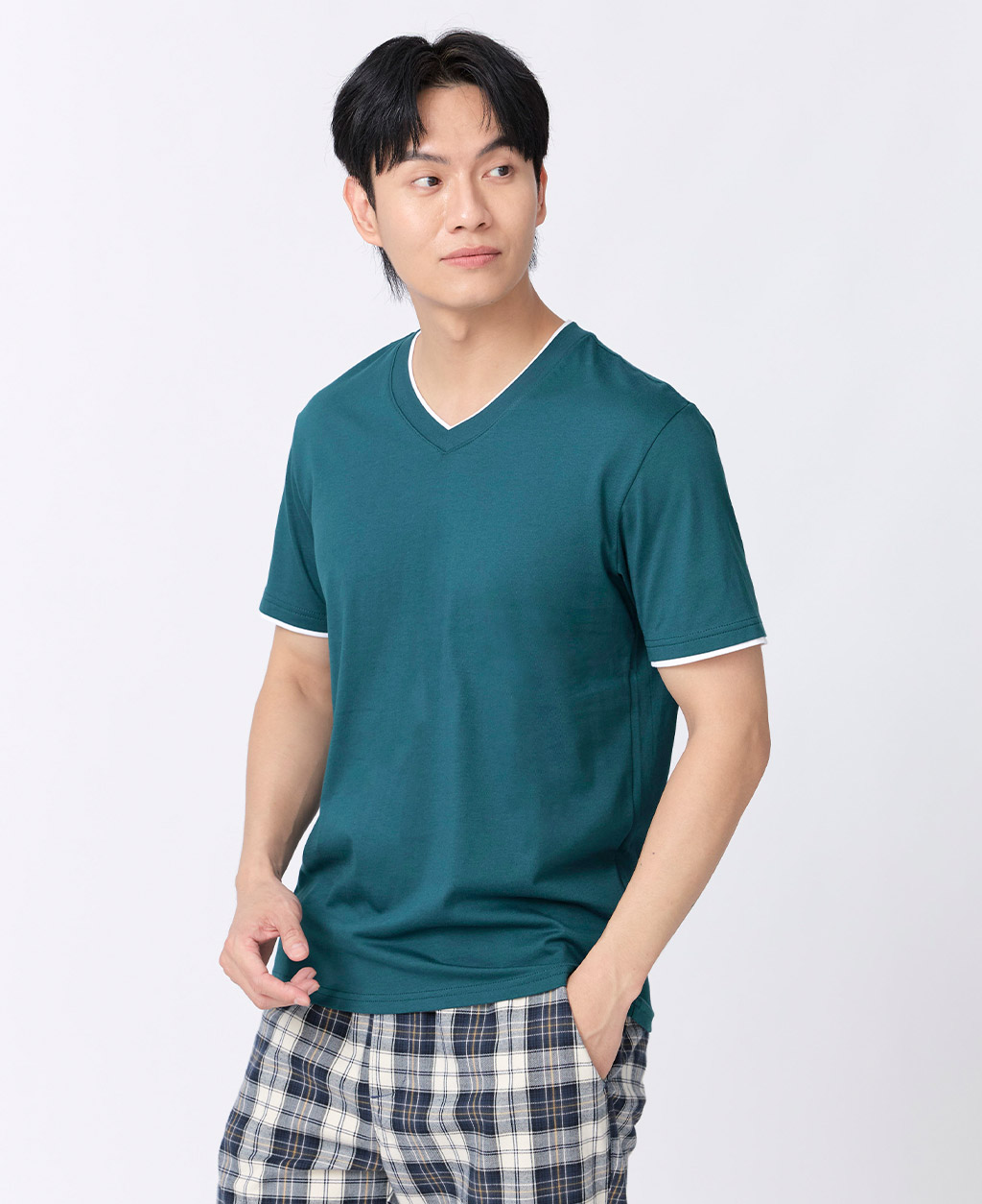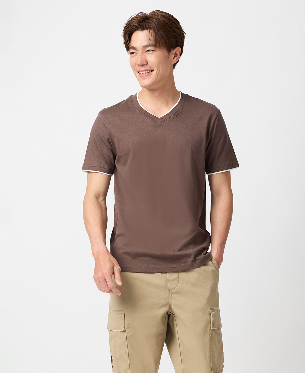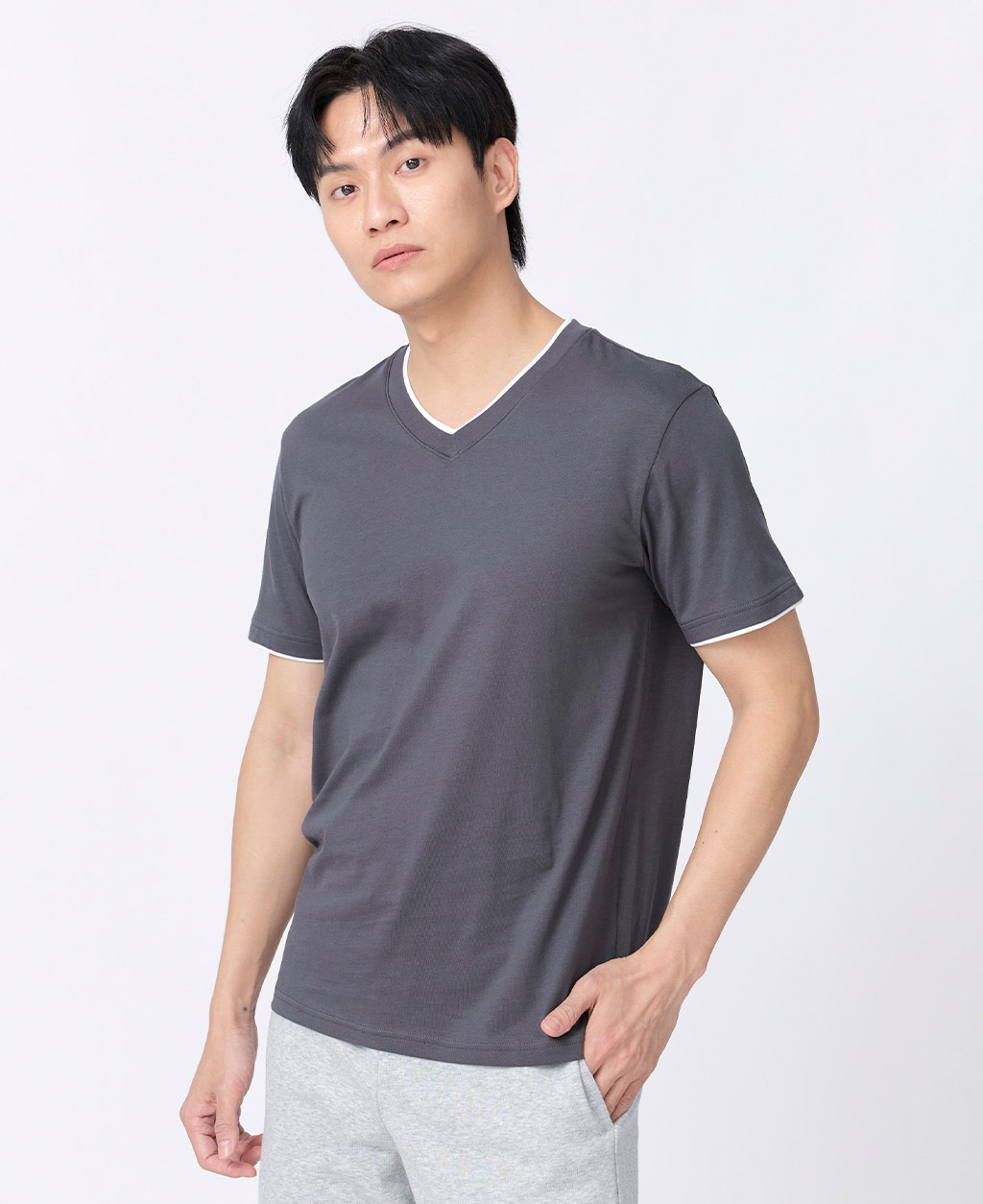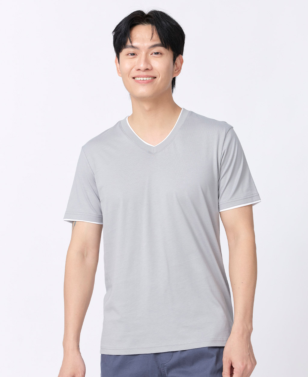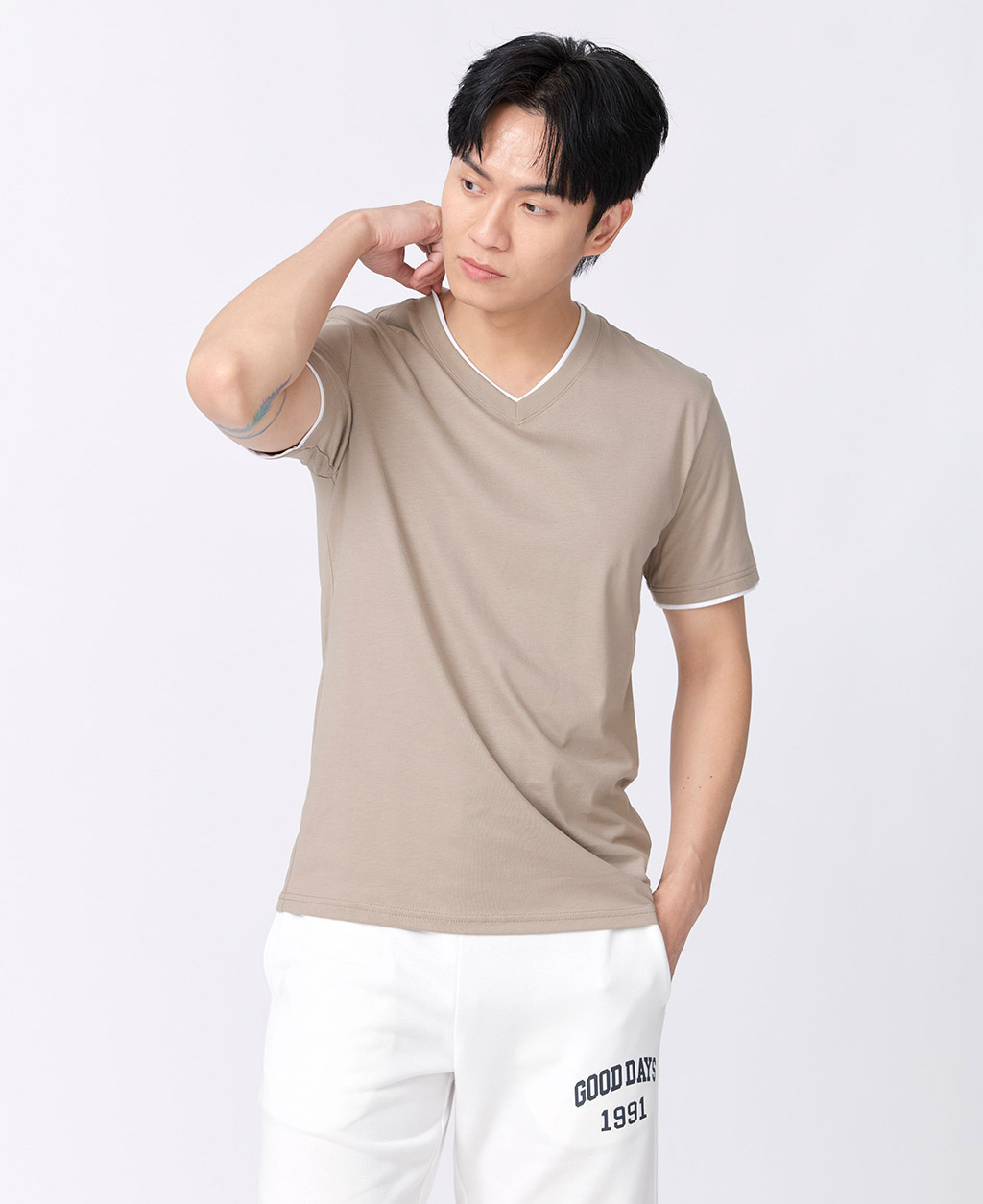 雙層V領素色T恤