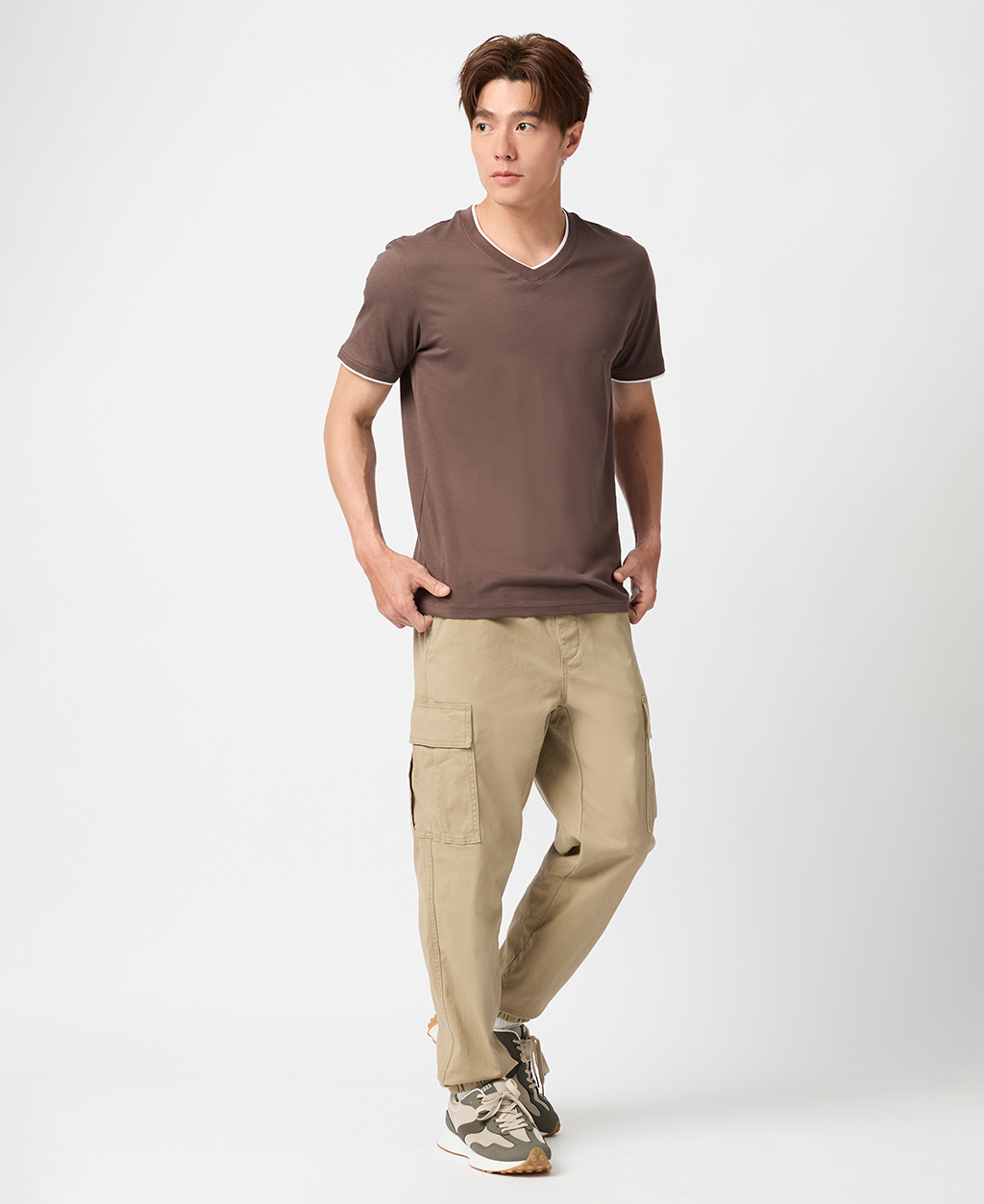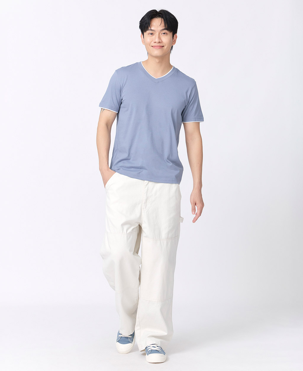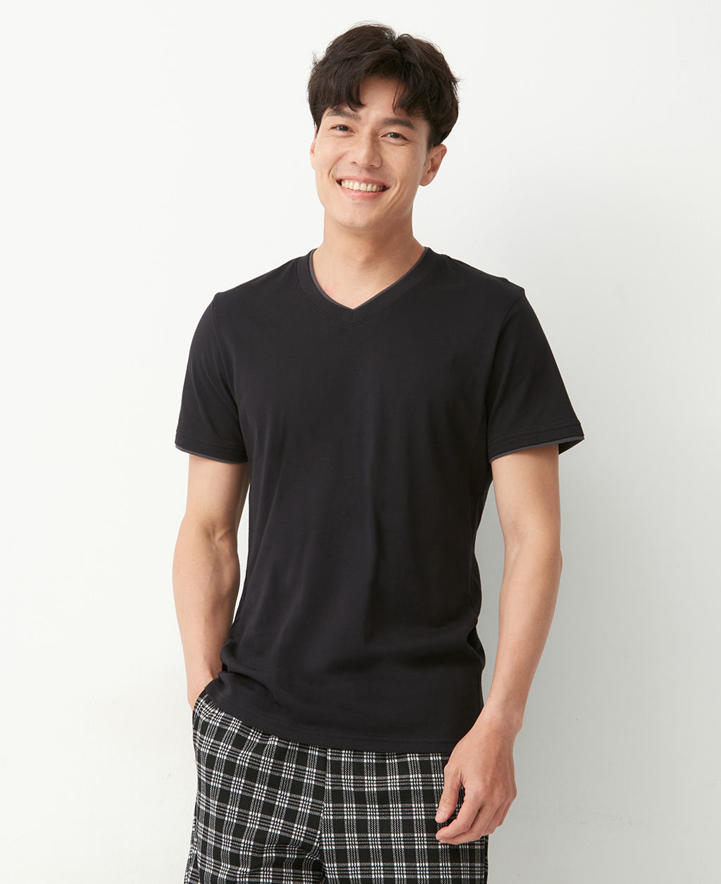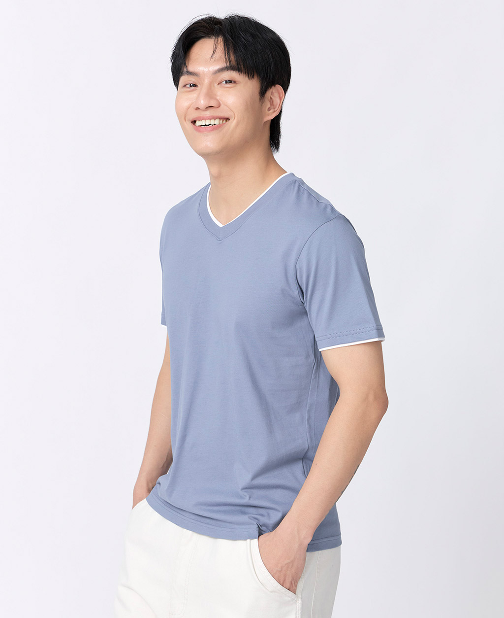 雙層V領素色T恤
