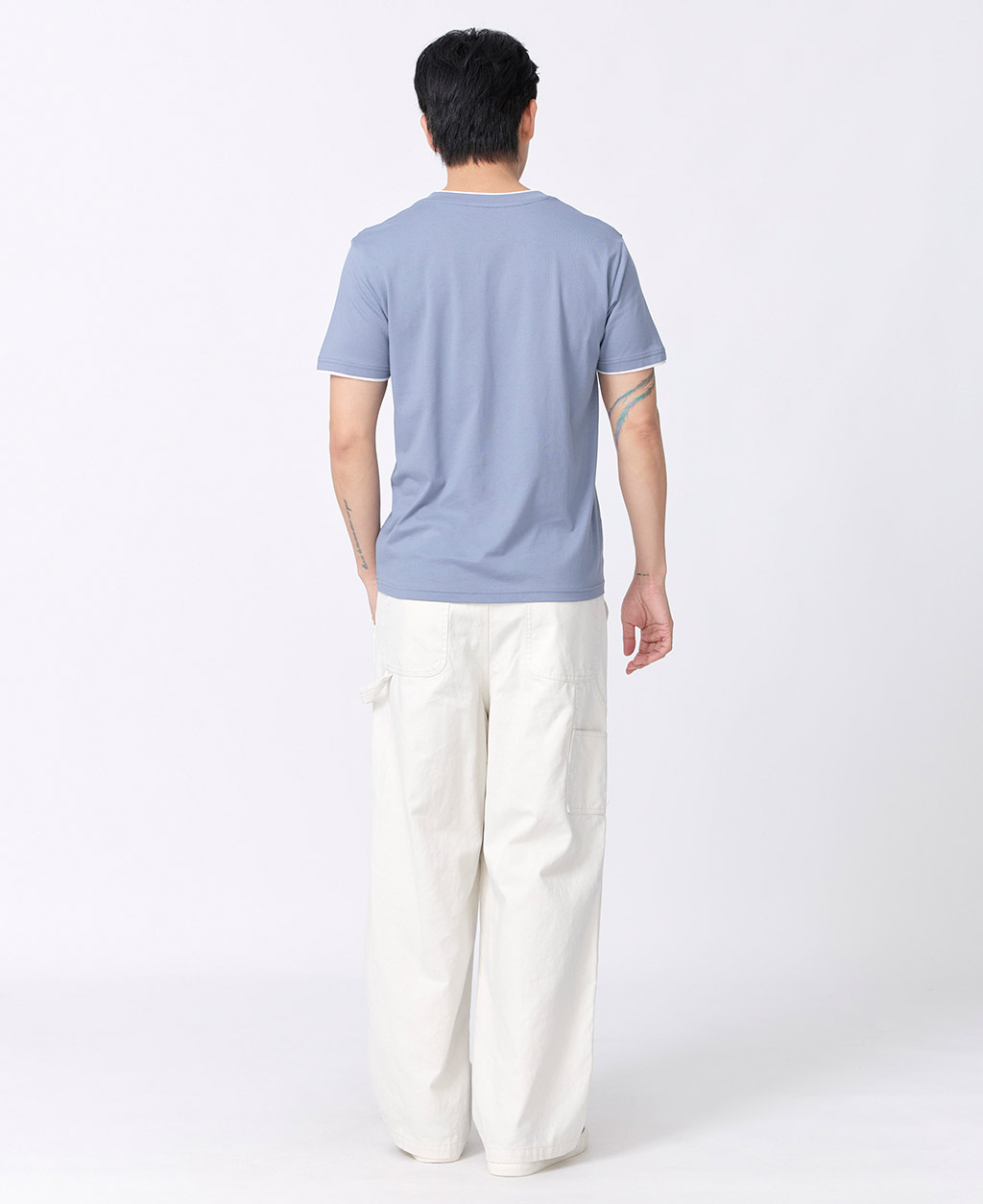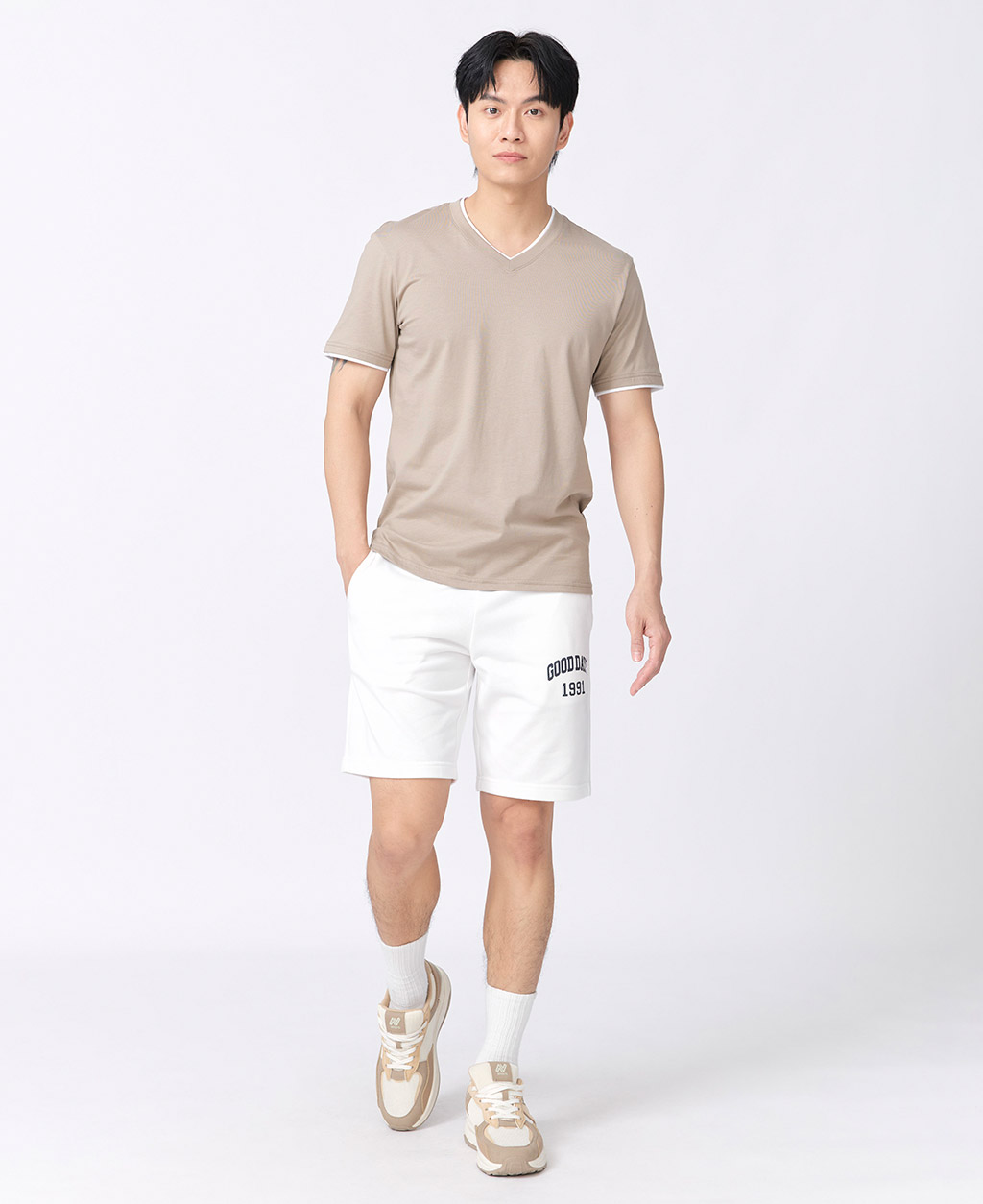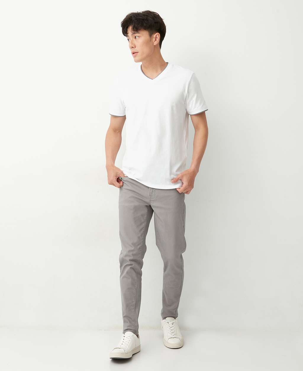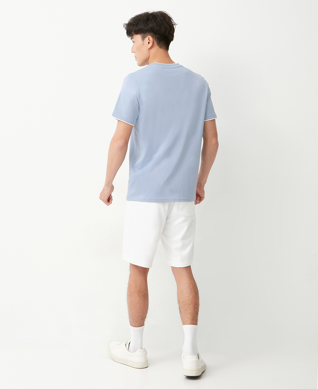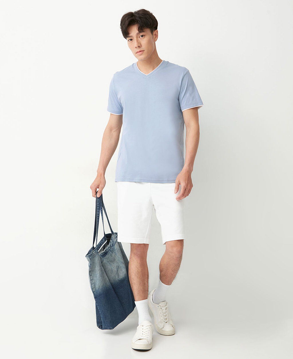 雙層V領素色T恤