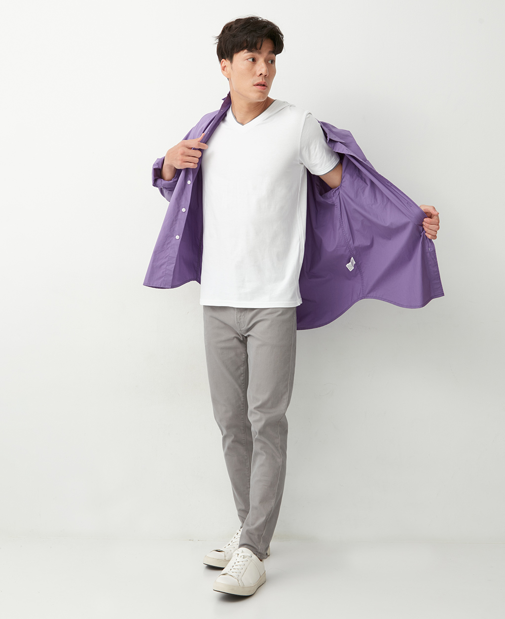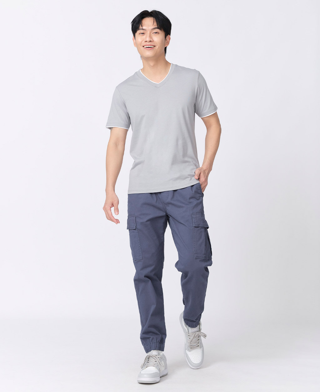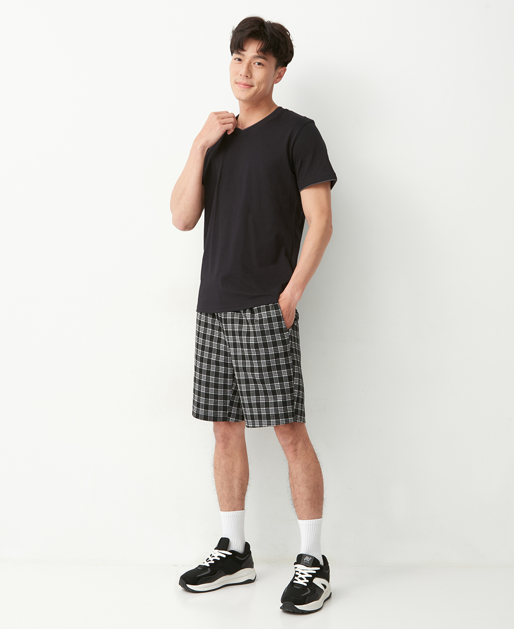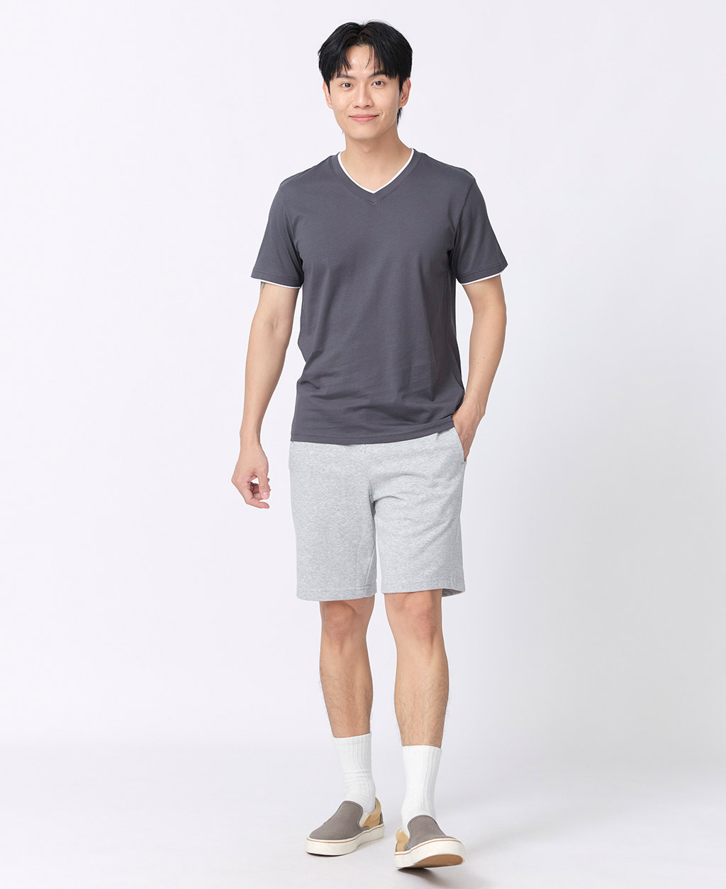 雙層V領素色T恤