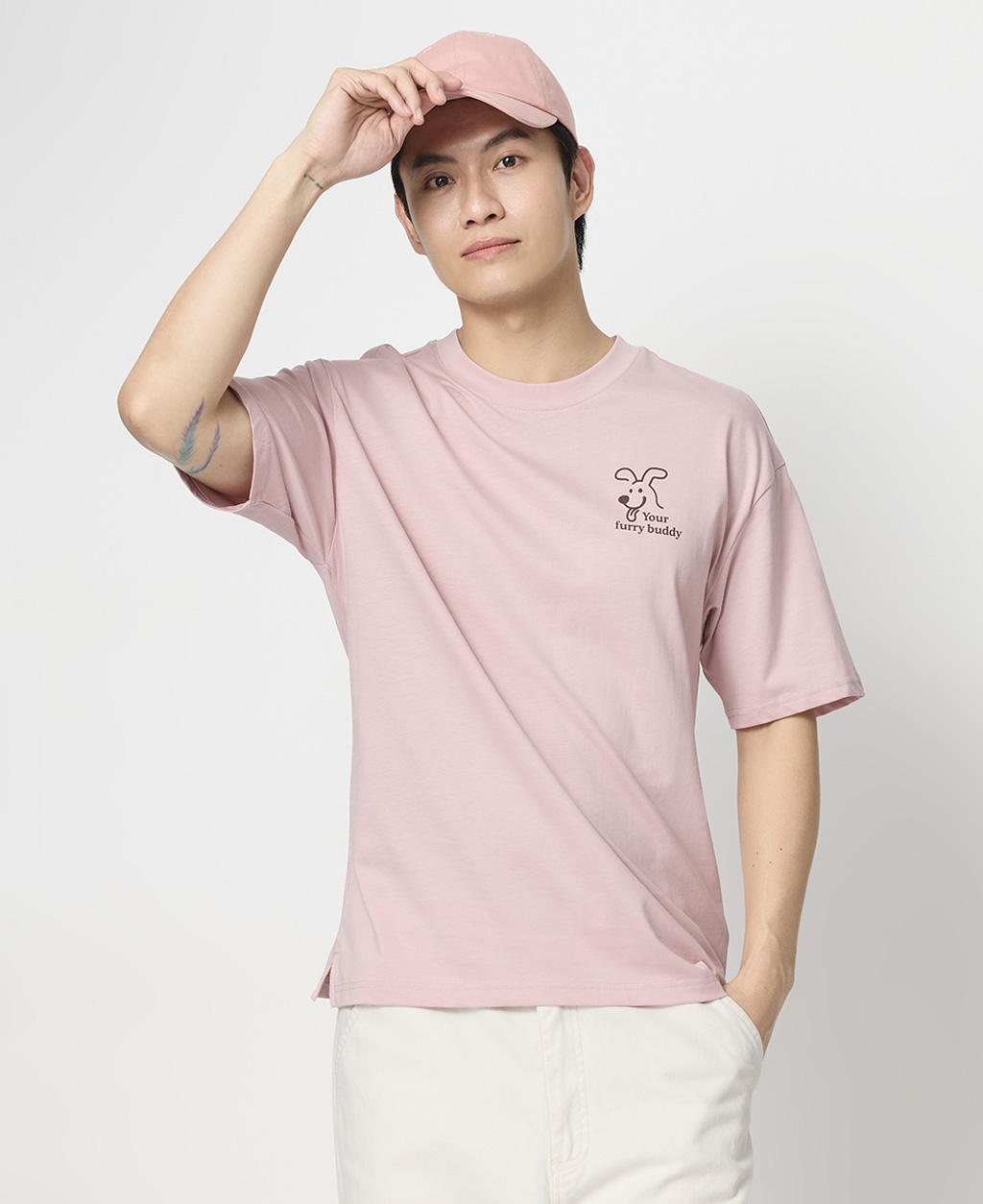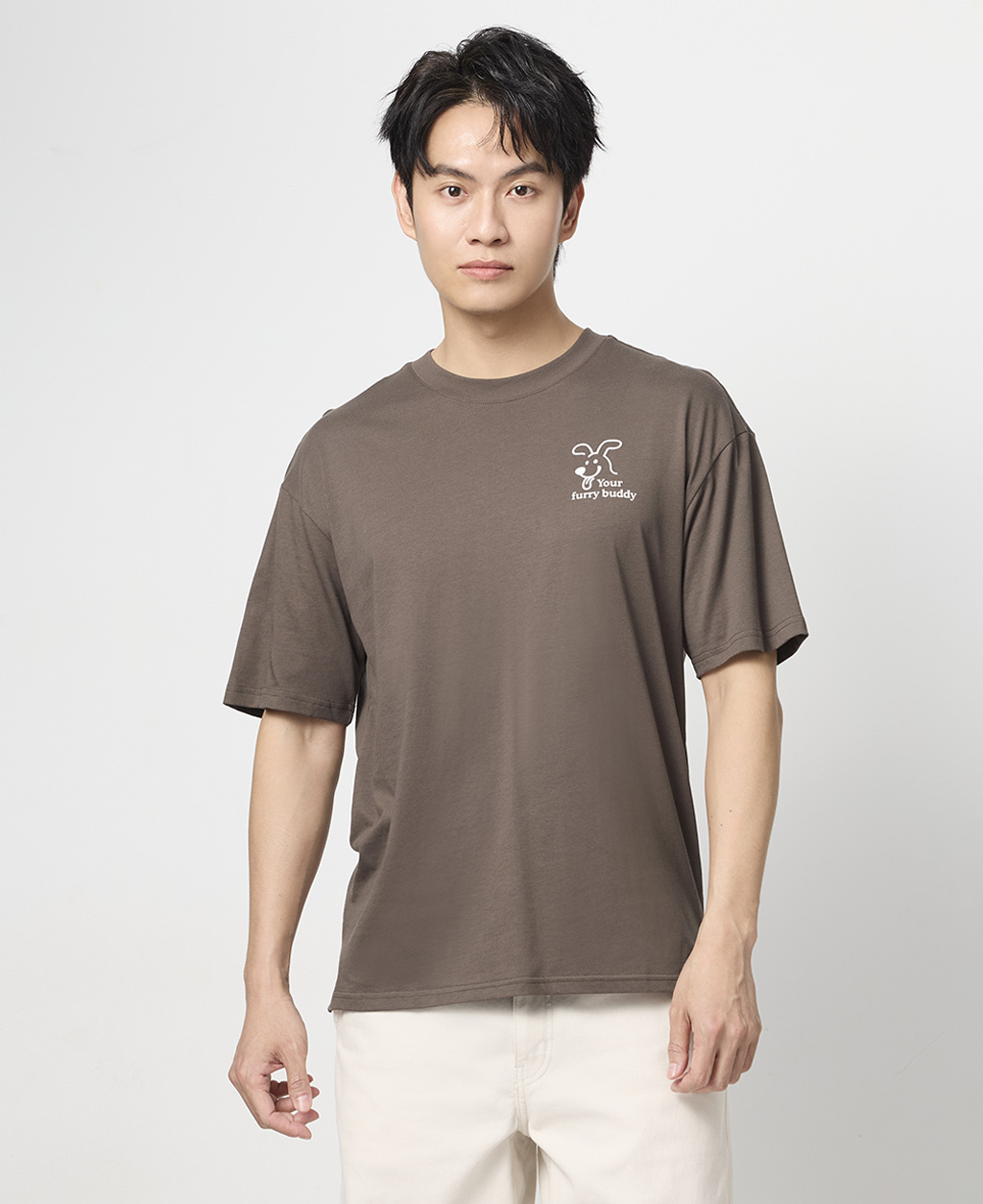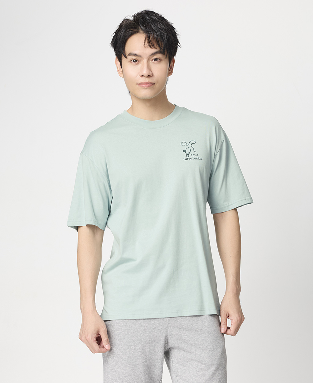 圓領落肩狗狗的寶物T恤