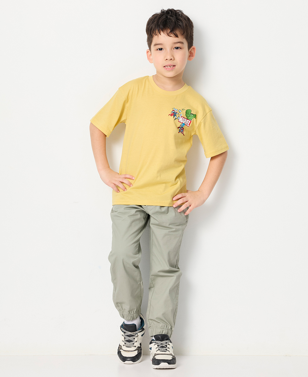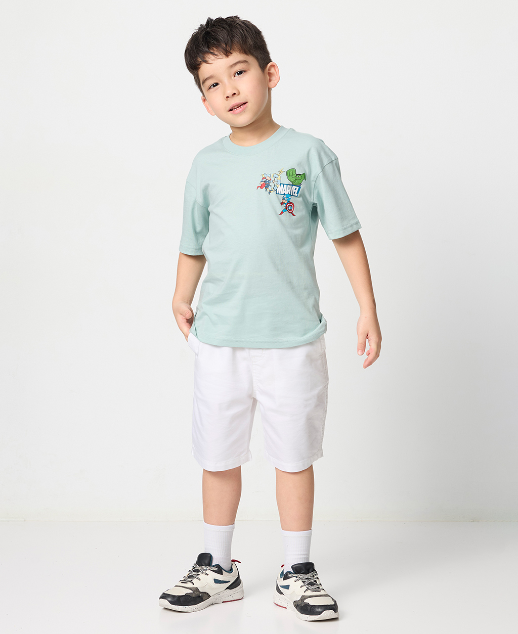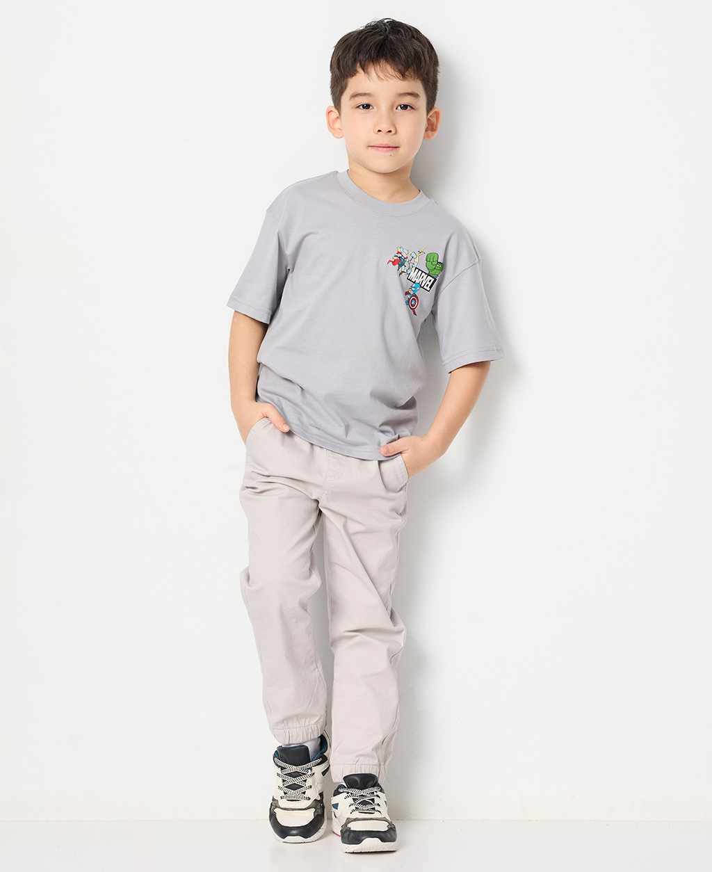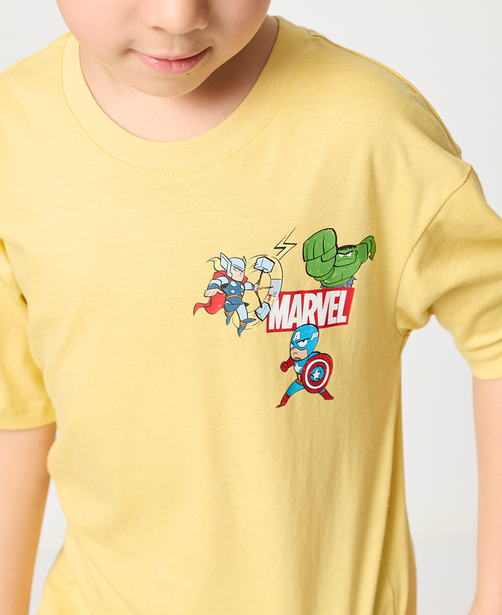 童漫威左胸印花落肩T恤