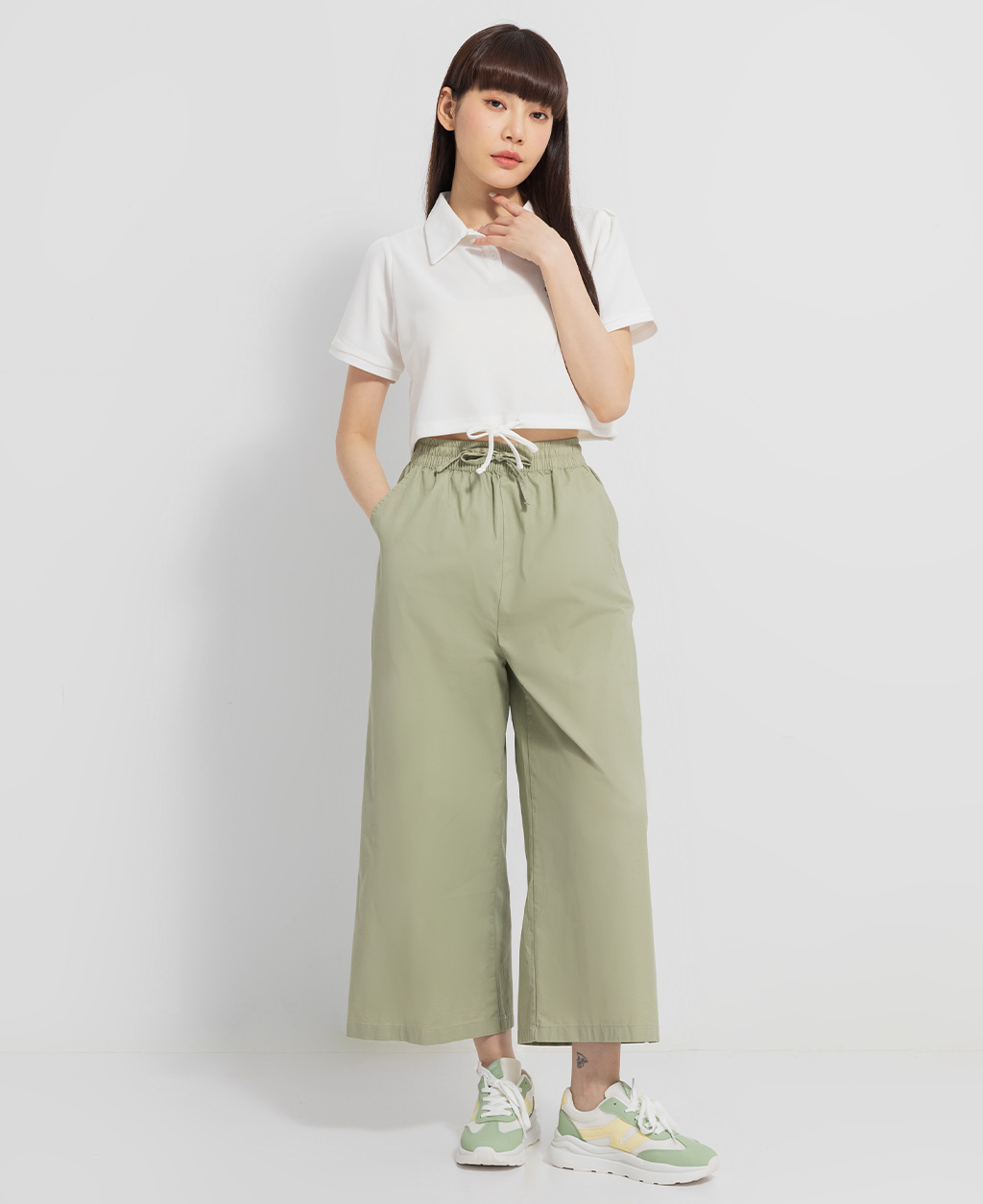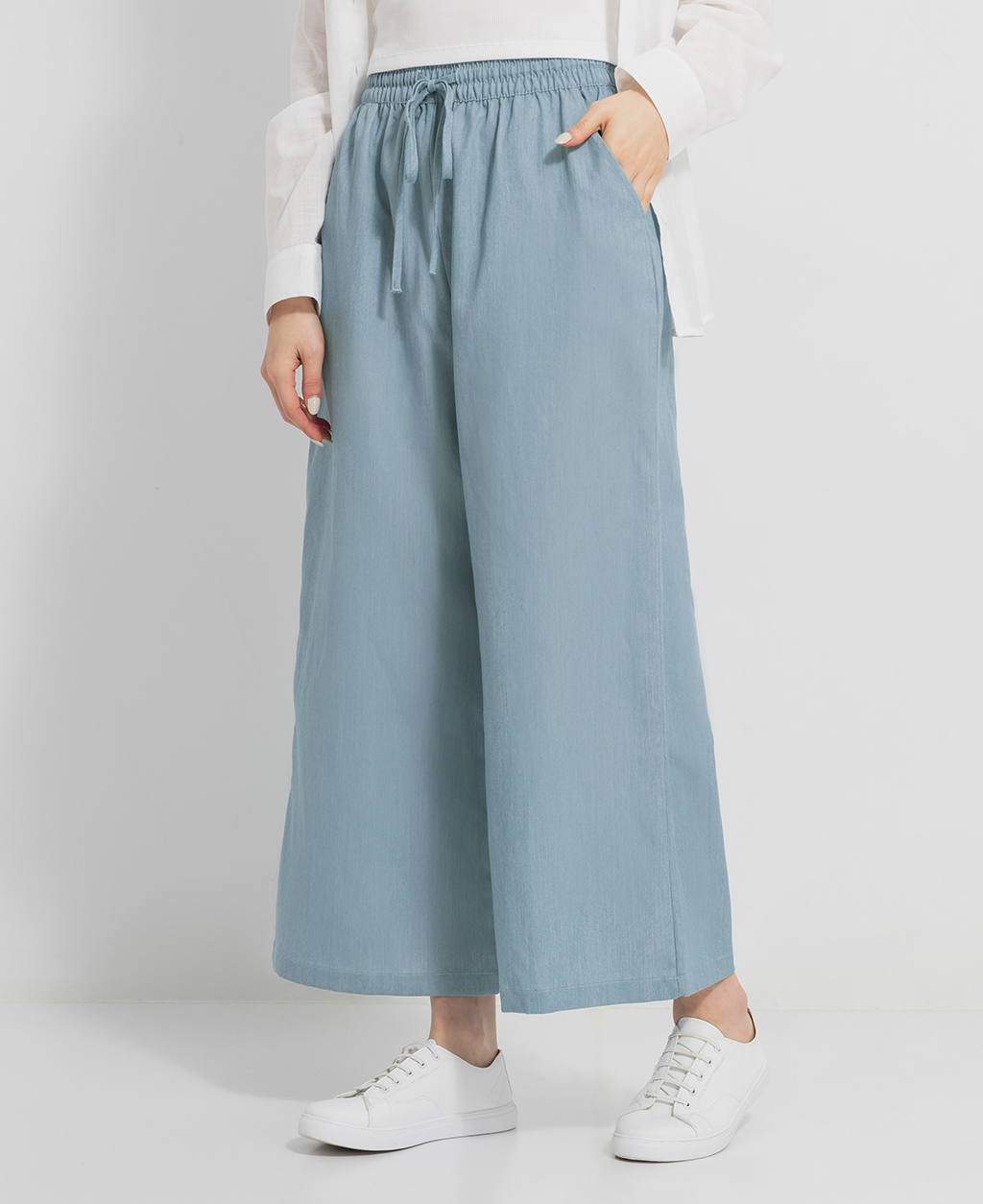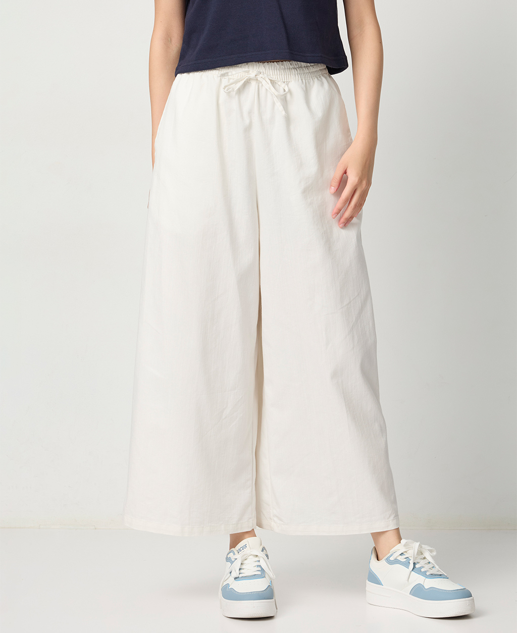 全鬆緊素色寬褲