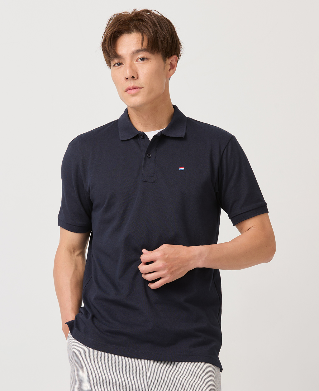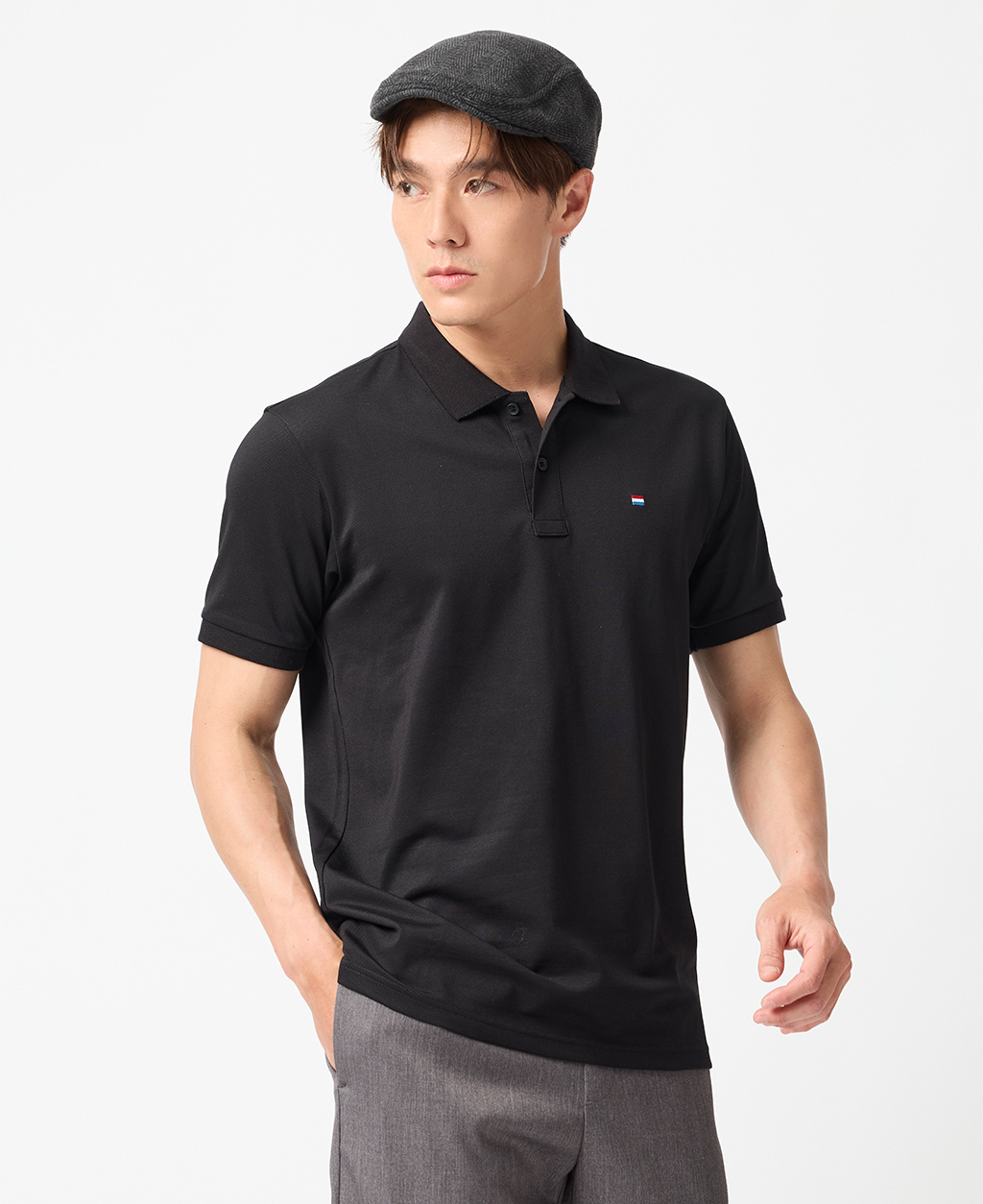 彈力網眼國旗刺繡Polo衫