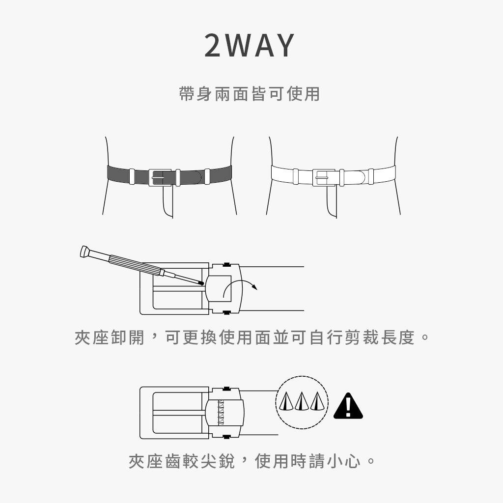 ●注意事項 使用須知 : 帶釦之夾座卸開後,可自行裁剪長度。