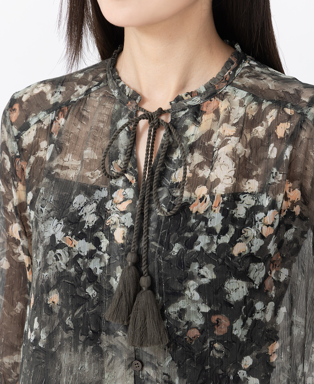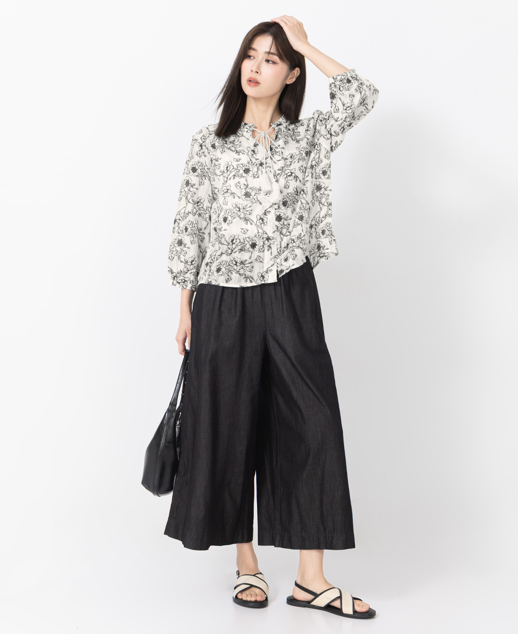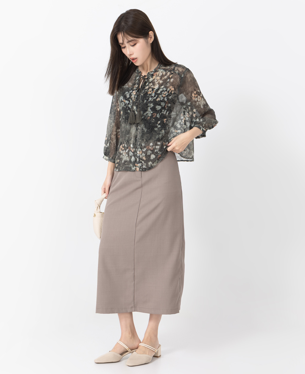 ●注意事項 1.此布料因編織特性,如被指甲或突起物、飾物及包包上的金屬裝飾等勾拉,可能會產生抽紗破洞的現象,穿著和保管時請注意。 2.建議放入洗衣袋中洗滌。