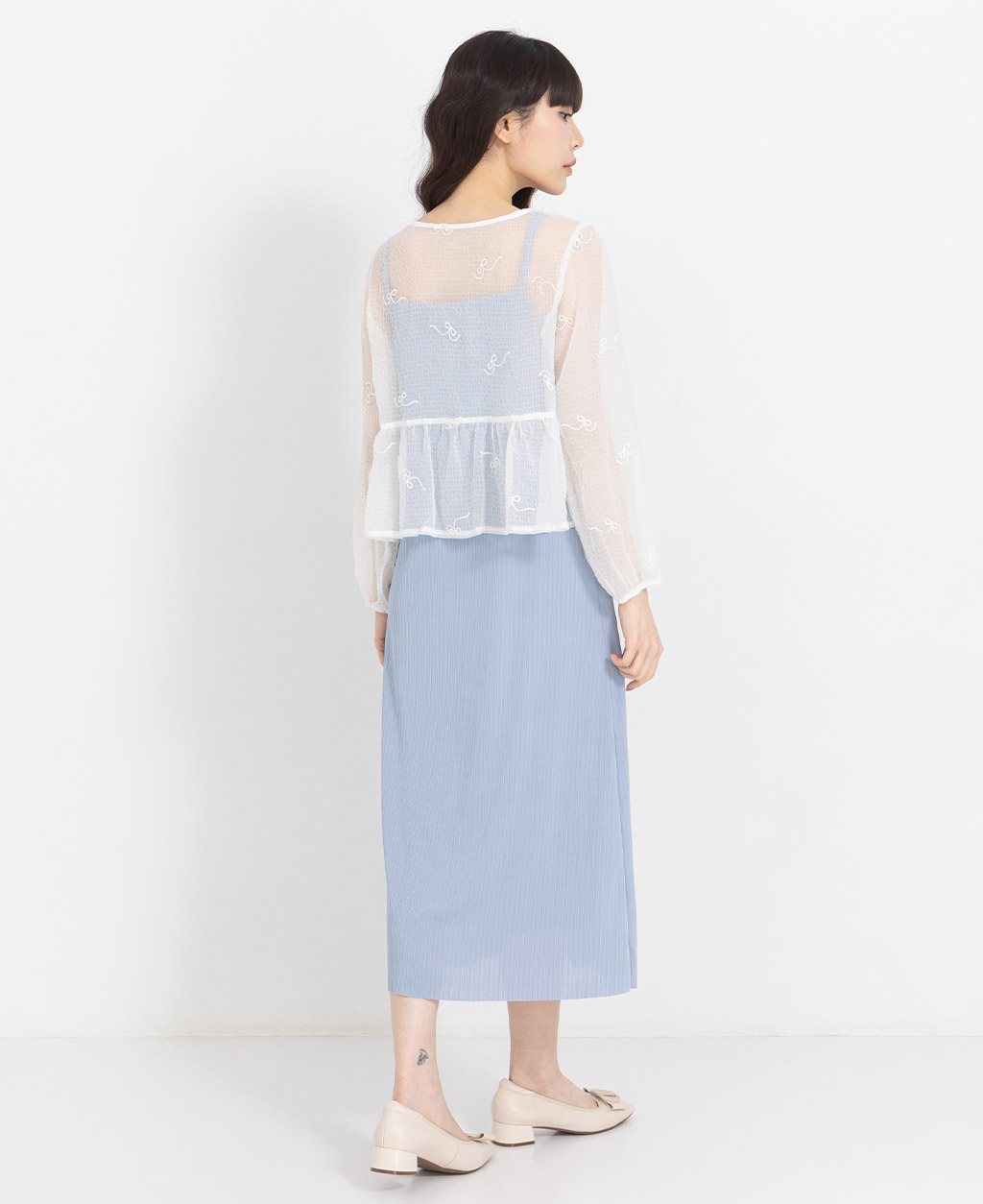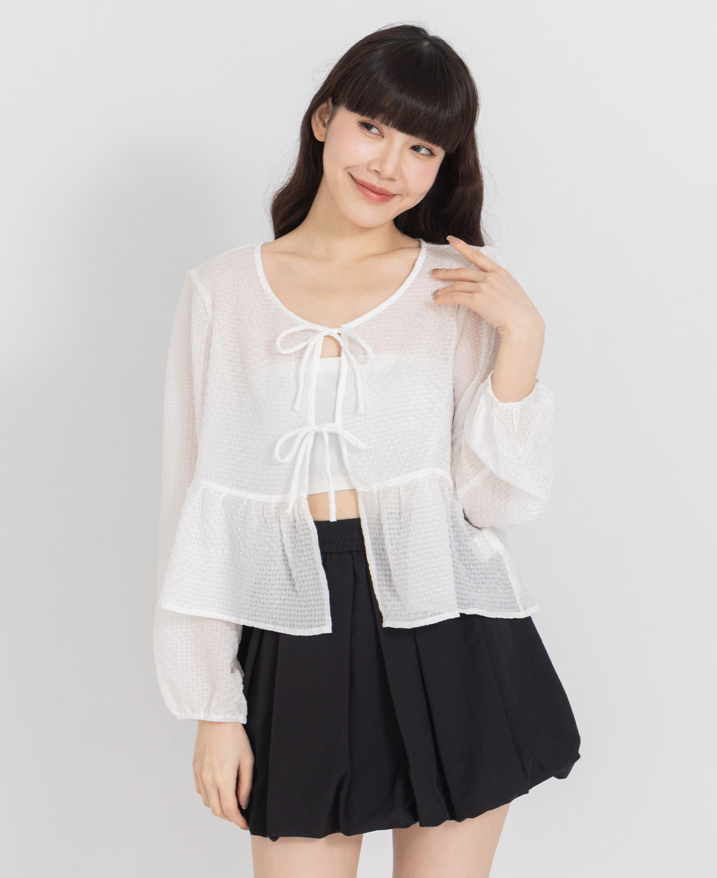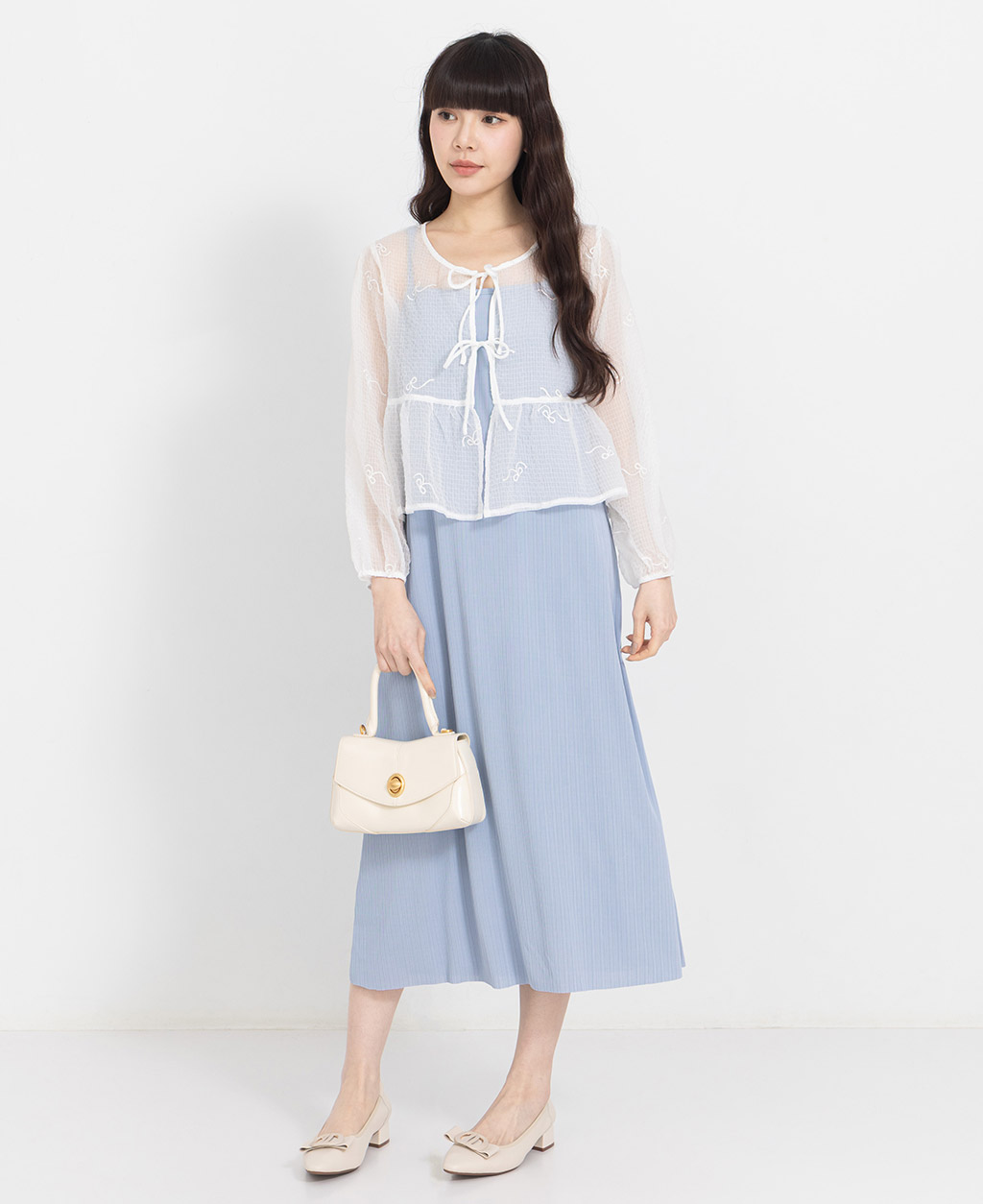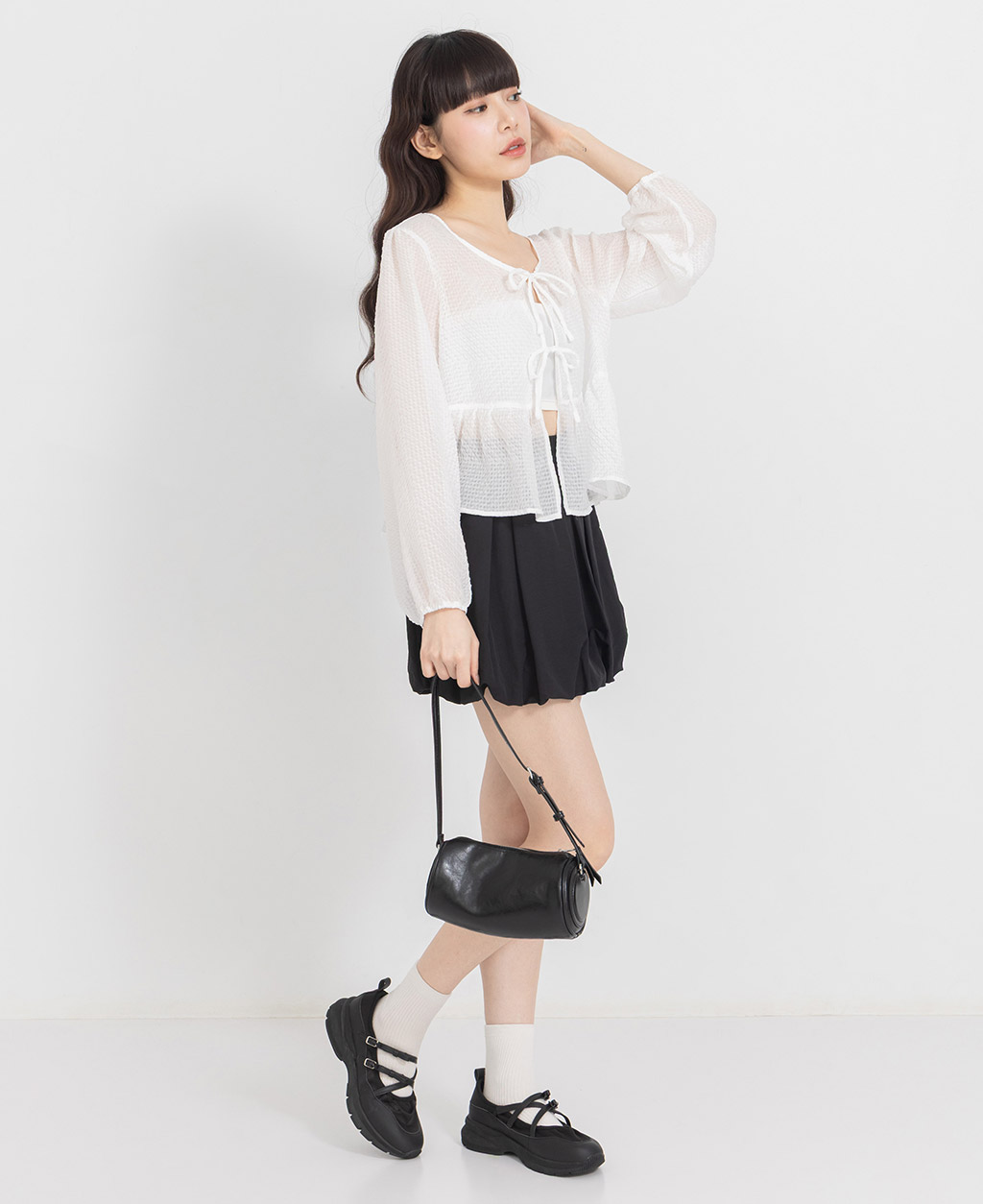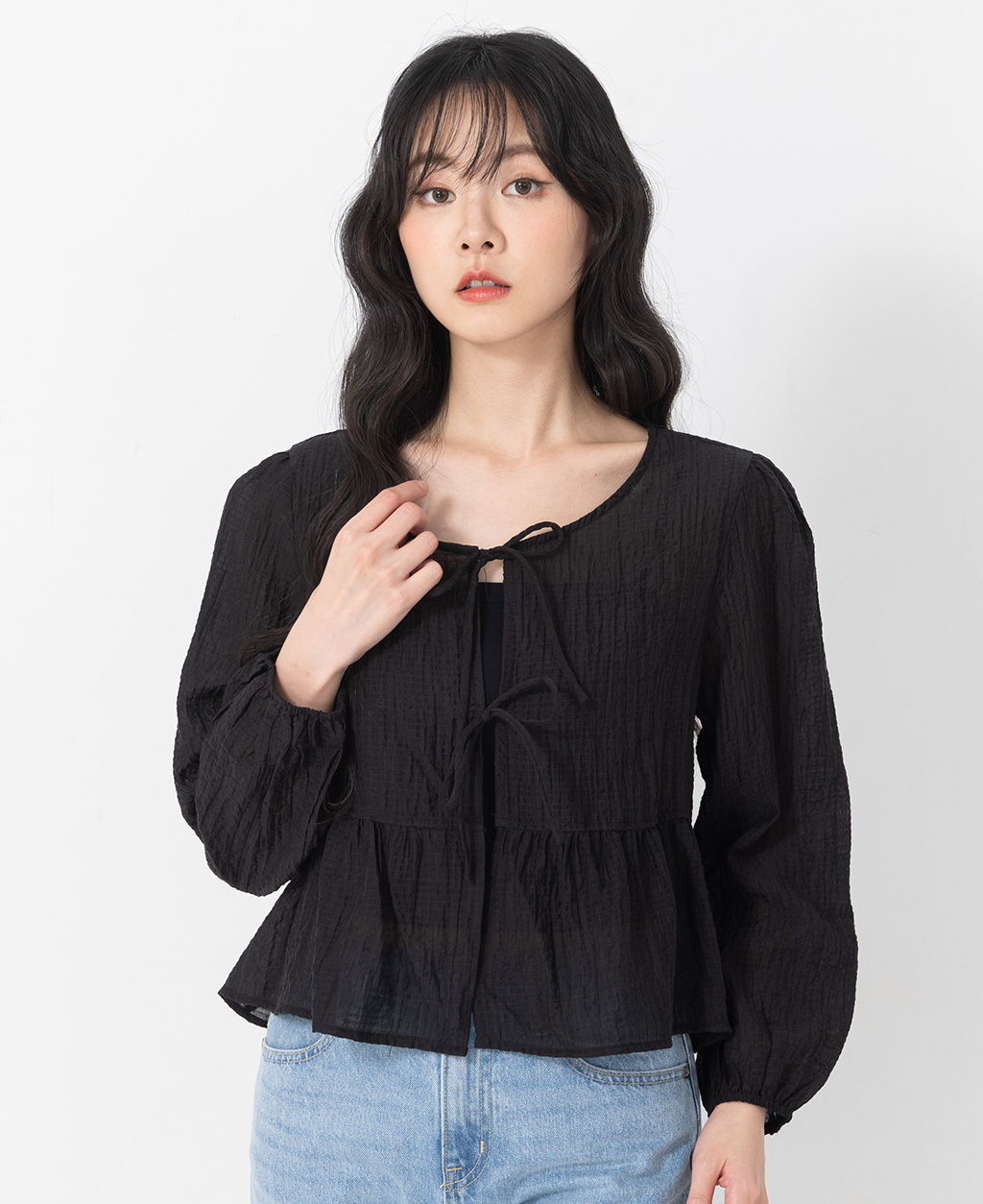 ●注意事項 1.此布料因編織特性,如被指甲或突起物、飾物及包包上的金屬裝飾等勾拉,可能會產生抽紗破洞的現象,穿著和保管時請注意。 2.建議放入洗衣袋中洗滌。