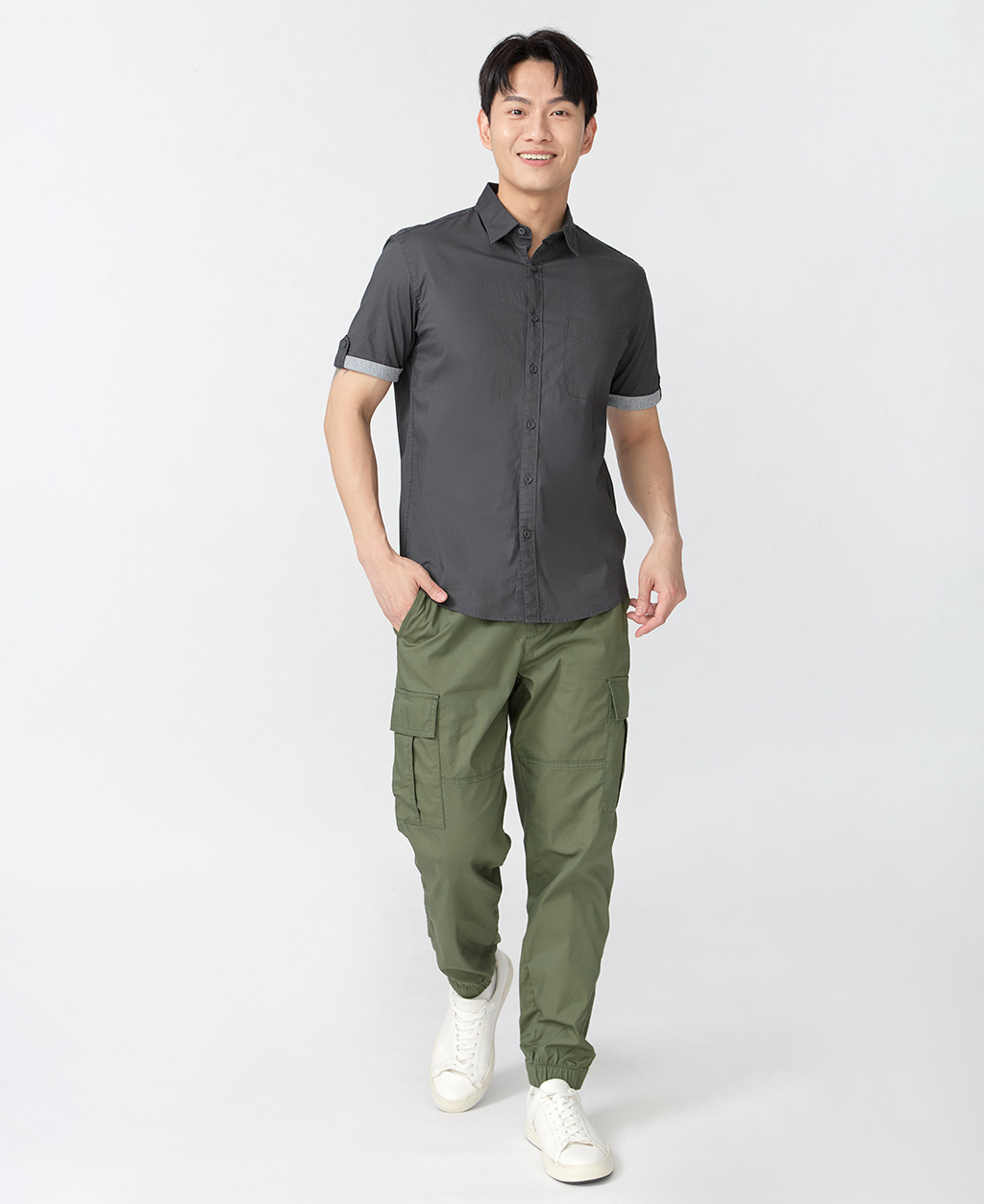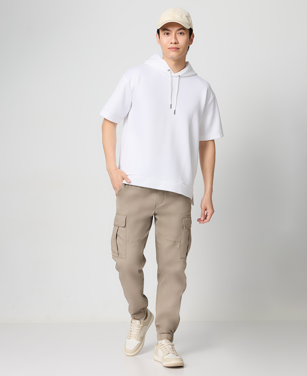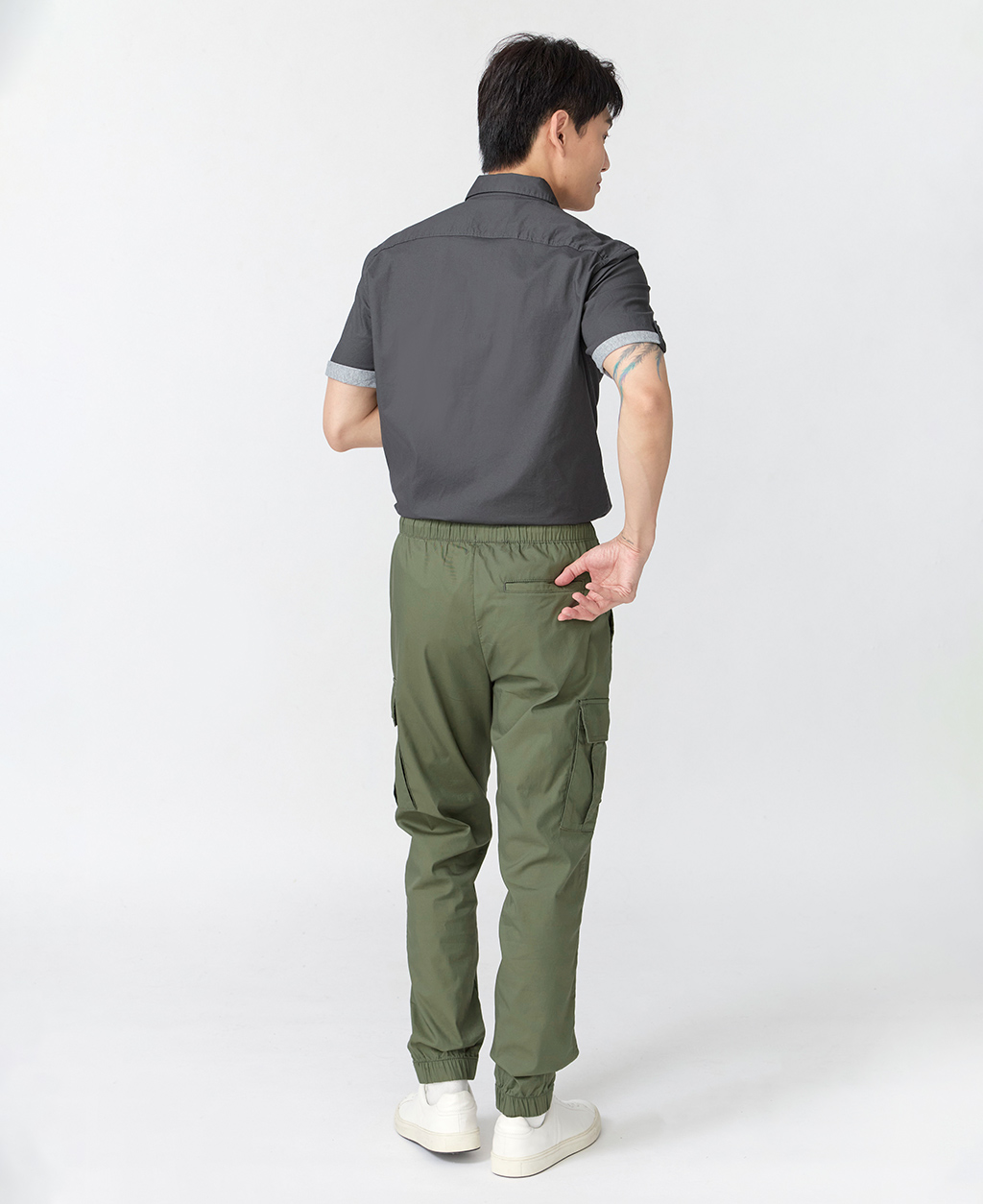 Regular Fit 鬆緊綁帶工裝縮口褲