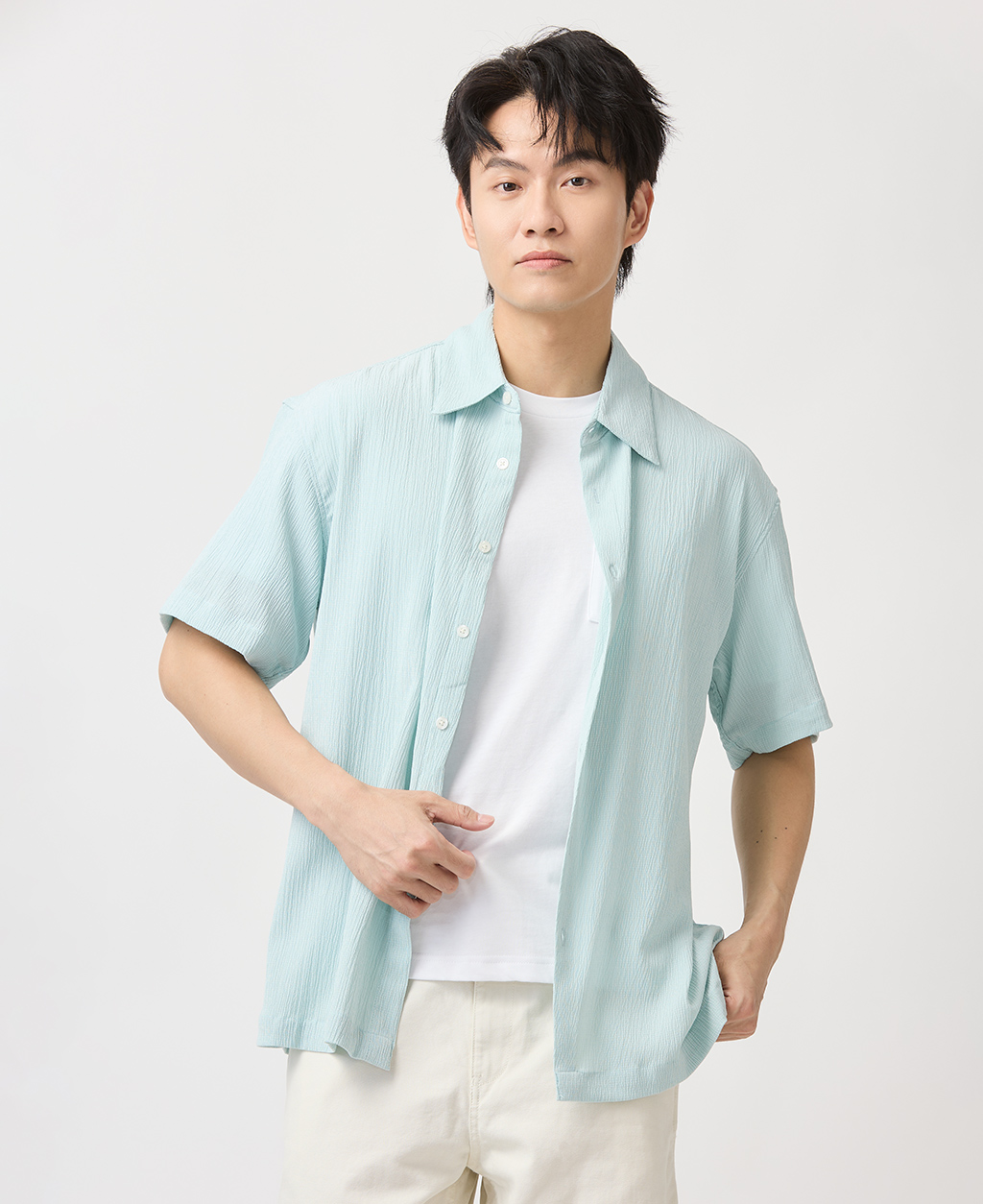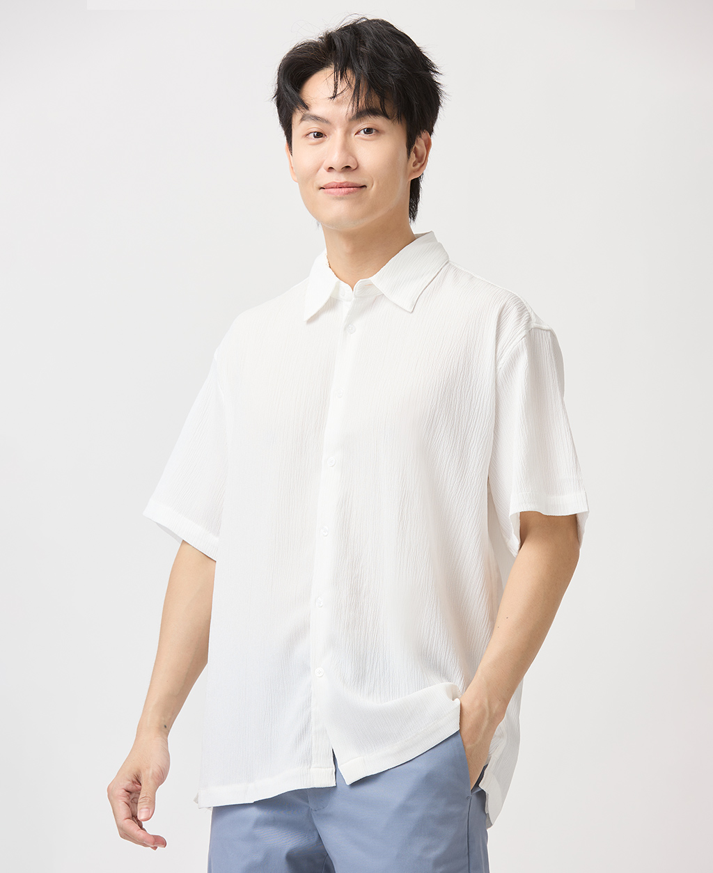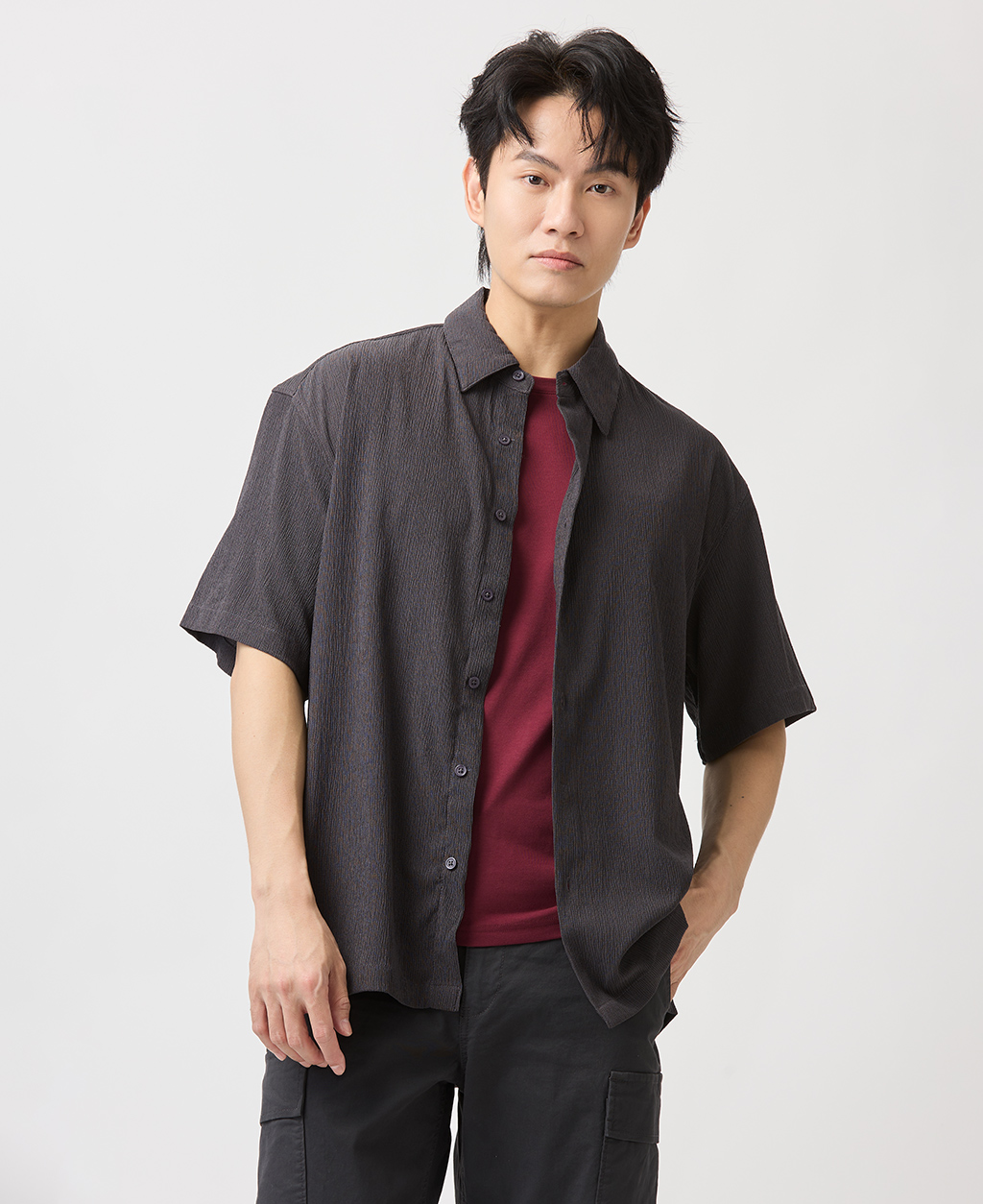 Relax Fit皺皺布短袖襯衫