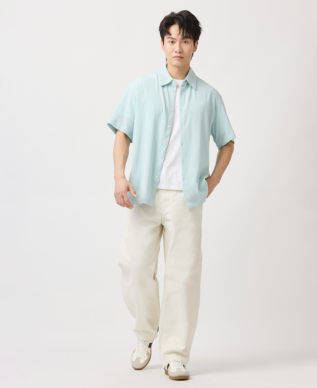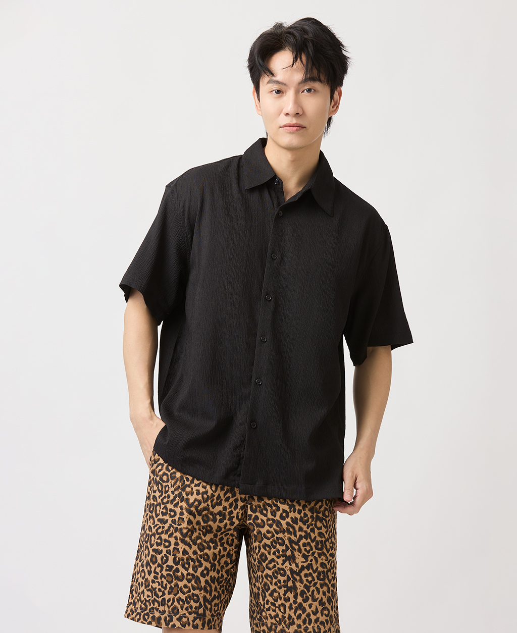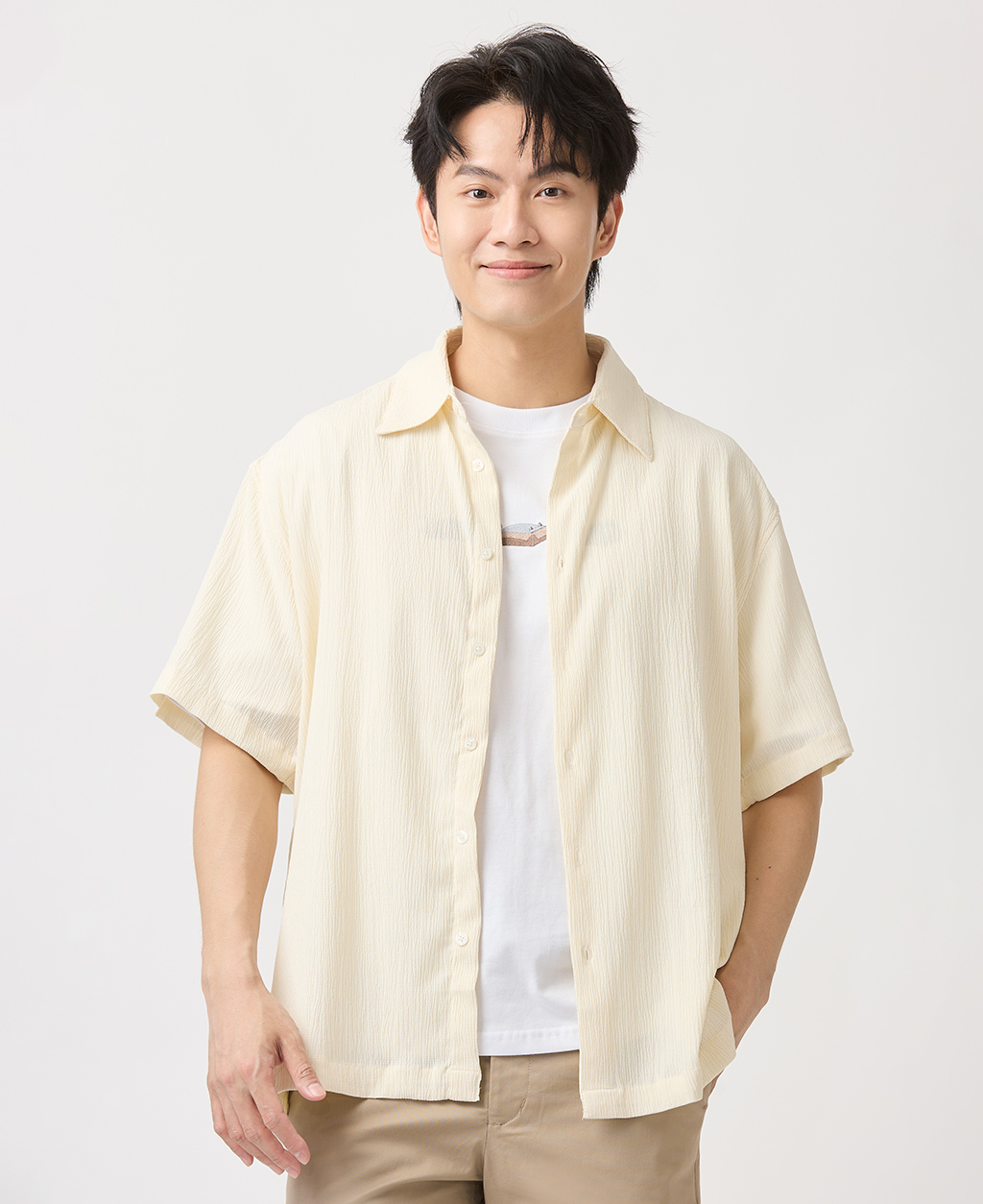 Relax Fit皺皺布短袖襯衫