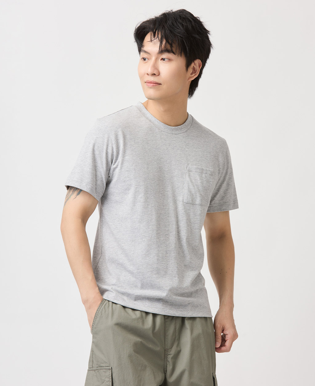 基本素色口袋圓領T恤