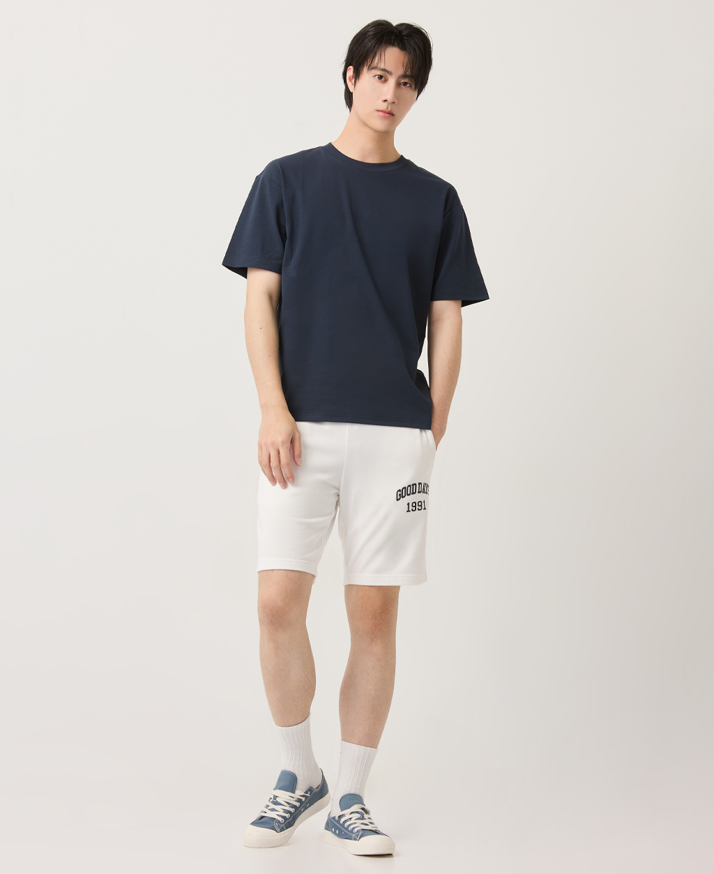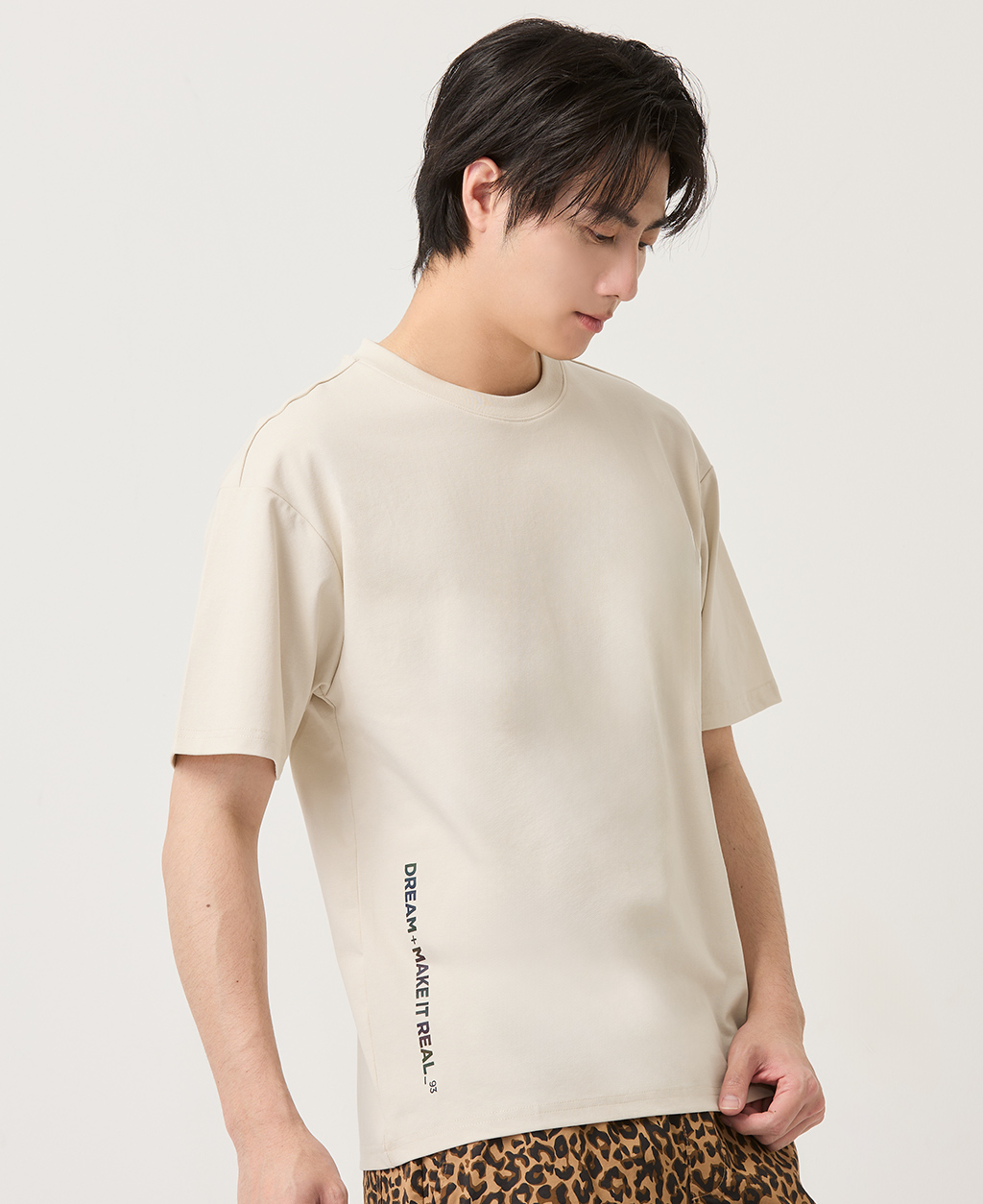 冰感棉落肩側印字短T