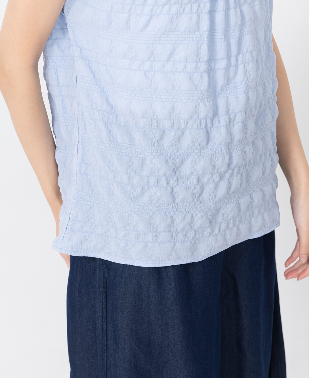 ●注意事項 1.此商品因面料編織特性上的原因,紗支精密細緻,纖維如被指甲或突起物、飾物及包類上的金屬部分等勾拉,可能會產生抽紗破洞的現象,穿著保管時請注意。 2.建議放入洗衣袋中洗滌。