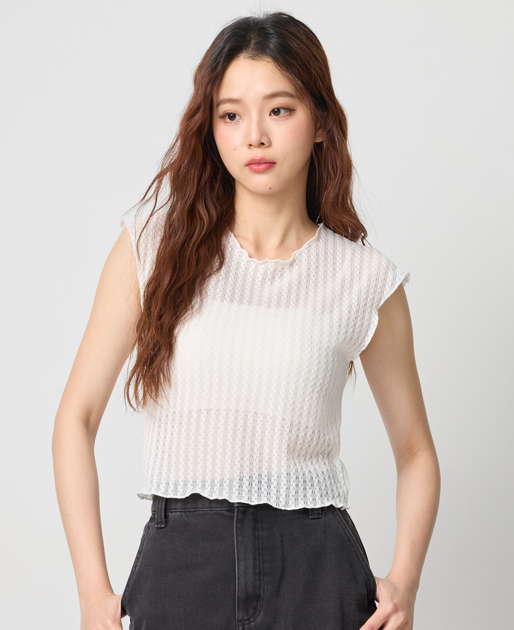 圓領透膚套頭背心