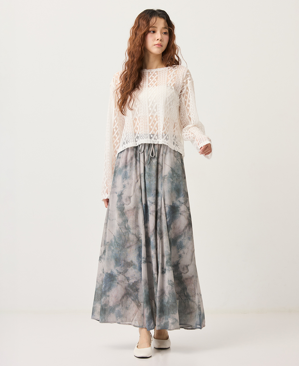 ●注意事項 1.此布料因編織特性,如被指甲或突起物、飾物及包包上的金屬裝飾等勾拉,可能會產生抽紗破洞的現象,穿著和保管時請注意。 2.建議放入洗衣袋中洗滌。