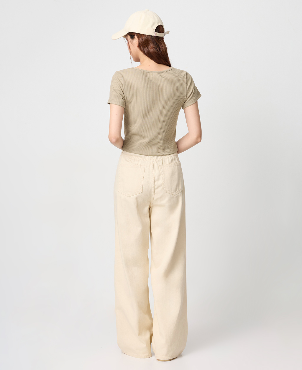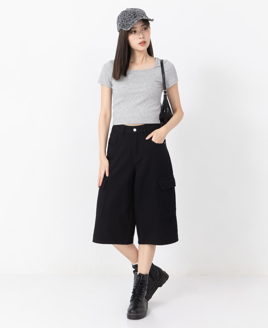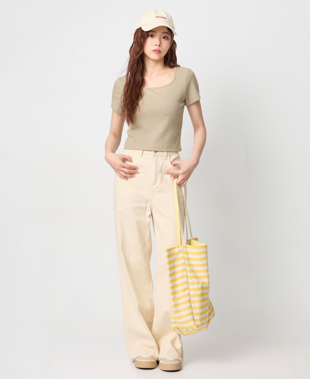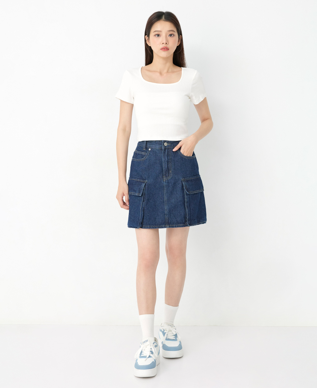 坑條方領合身短版上衣