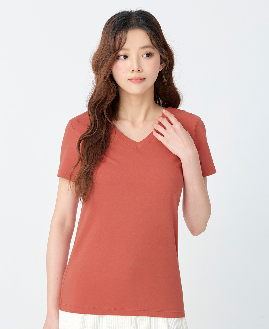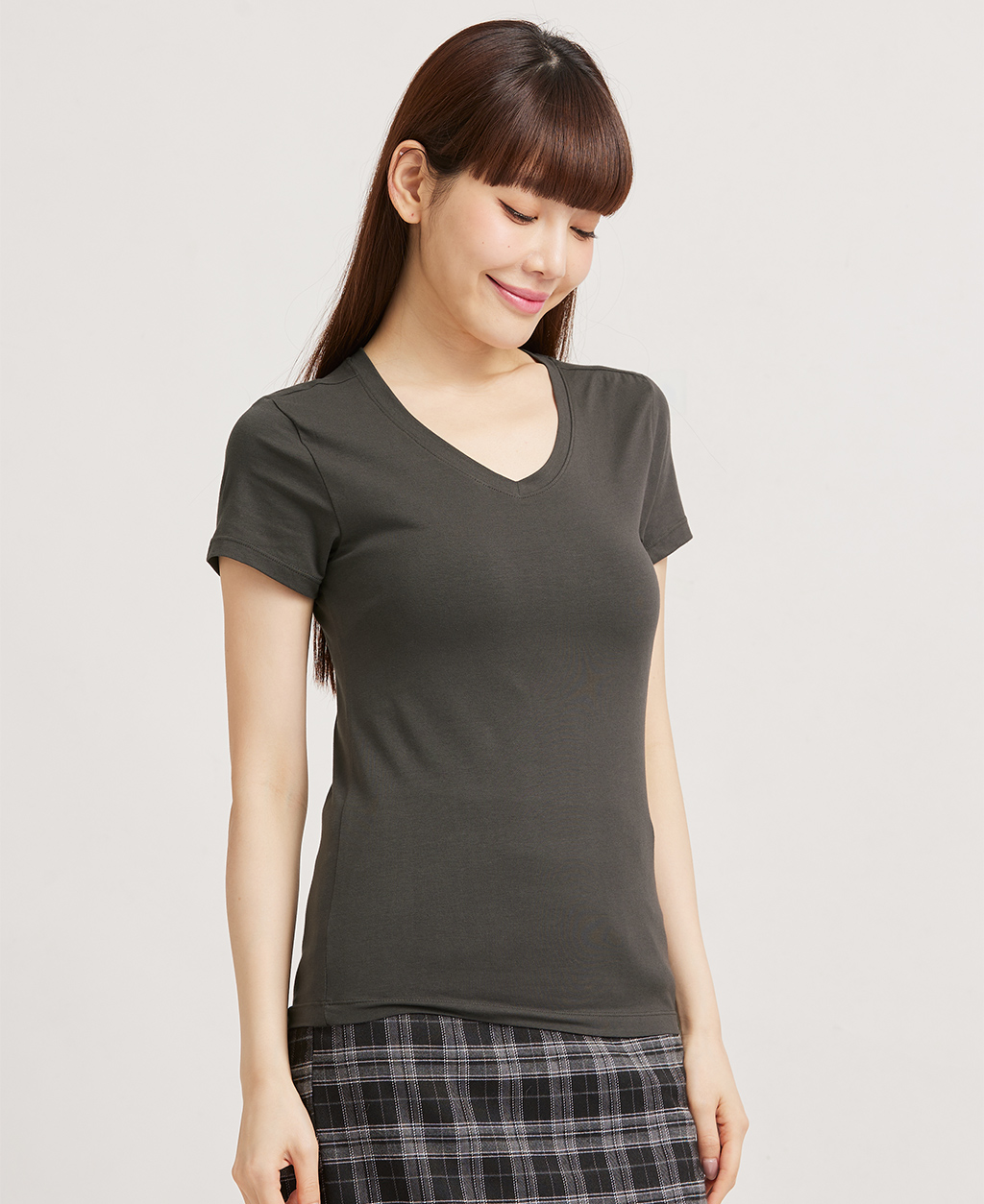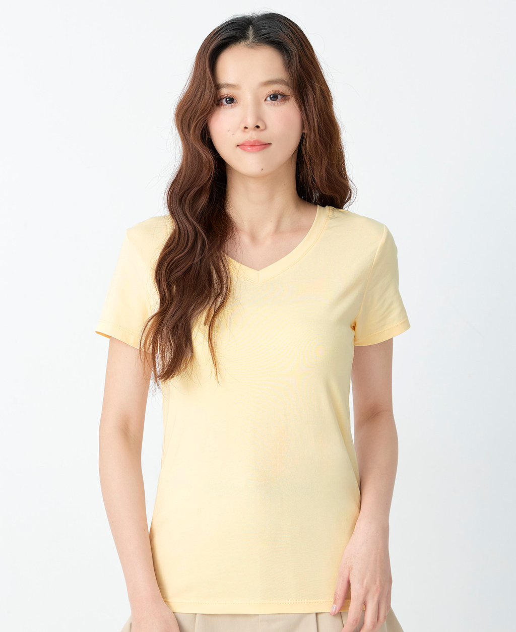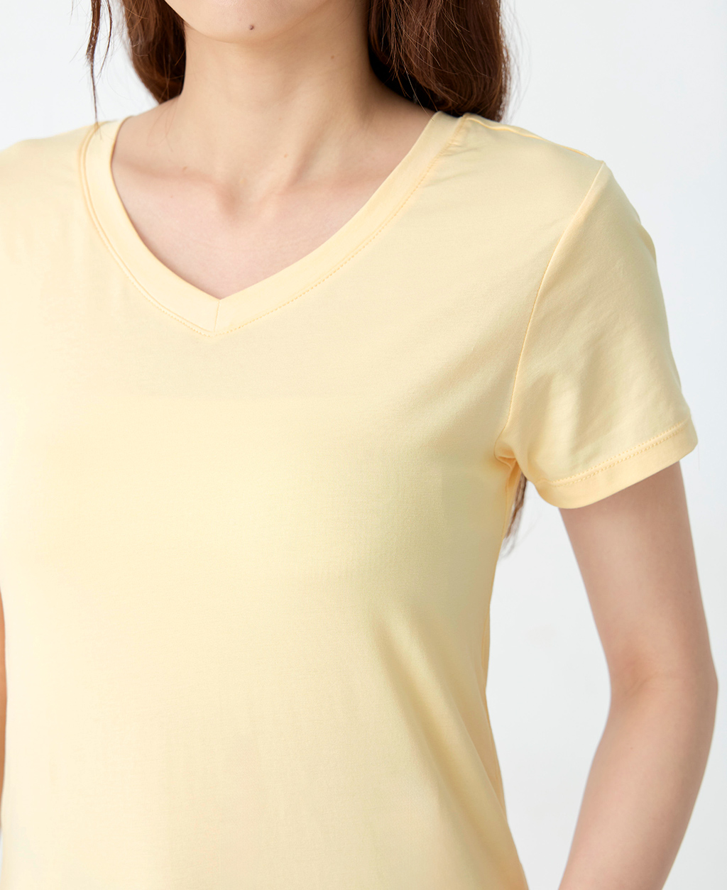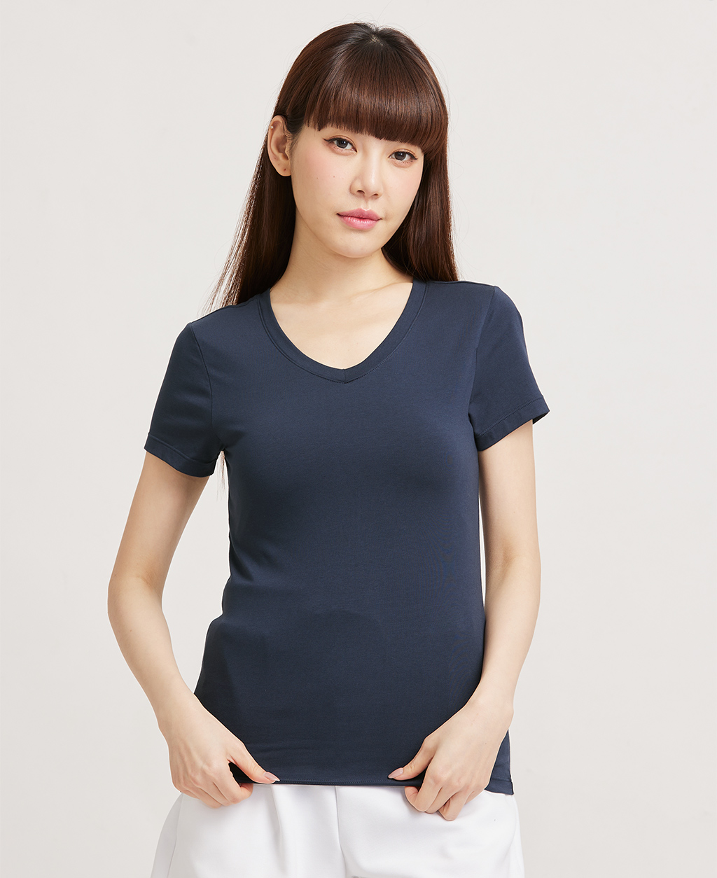 素面棉彈V領T恤