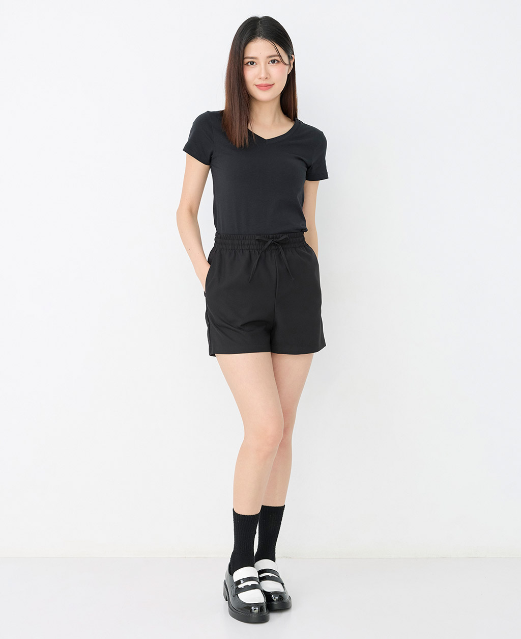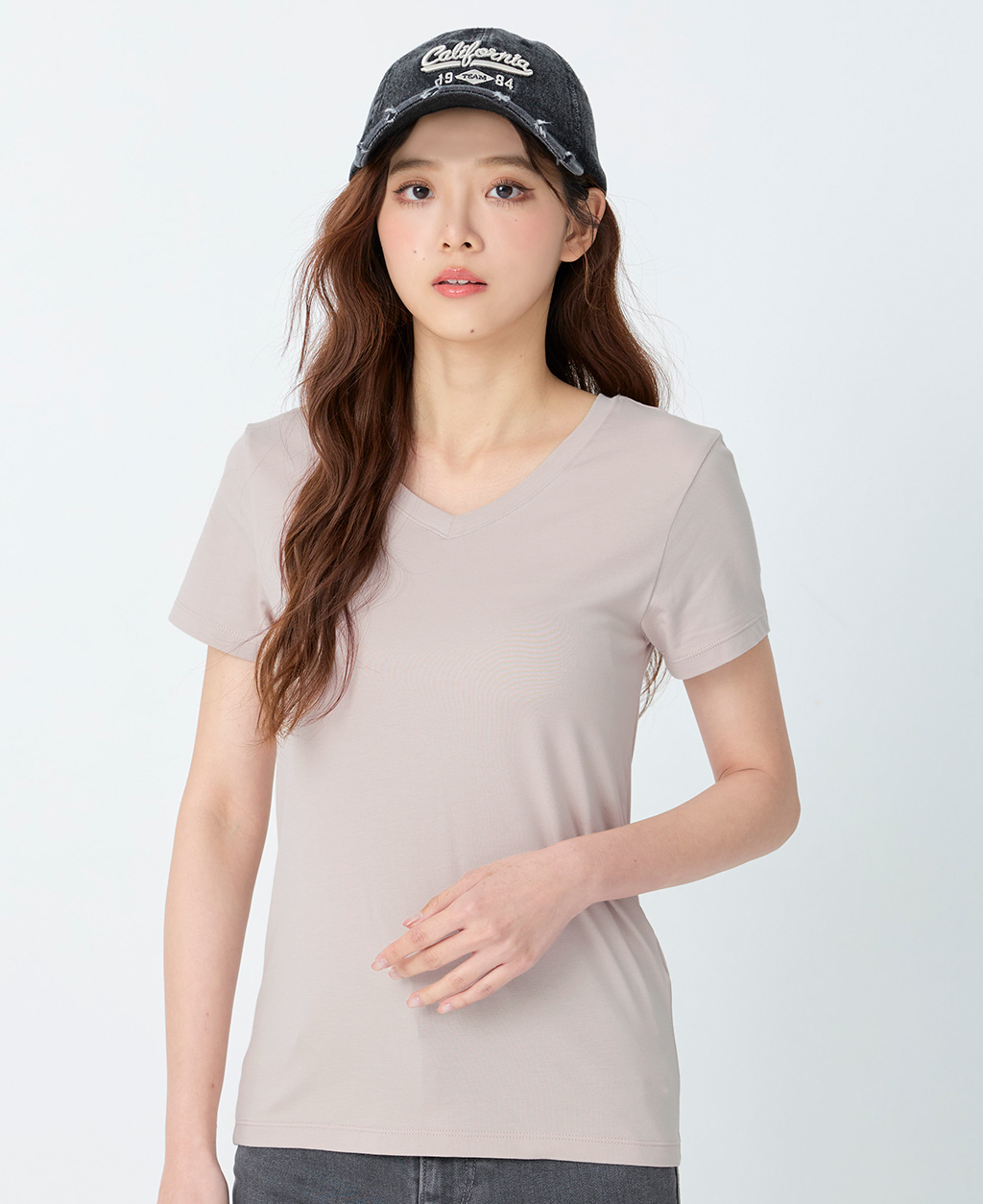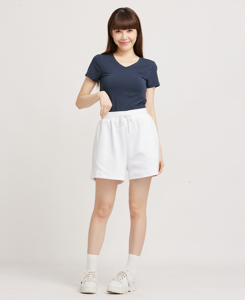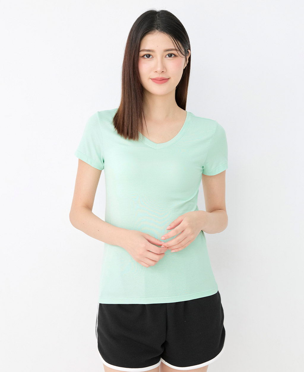 素面棉彈V領T恤